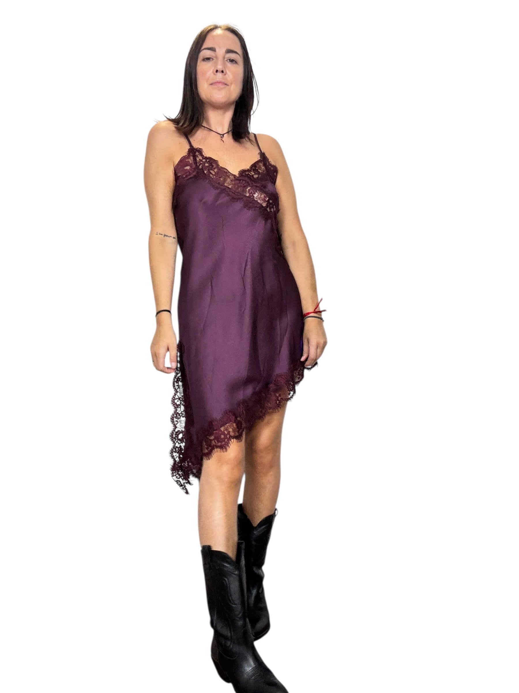 Abito con spallina sottile regolabile tagliato sbiego con inserto in pizzo (tg in foto S)