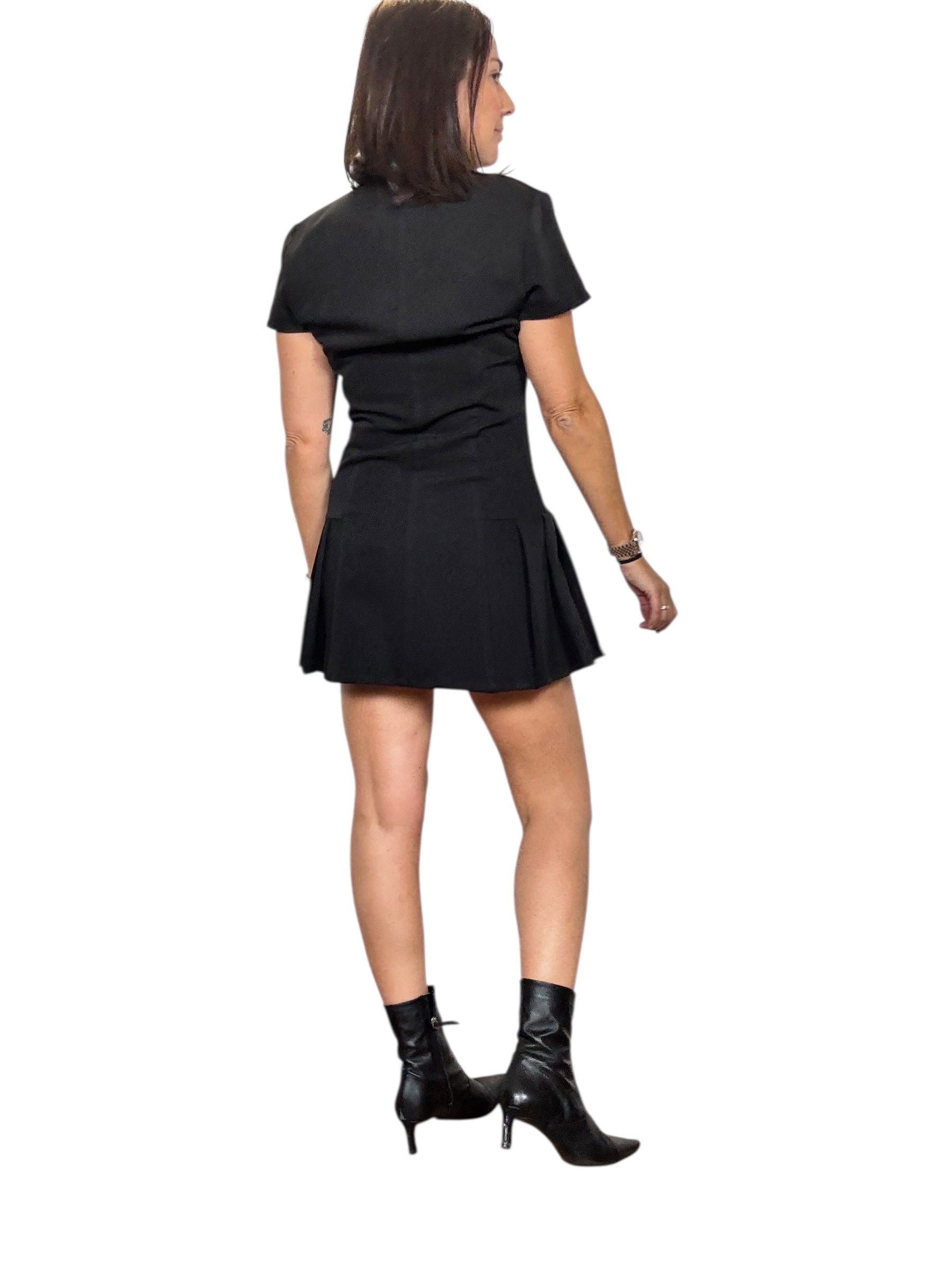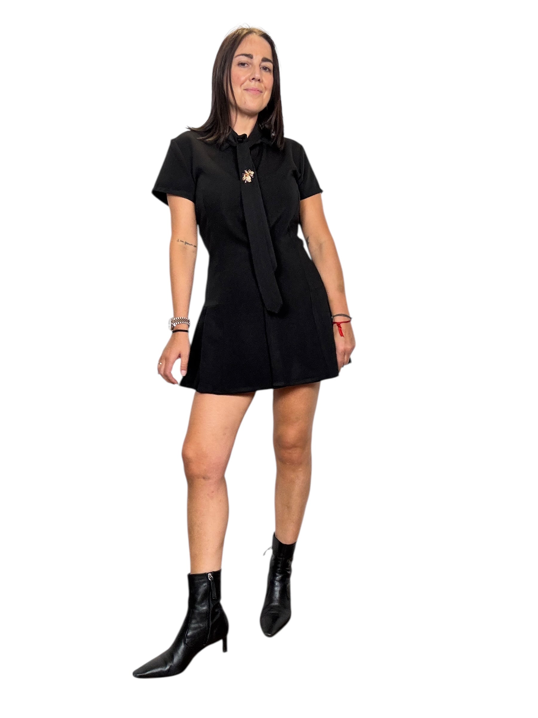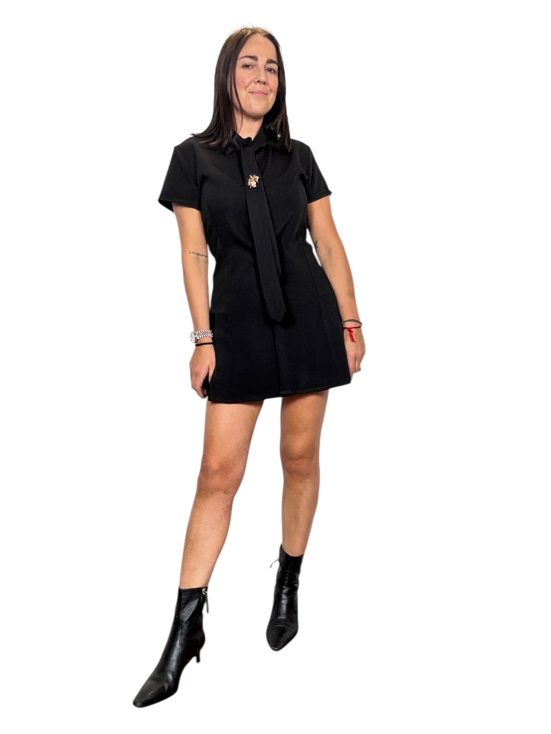 Abito a mezza manica con bottoncini davanti e pieghette sul fianco. tessuto elasticizzato (tg in foto S) cravatta con spilla rimuovibile