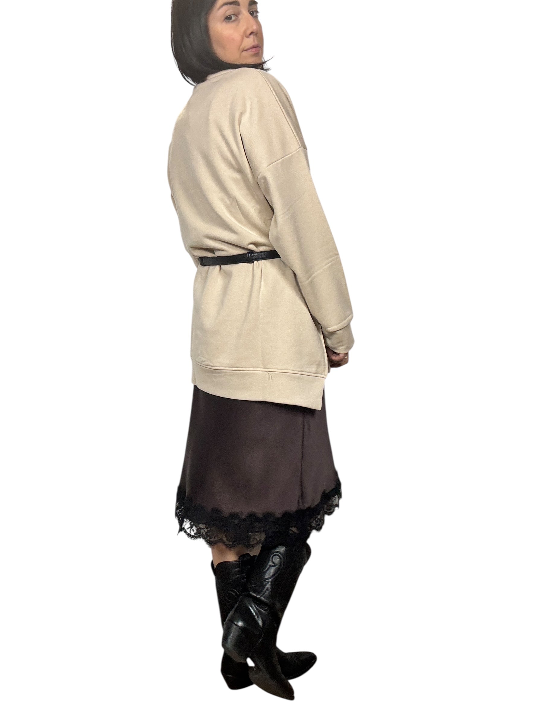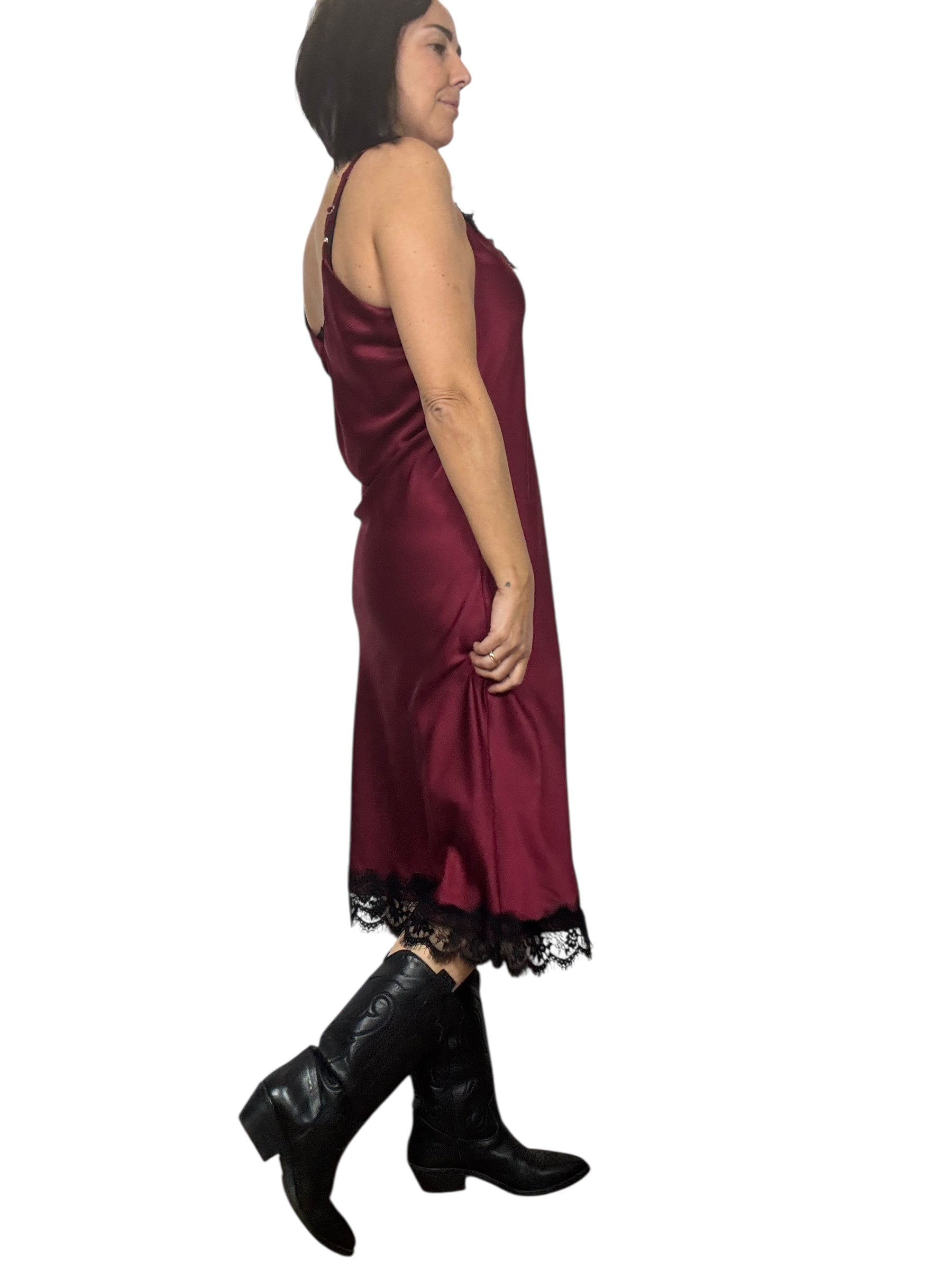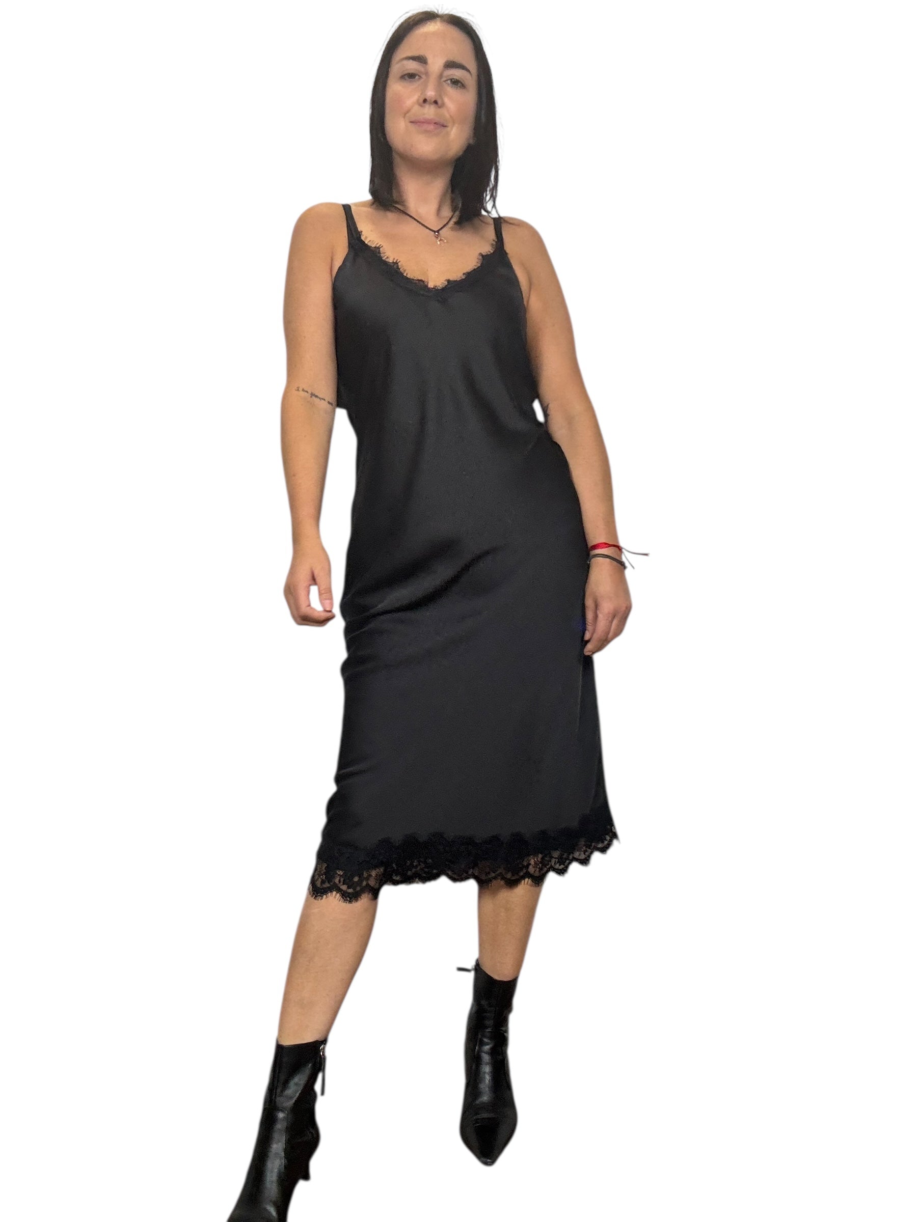 Abito midi con spallina sottile regolabile ed inserto in pizzo (tg in foto M)