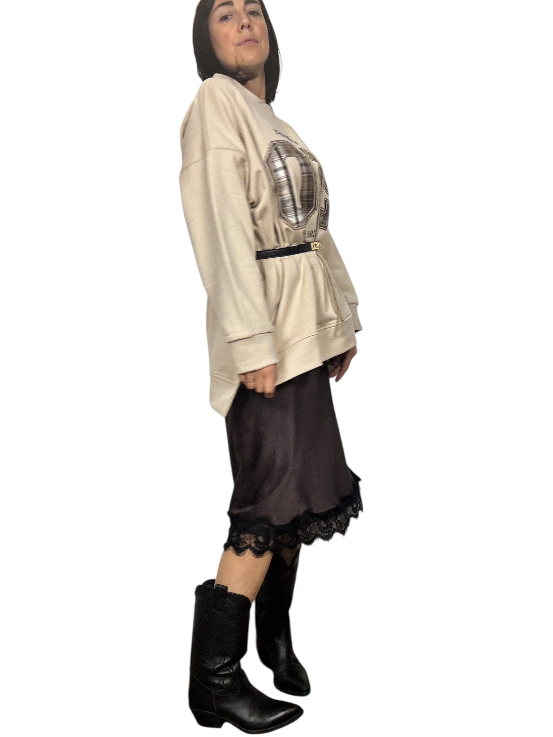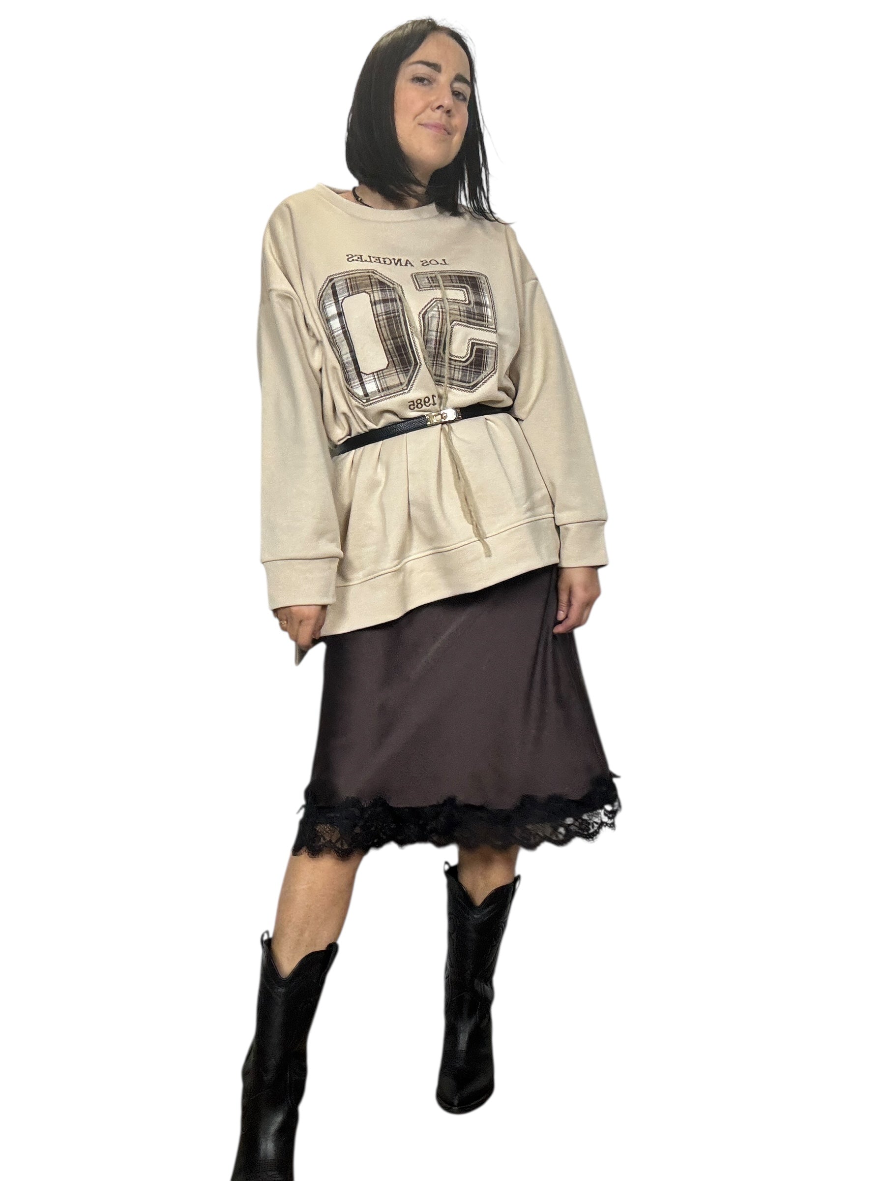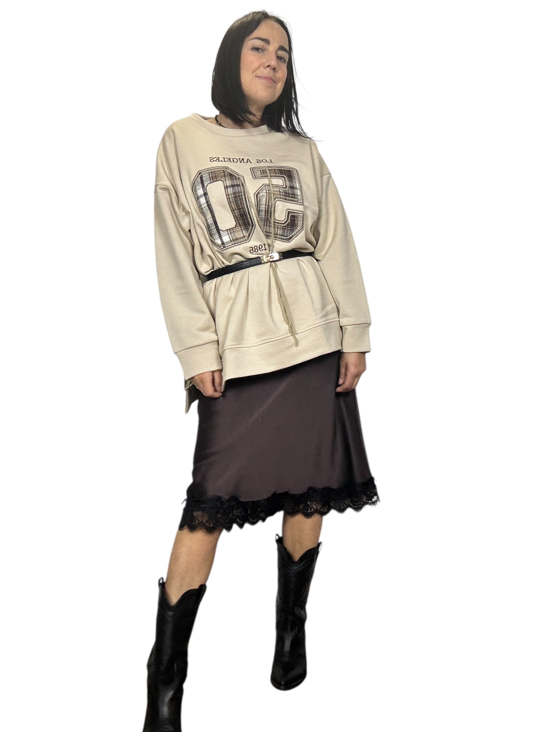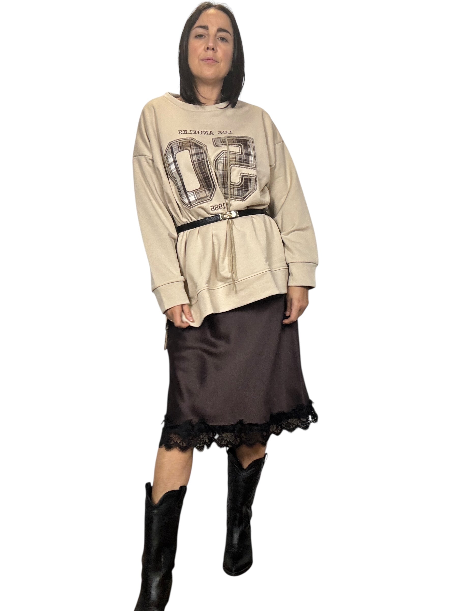Abito midi con spallina sottile regolabile ed inserto in pizzo (tg in foto M)
