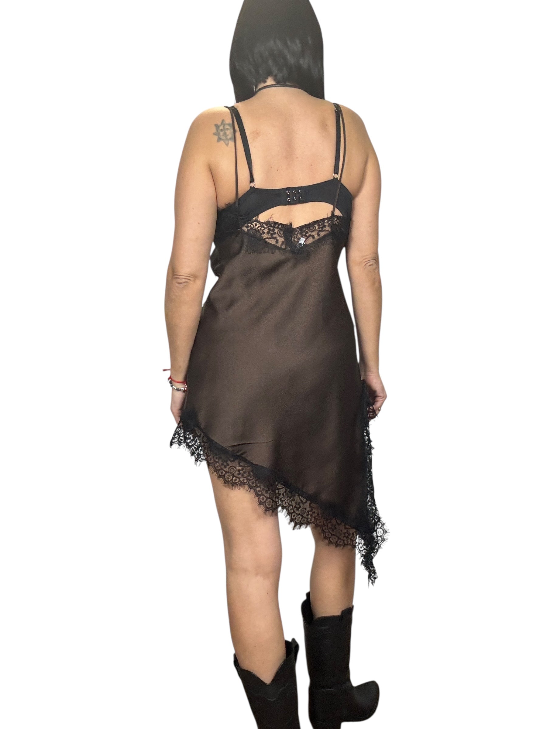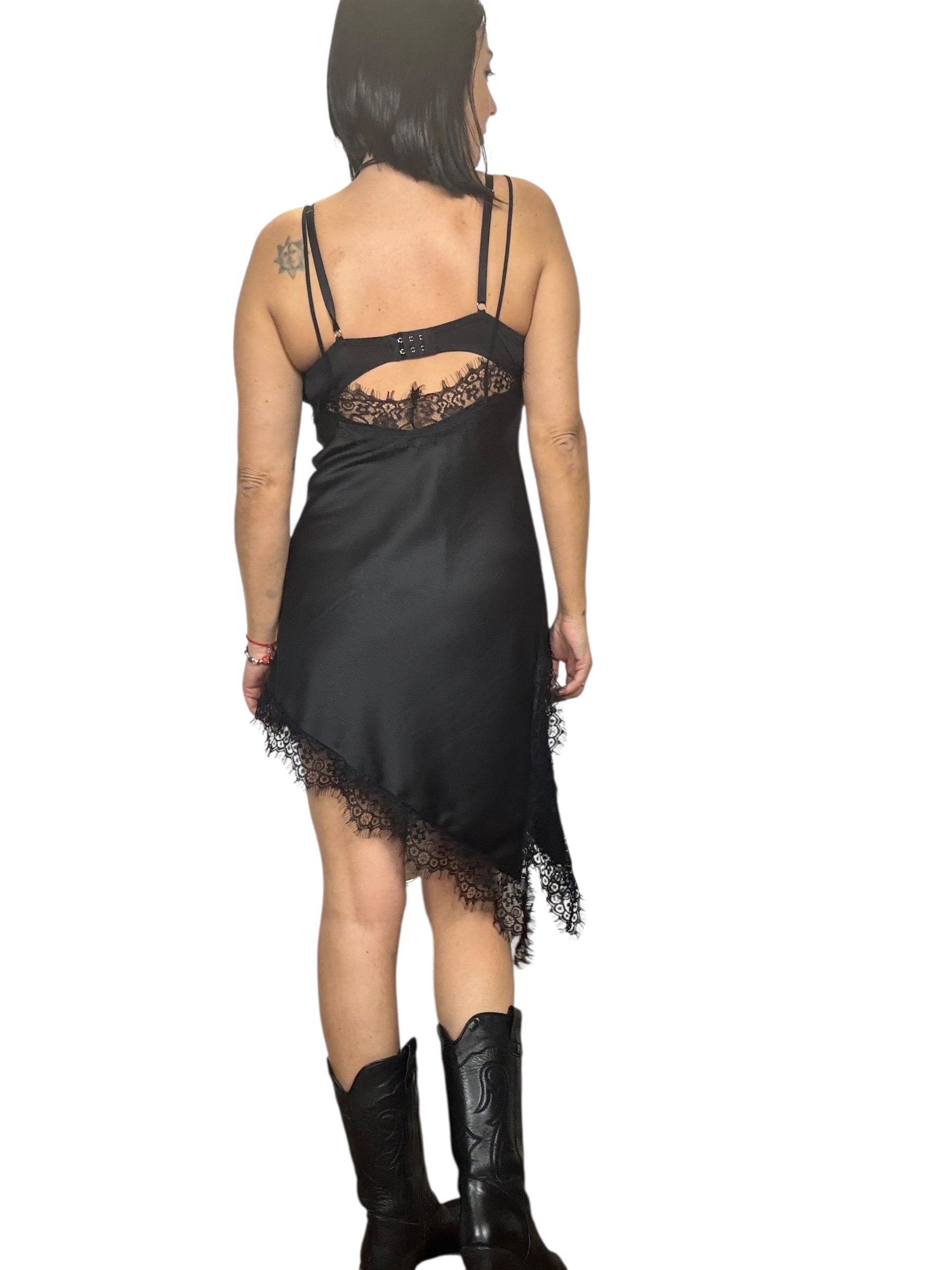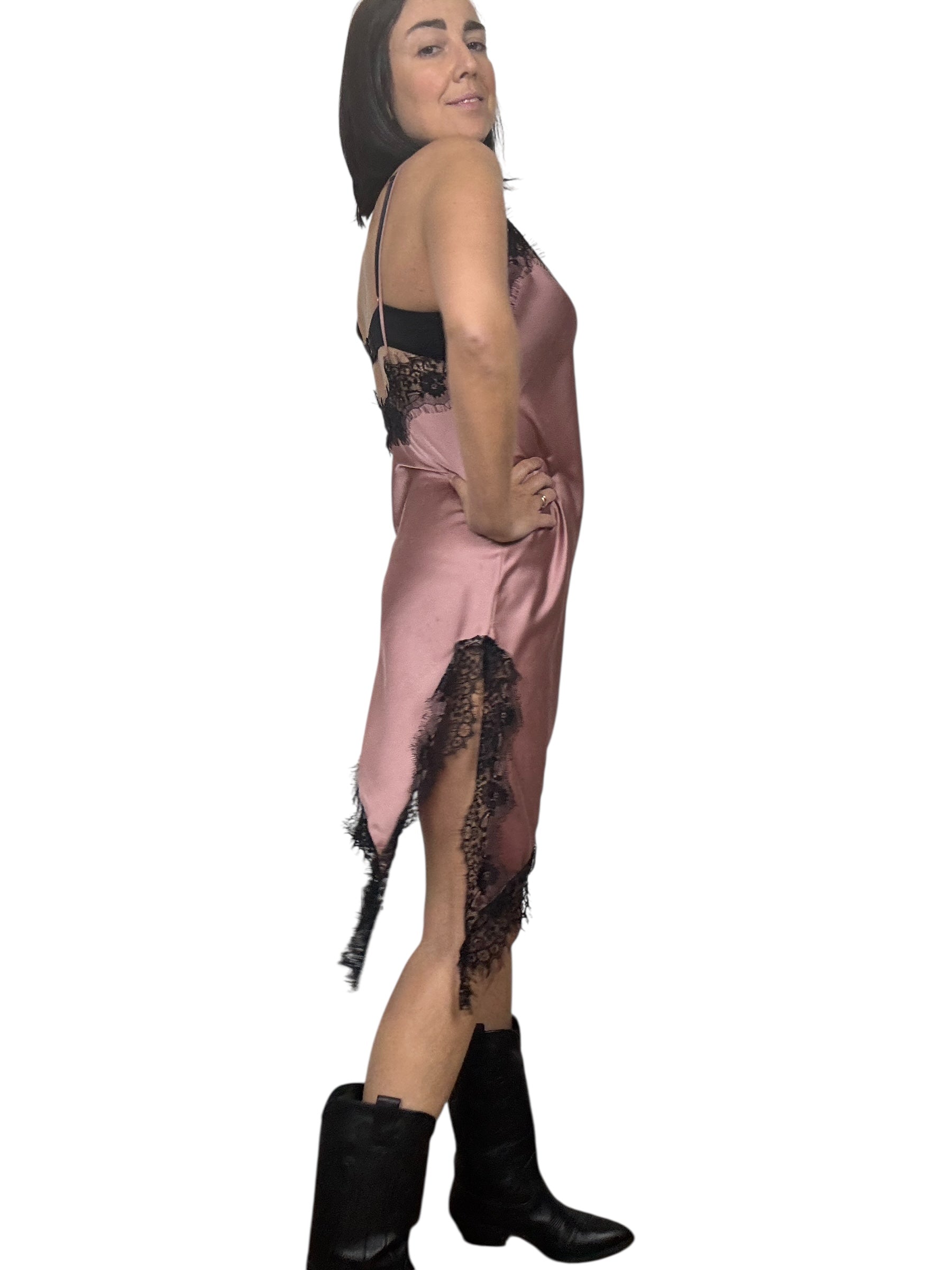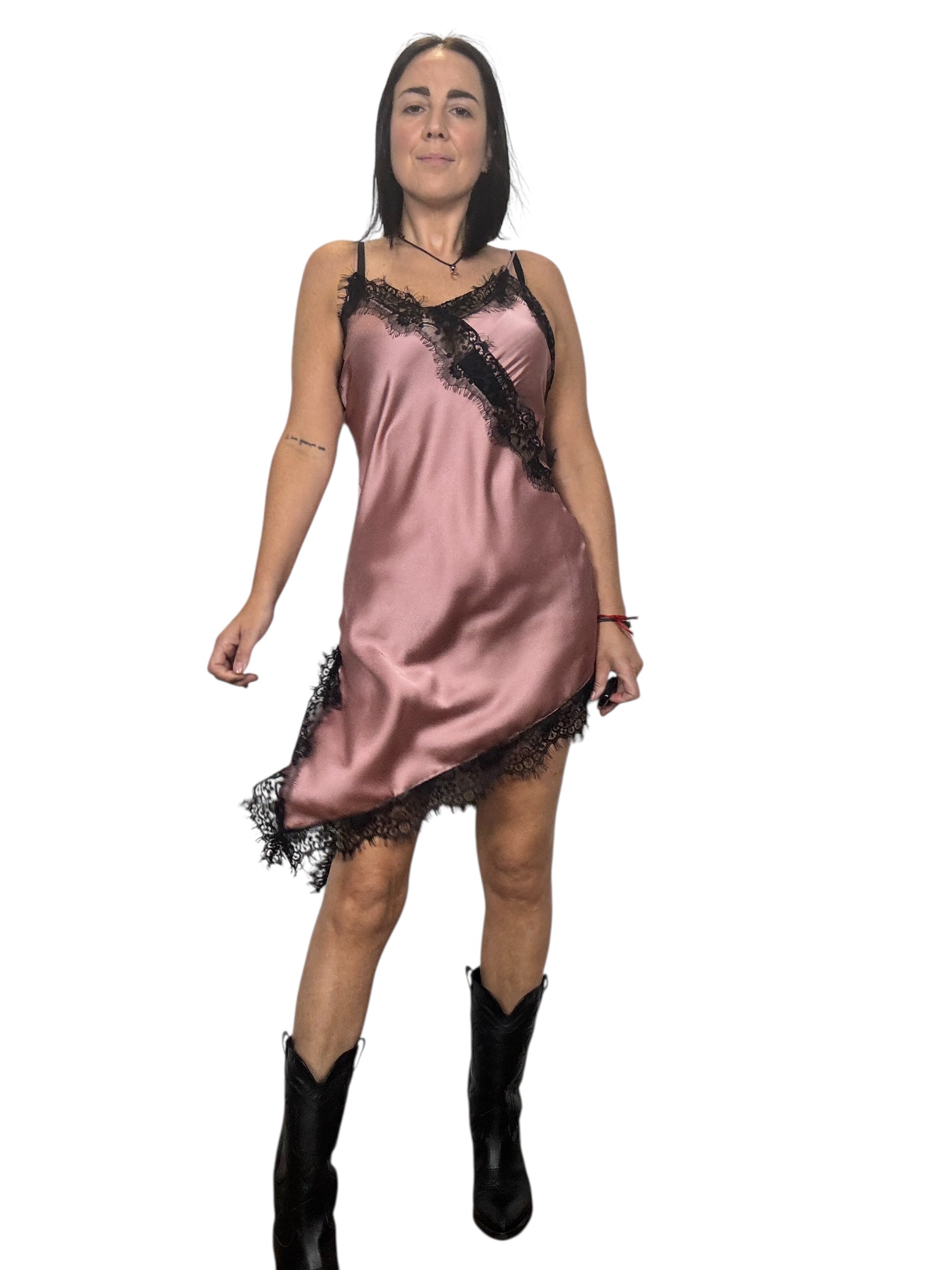abito con spallina sottile regolabile ed inserto in pizzo, tagliato sbiego con spacco laterale (tg in foto M)
