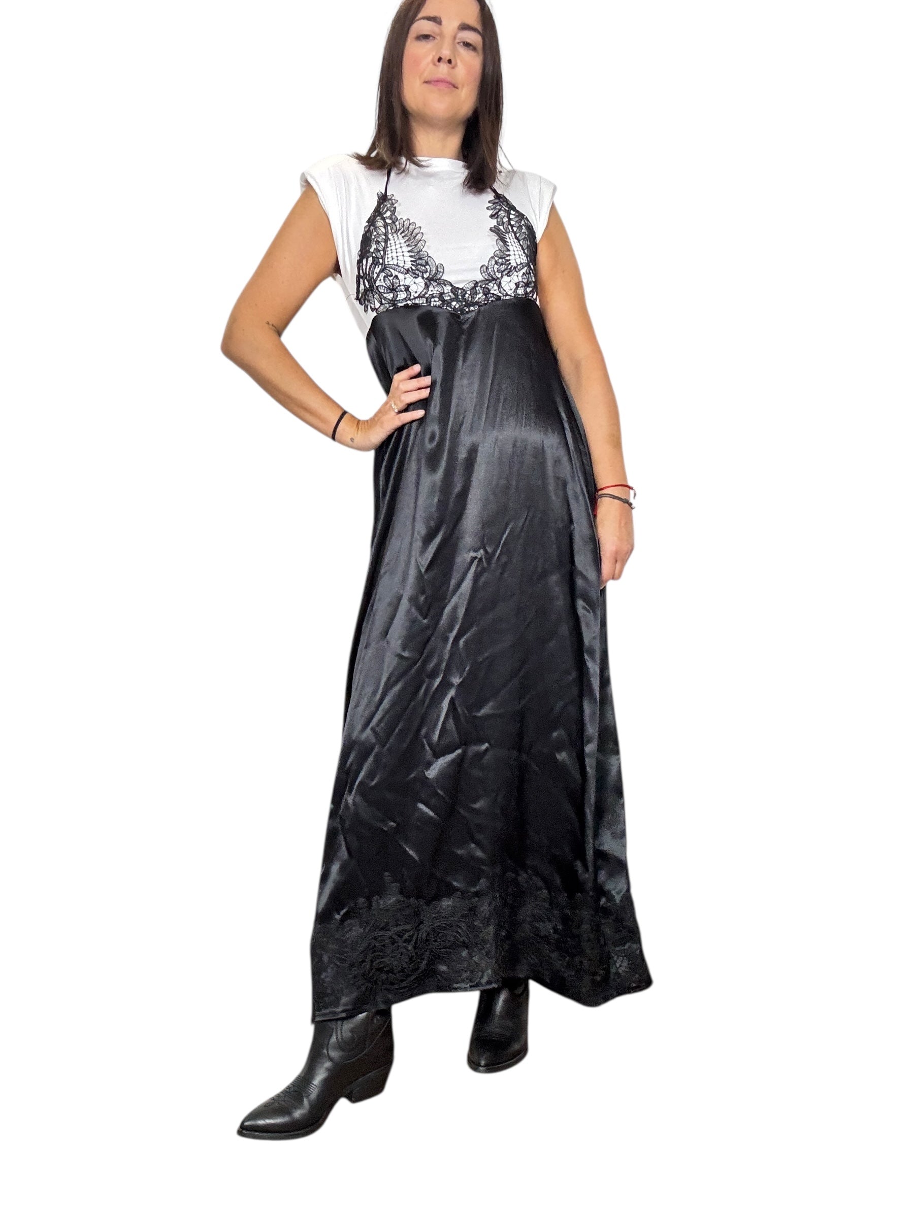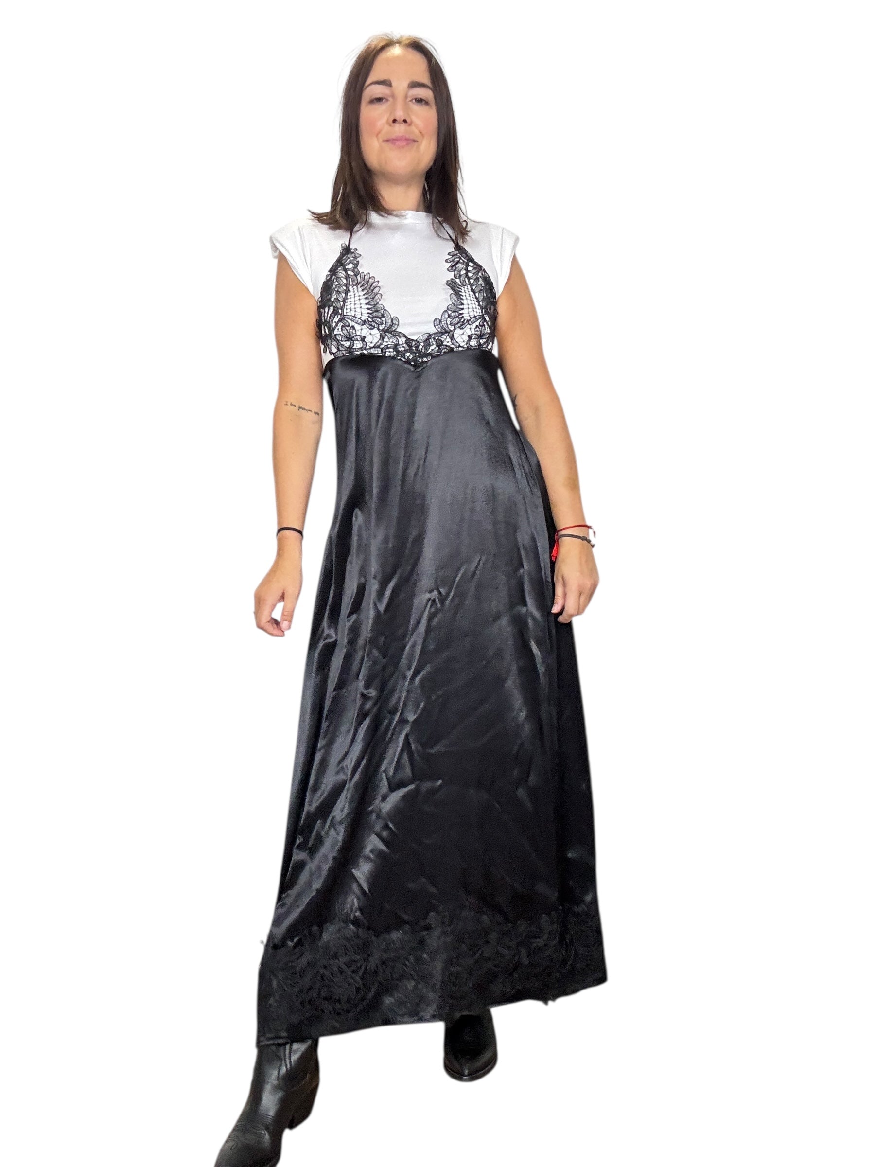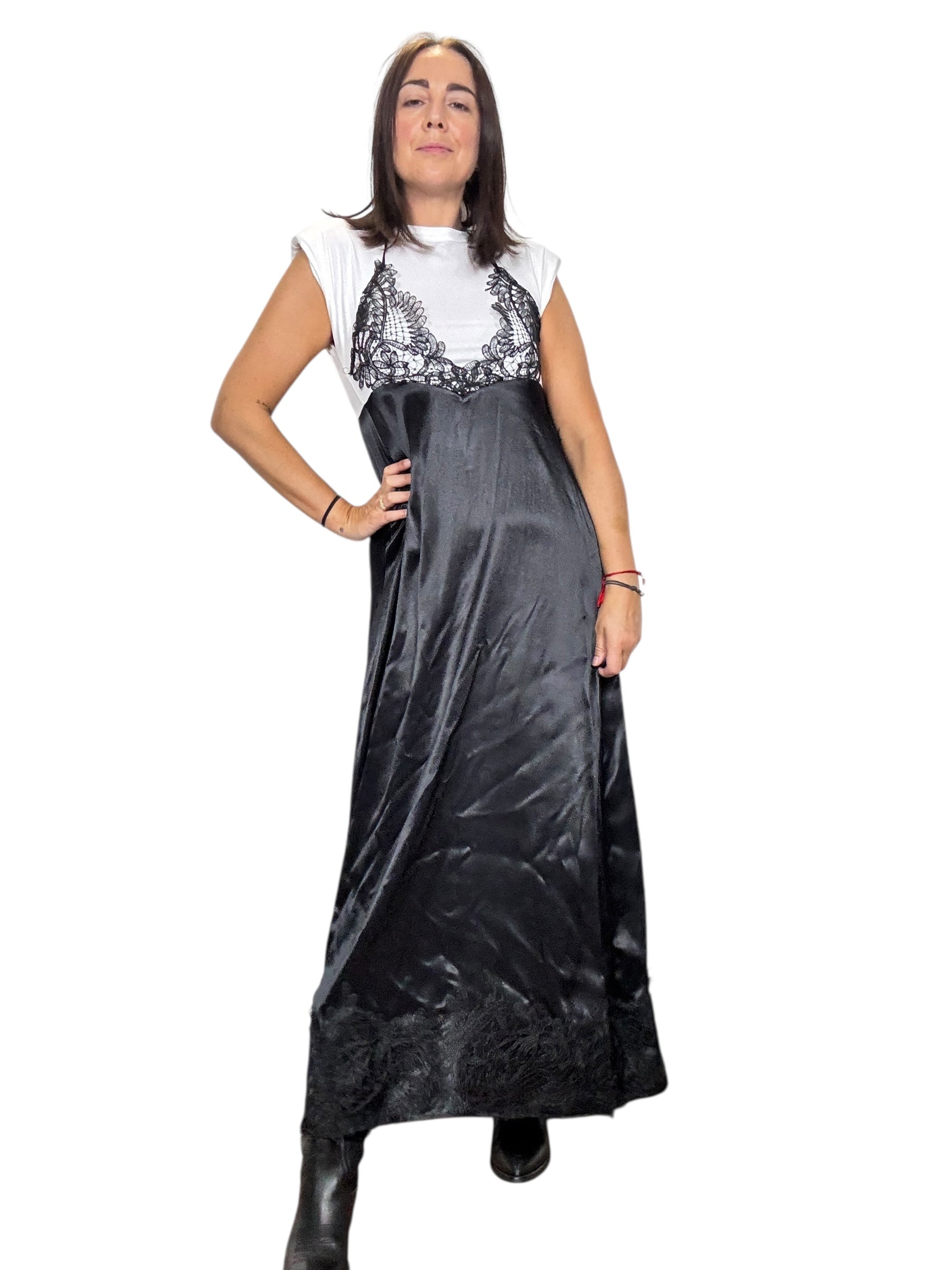 abito lungo a sottoveste con maglietta a mezza manica cucita sotto (tg in foto S)
