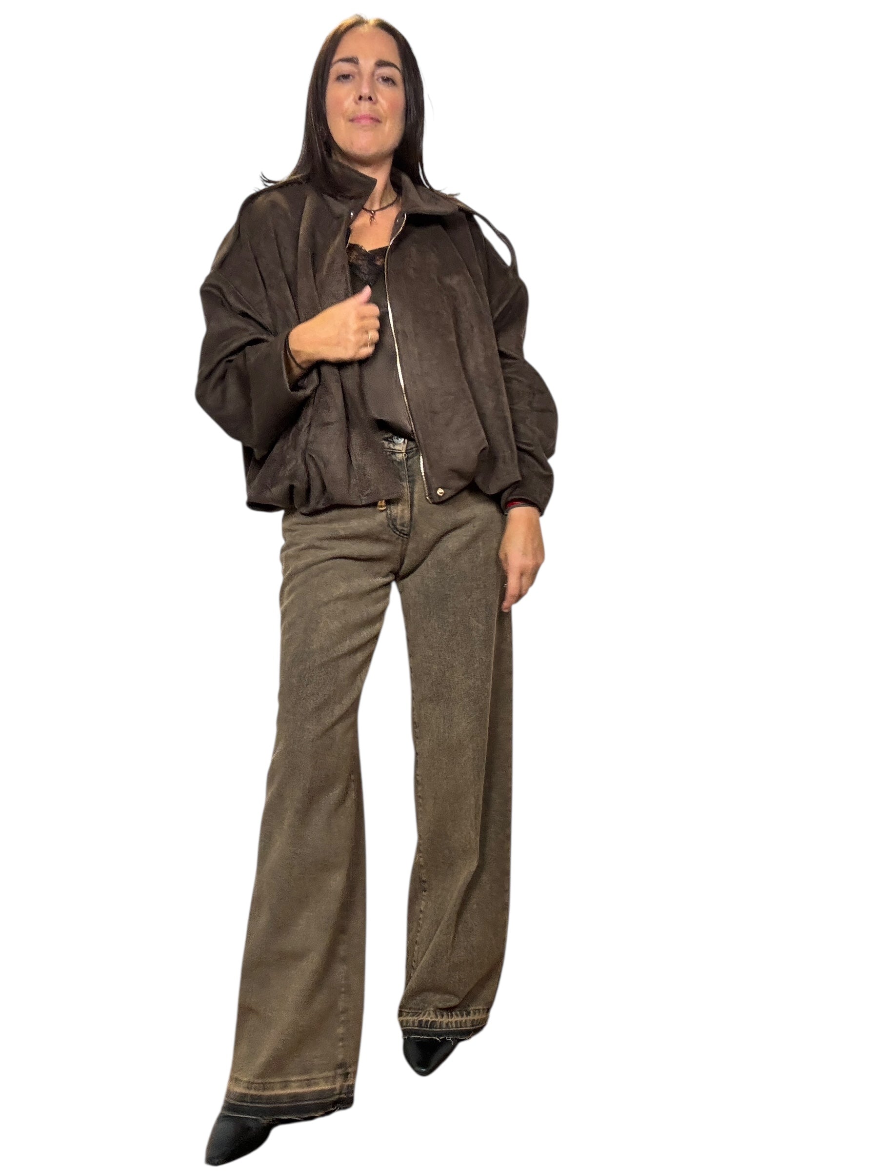 Bomber foderato con zip frontale e tasche laterali. Modello oversize