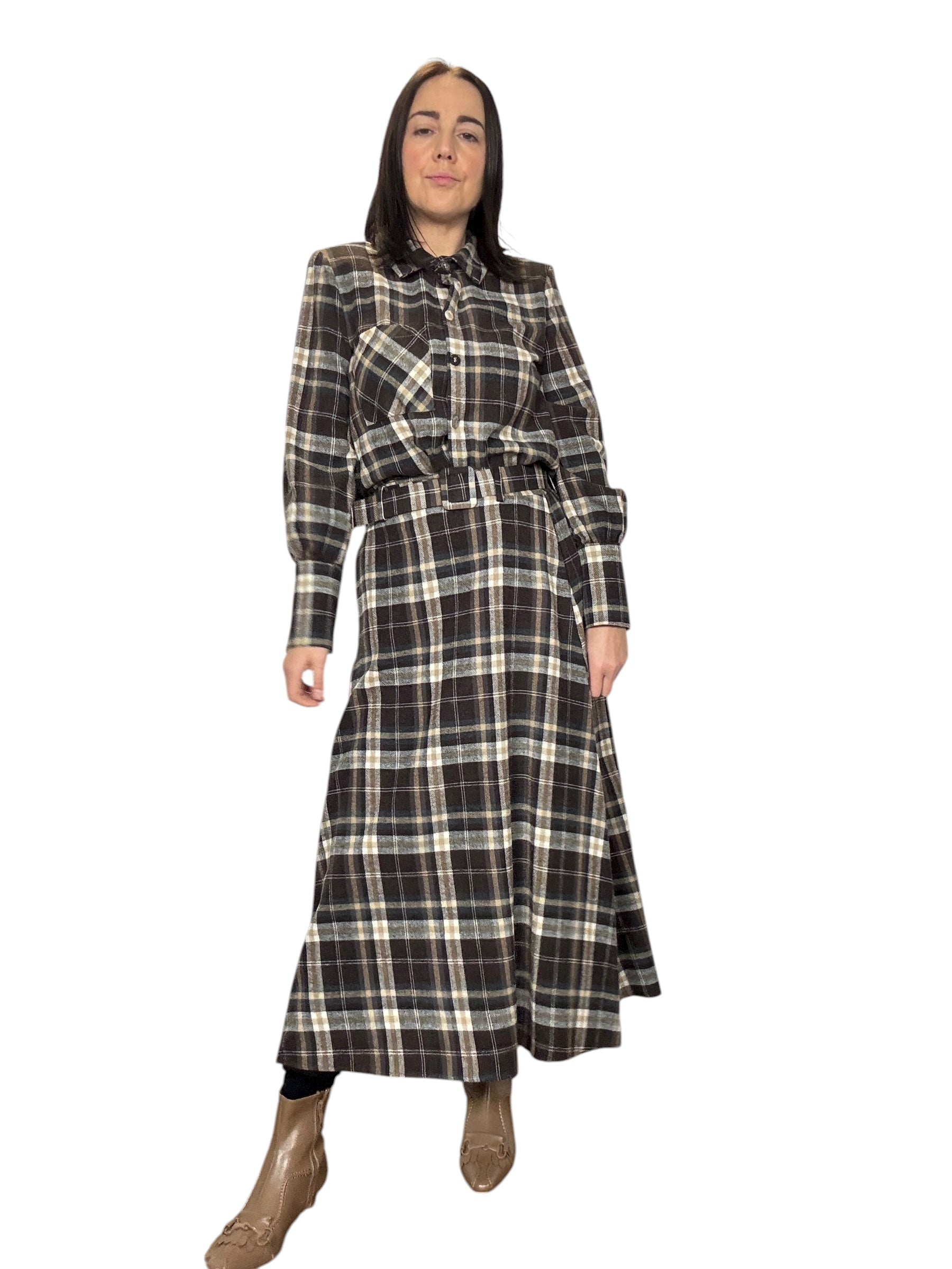 camicia cropped con spalla imbottita e gonna abbinabile (tg in foto M)
