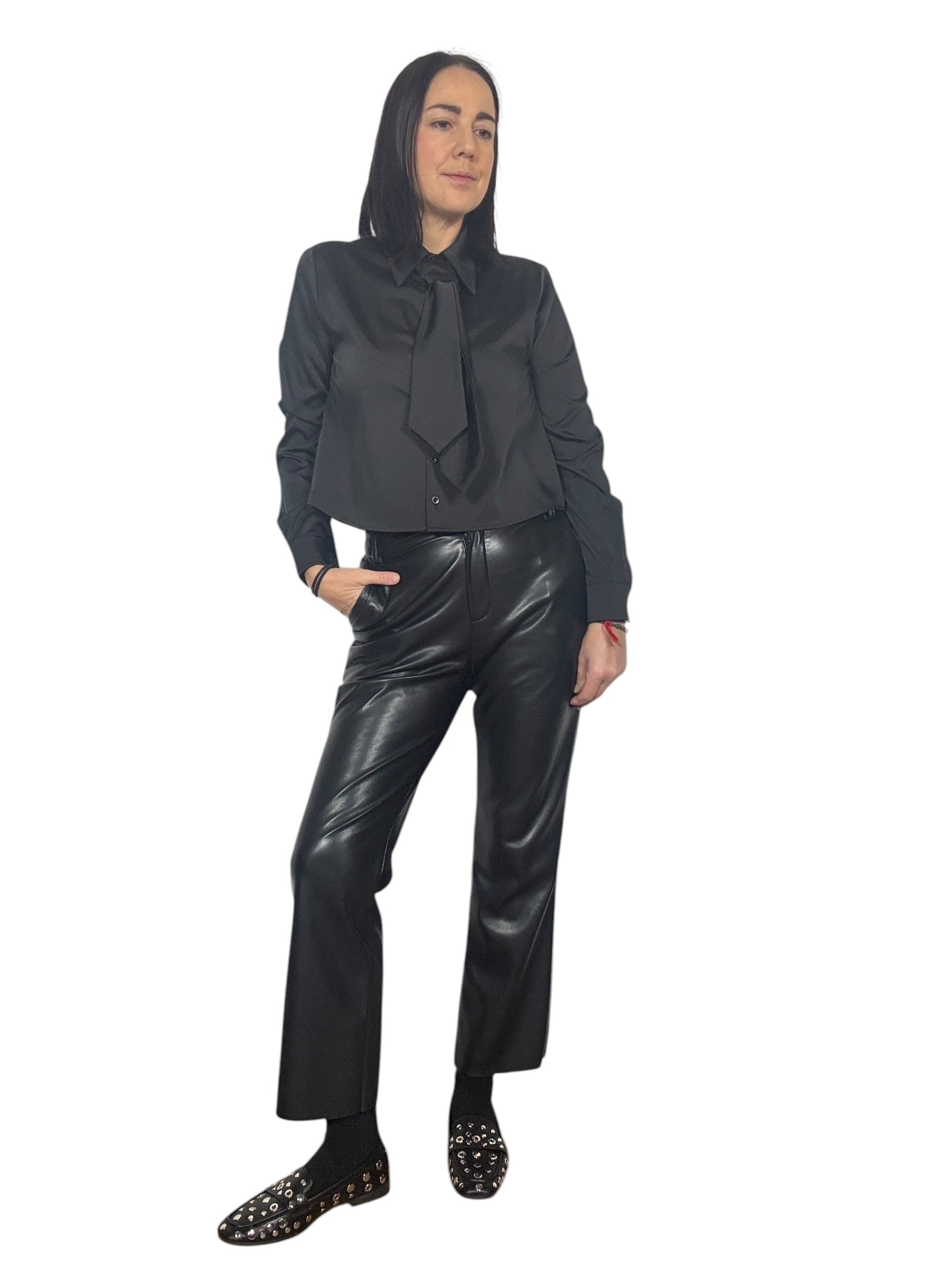 camicia cropped in raso con dettaglio cravatta (tg in foto S)