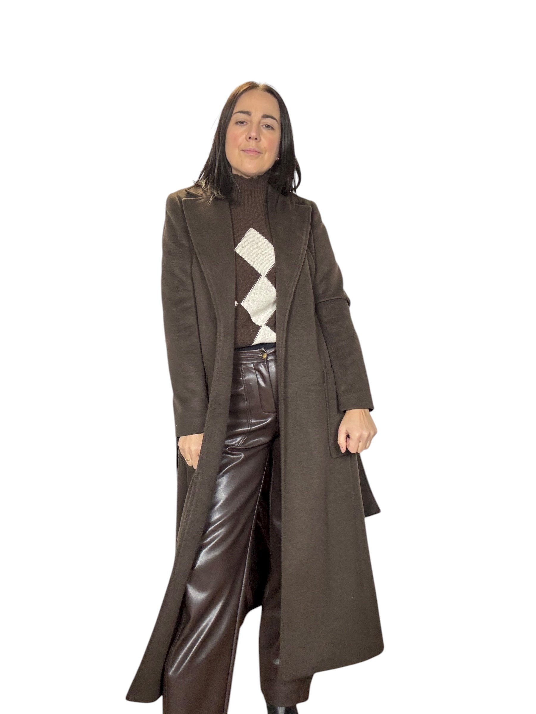 cappotto foderato con tasche frontali, cintura in vita e spacco sul retro. Vestibilità asciutta (tg in foto S)