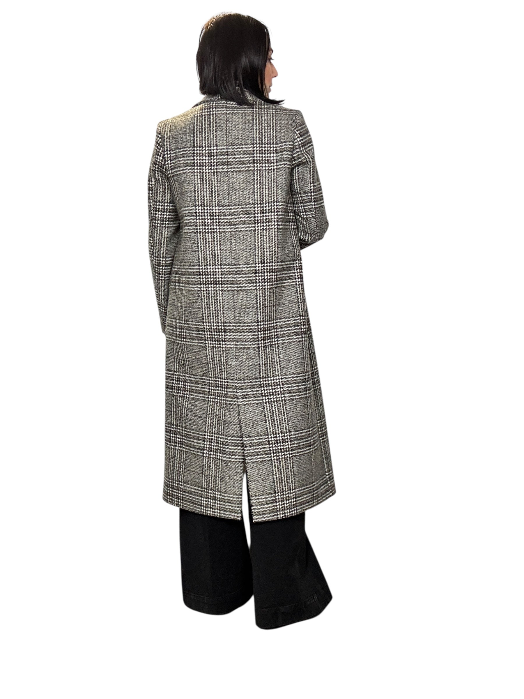 cappotto foderato monopetto con tasche laterali e spacco sulla schiena. Modello asciutto in figura (tg in foto S)