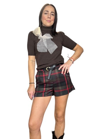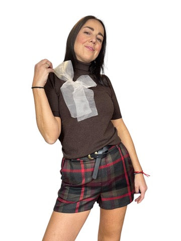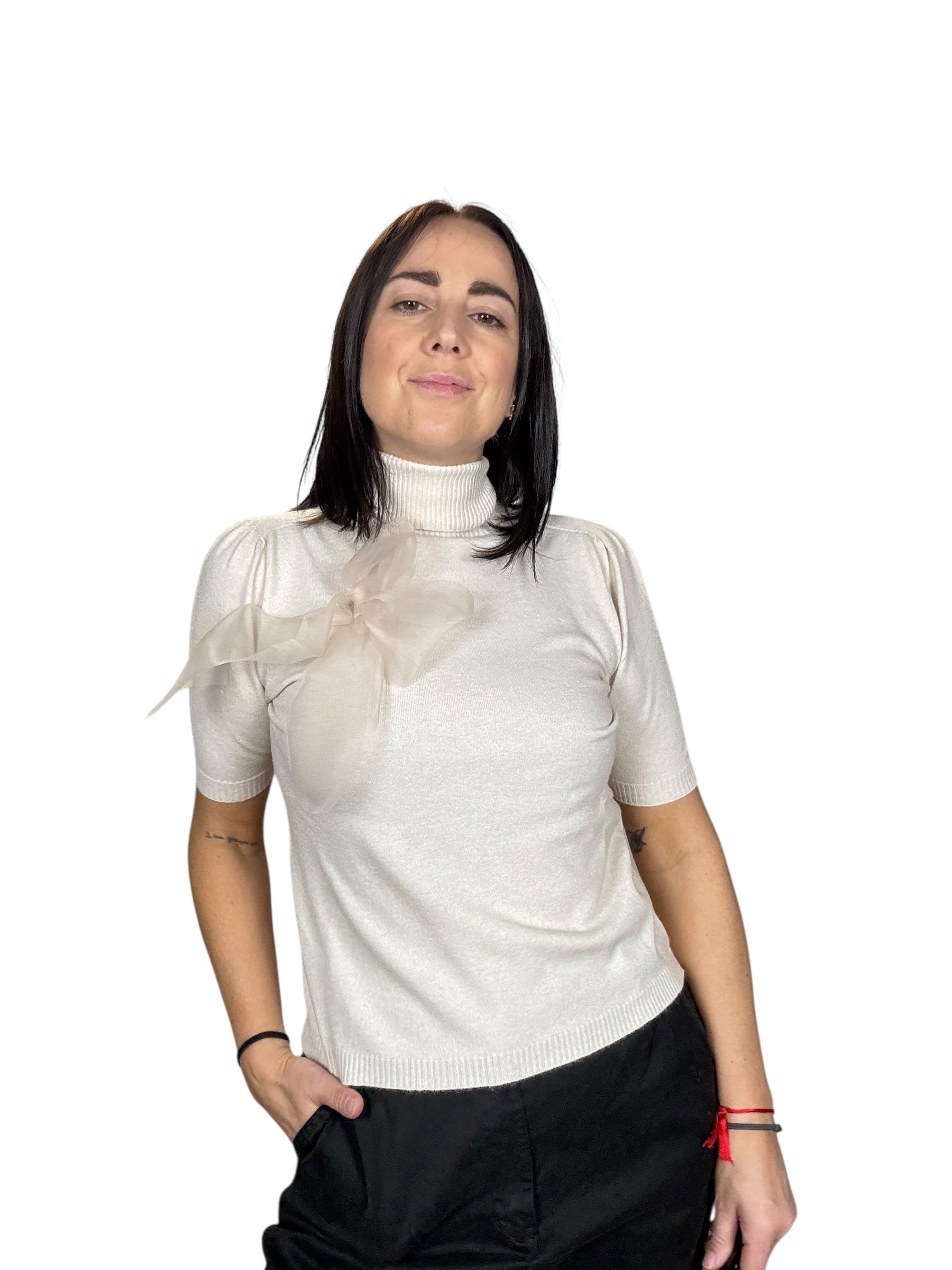 Dolcevita a mezza manica con spilla fiocco rimuovibile