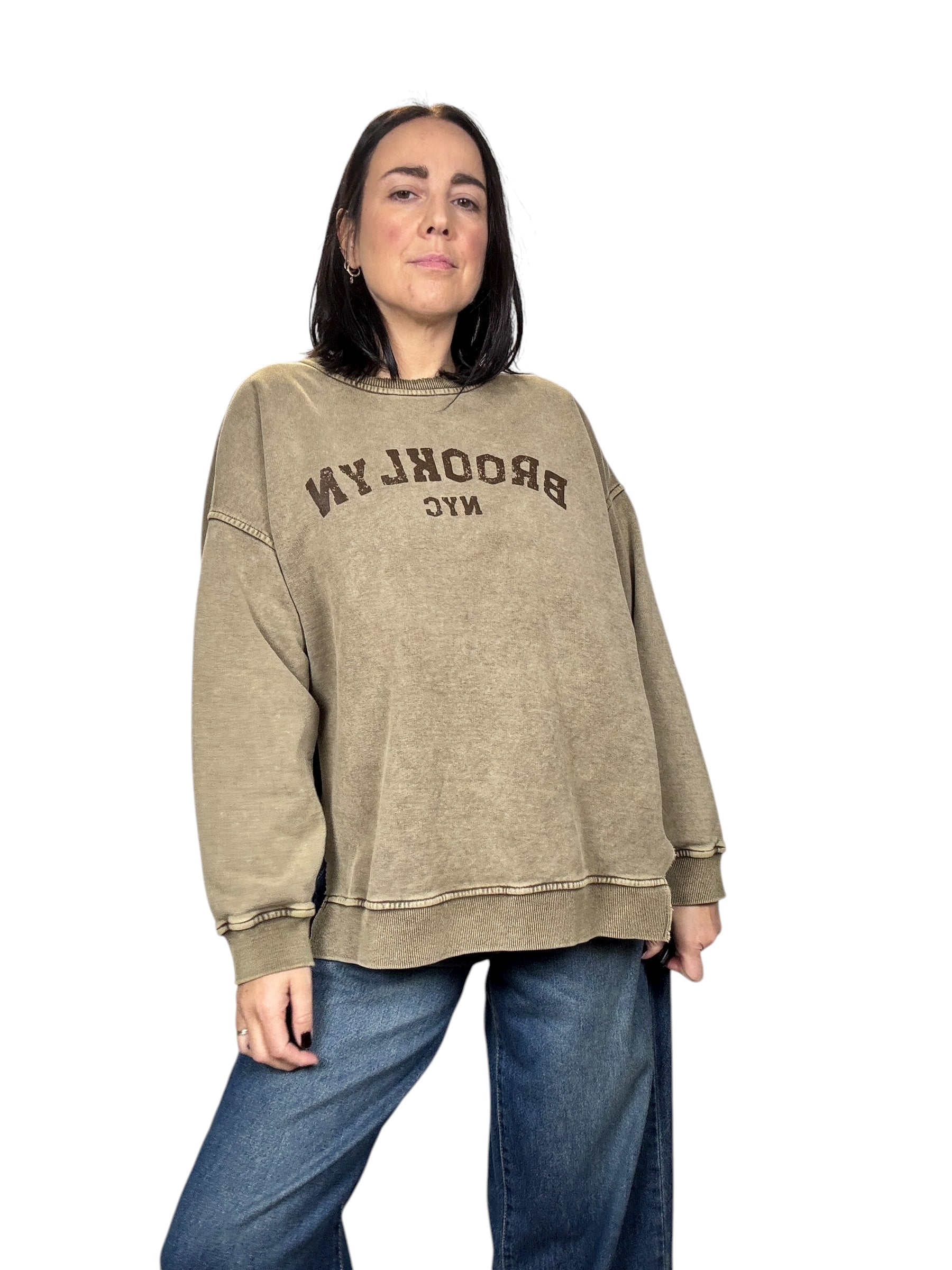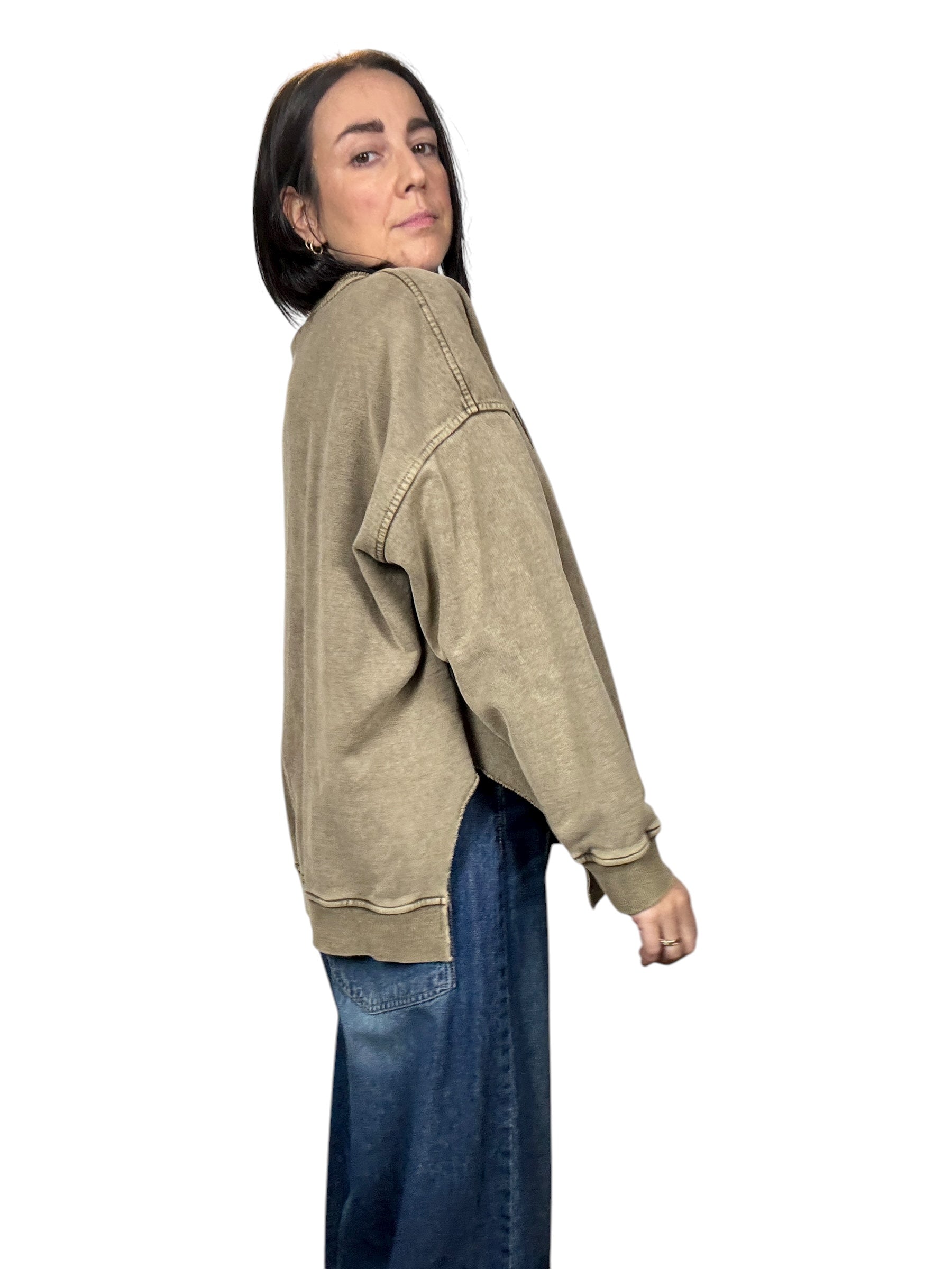Felpa paricollo a manica lunga con spacchi laterali, over