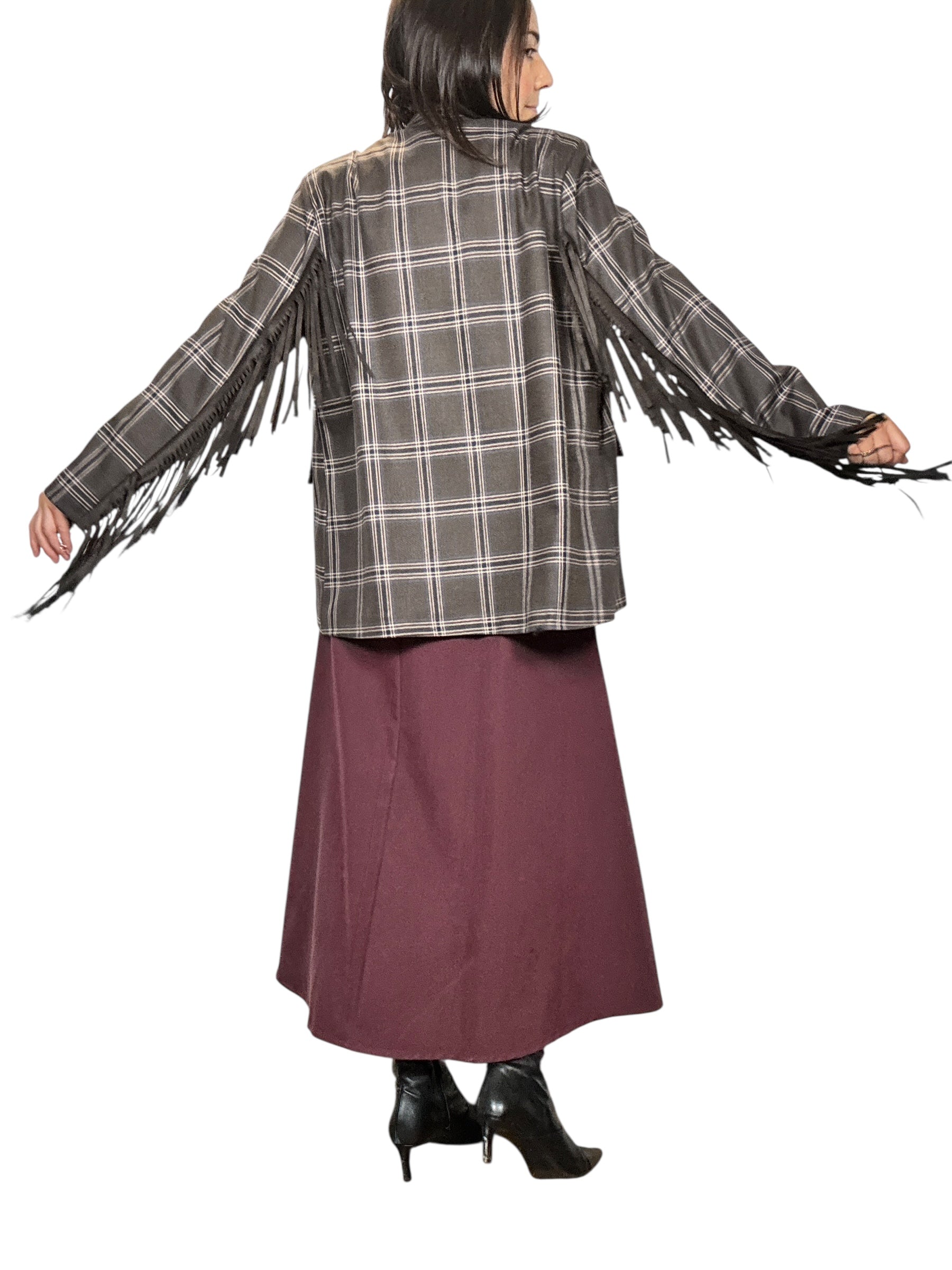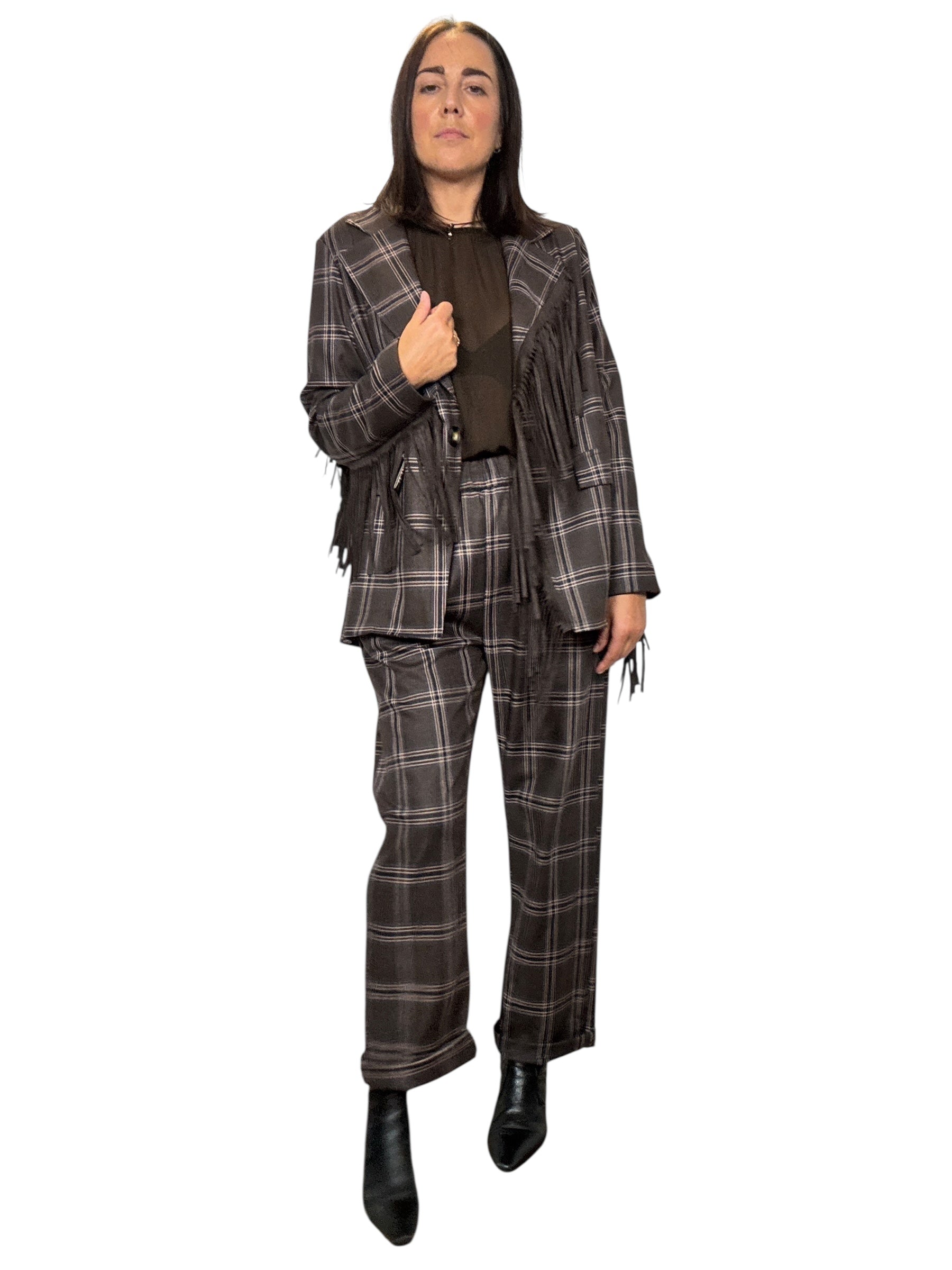 GIACCA CHECK MARRONE-BORDEAUX CON FRANGE SUSY MIX