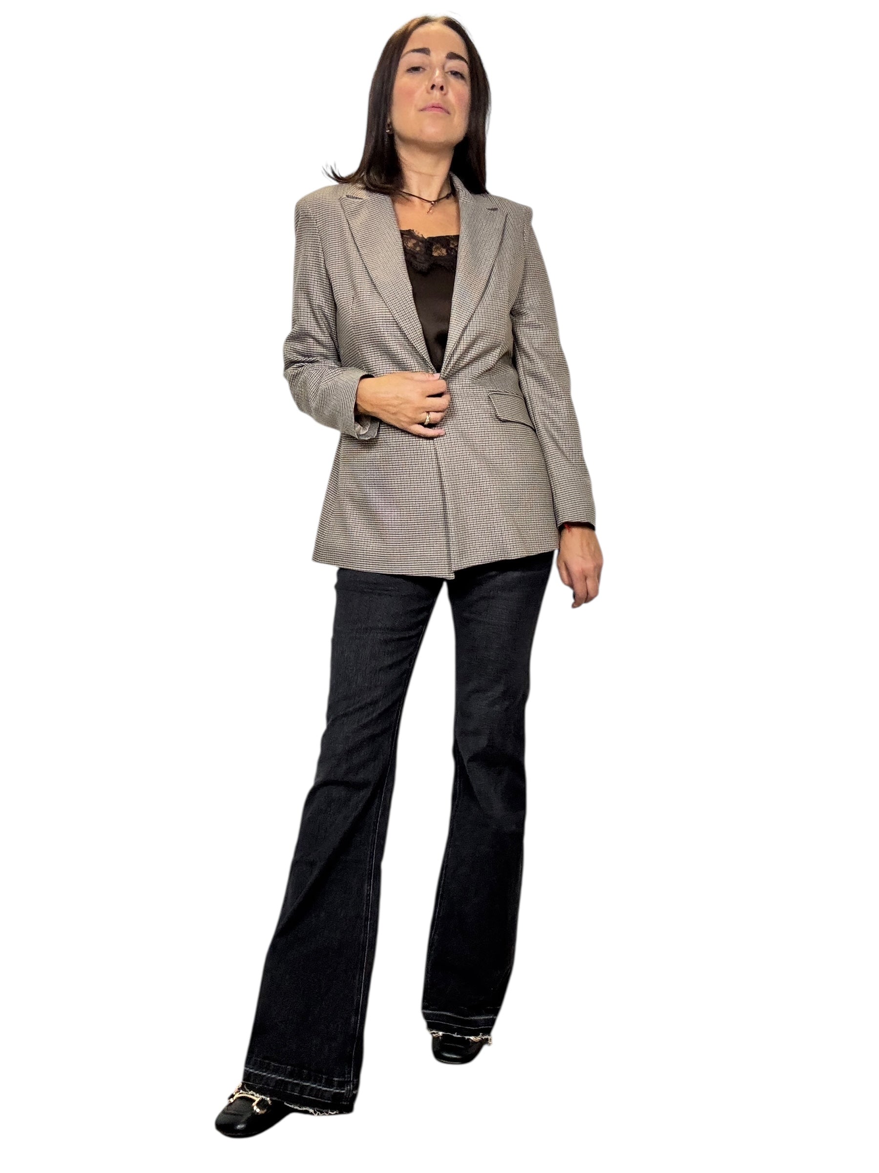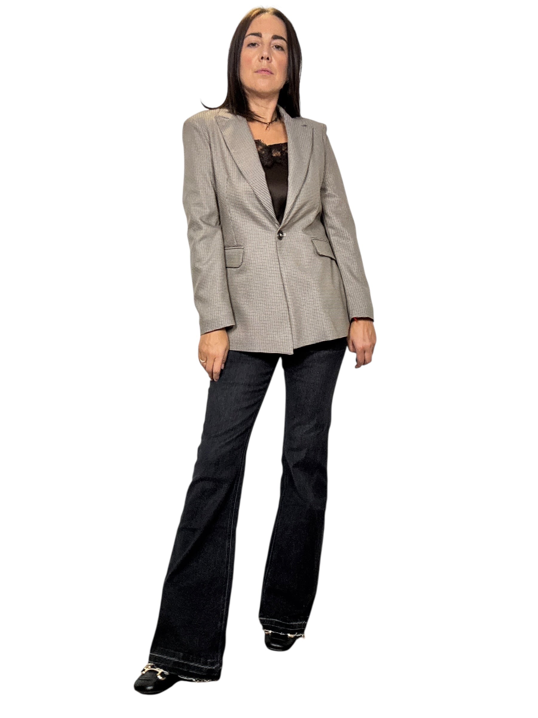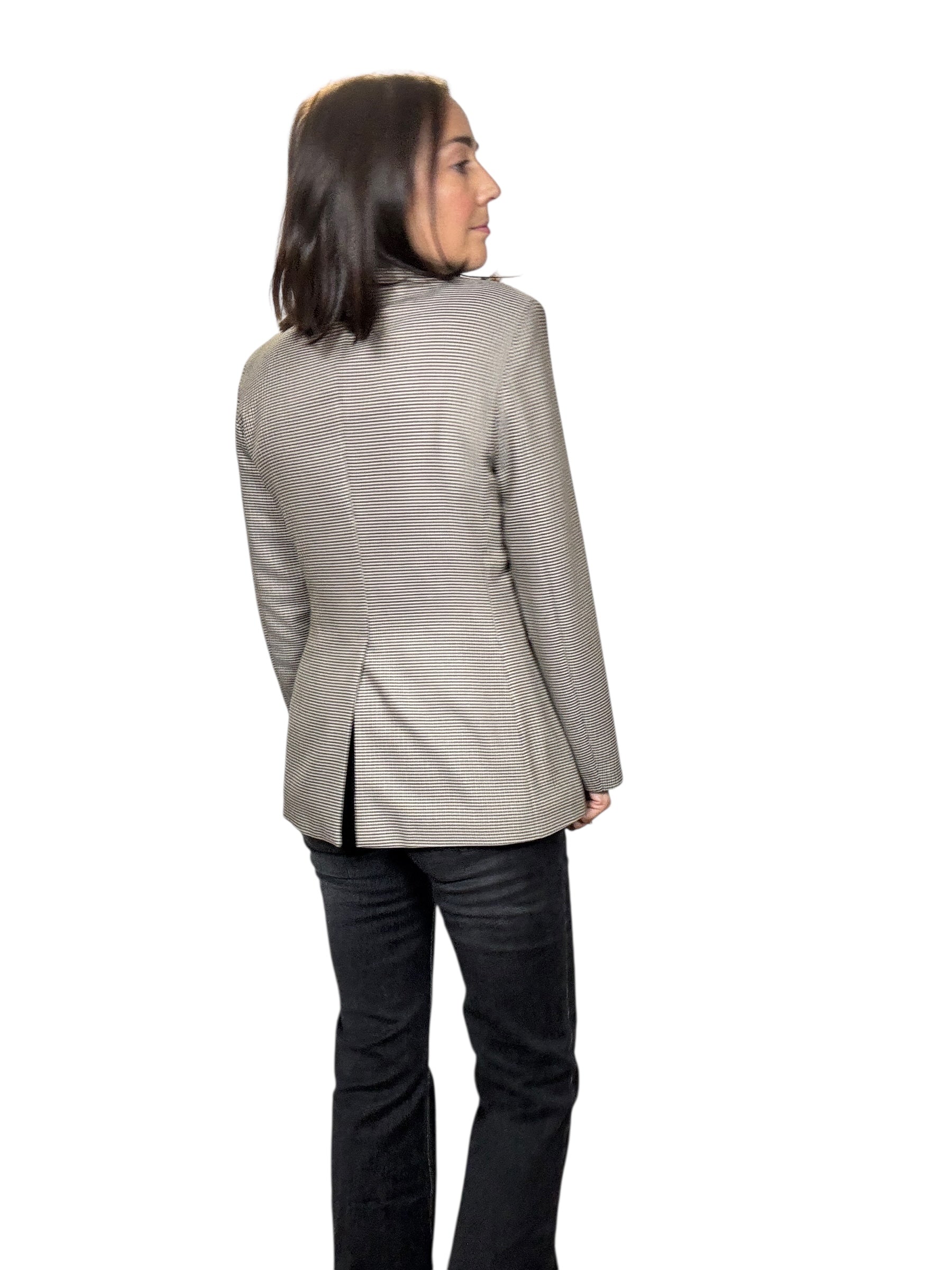 Giacca foderata monopetto con finte tasche frontali e spacco sulla schiena. Tessuto elasticizzato, fit regular (tg in foto S)