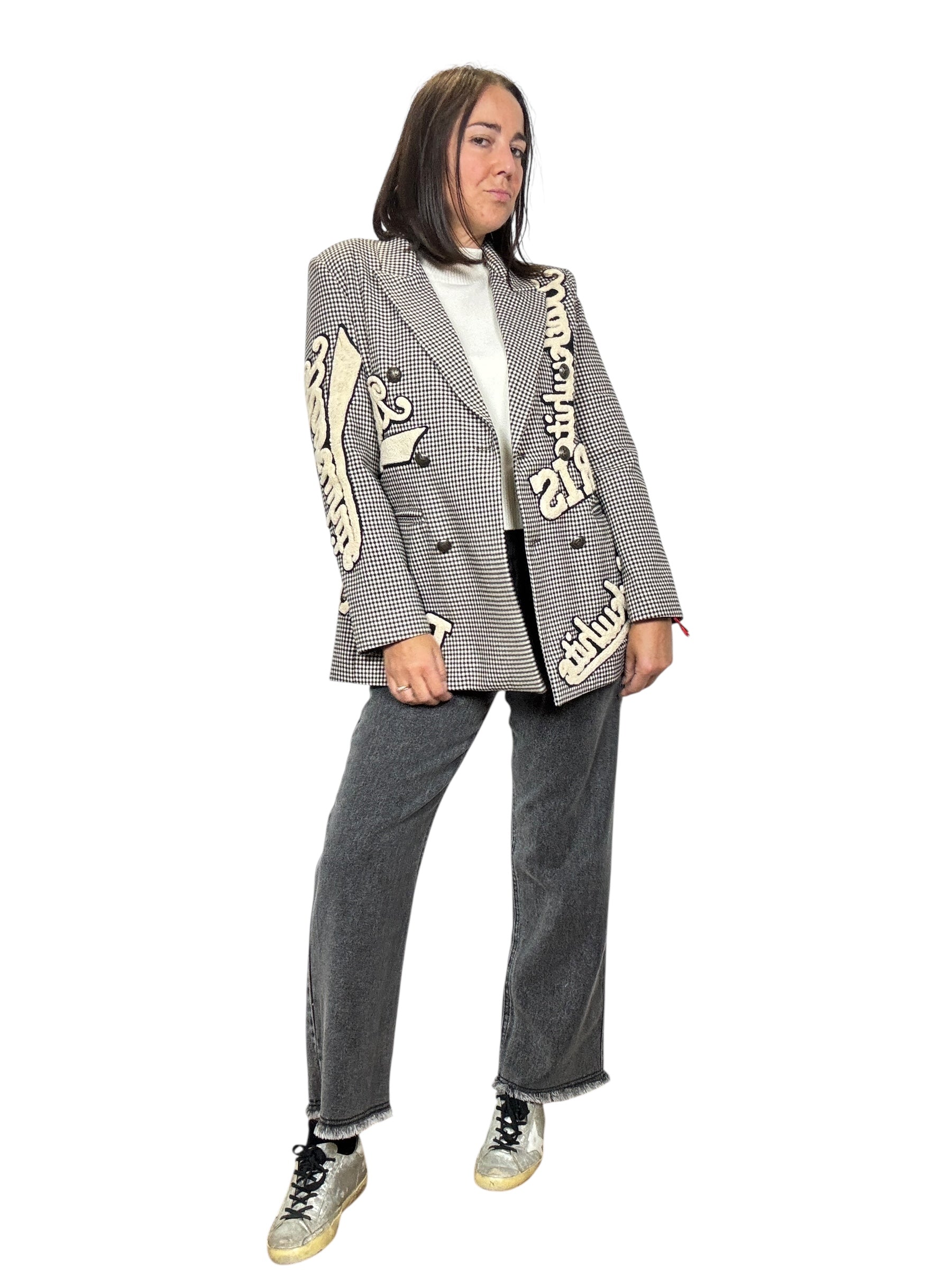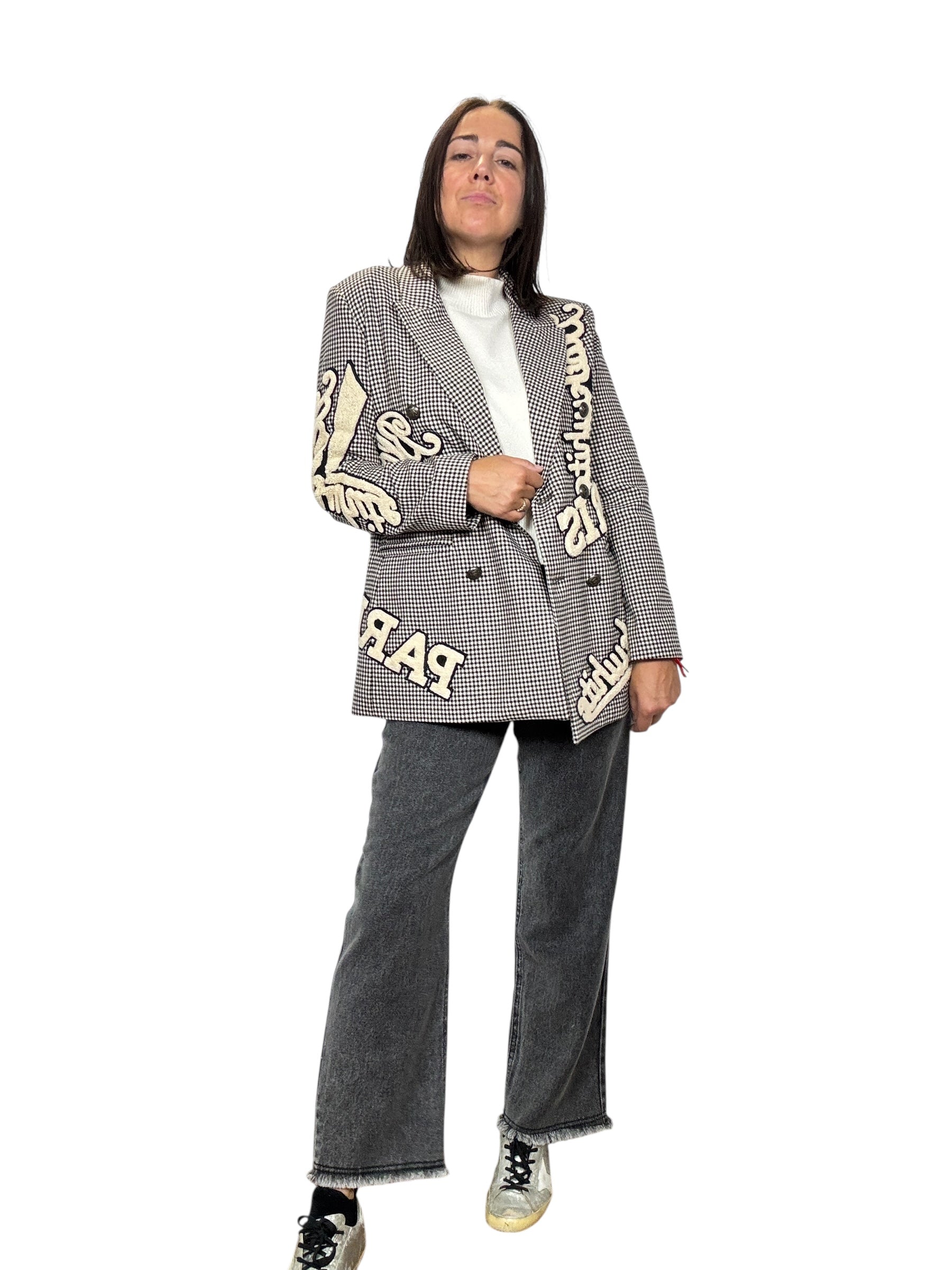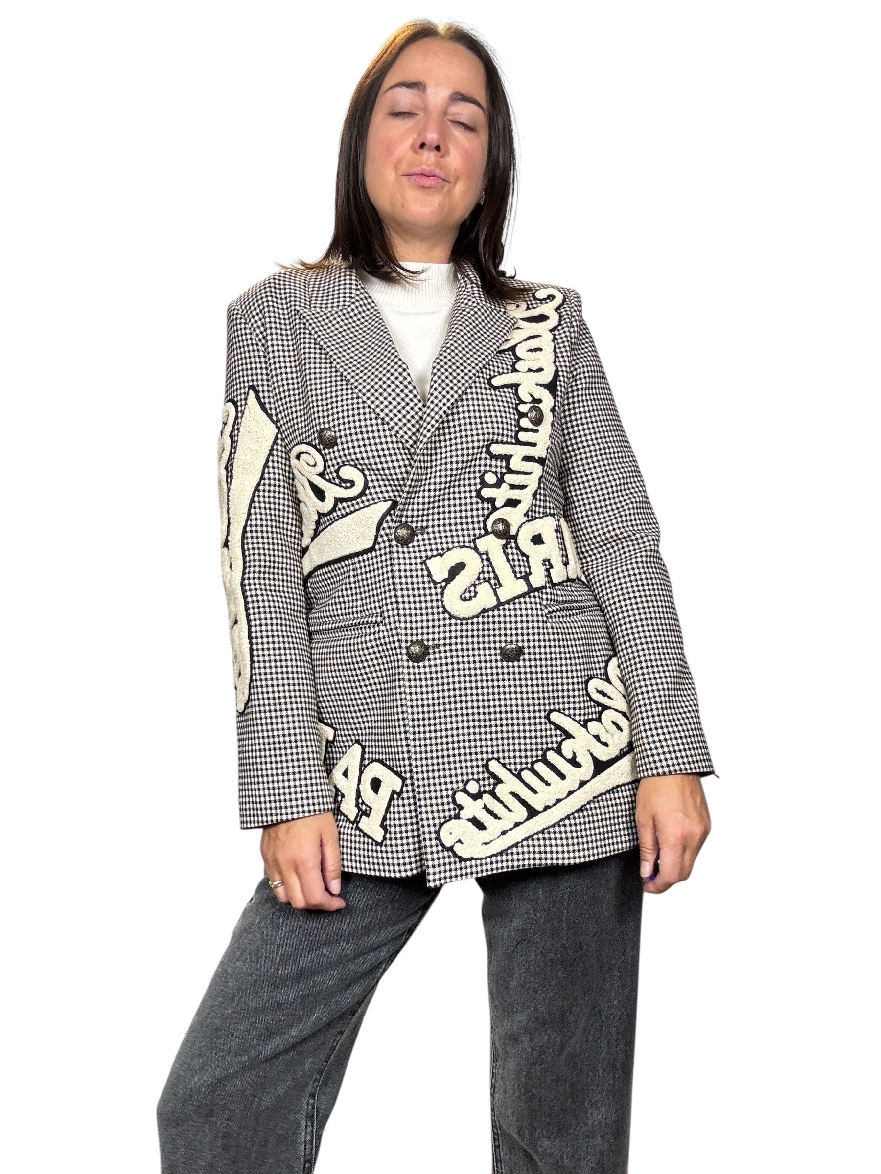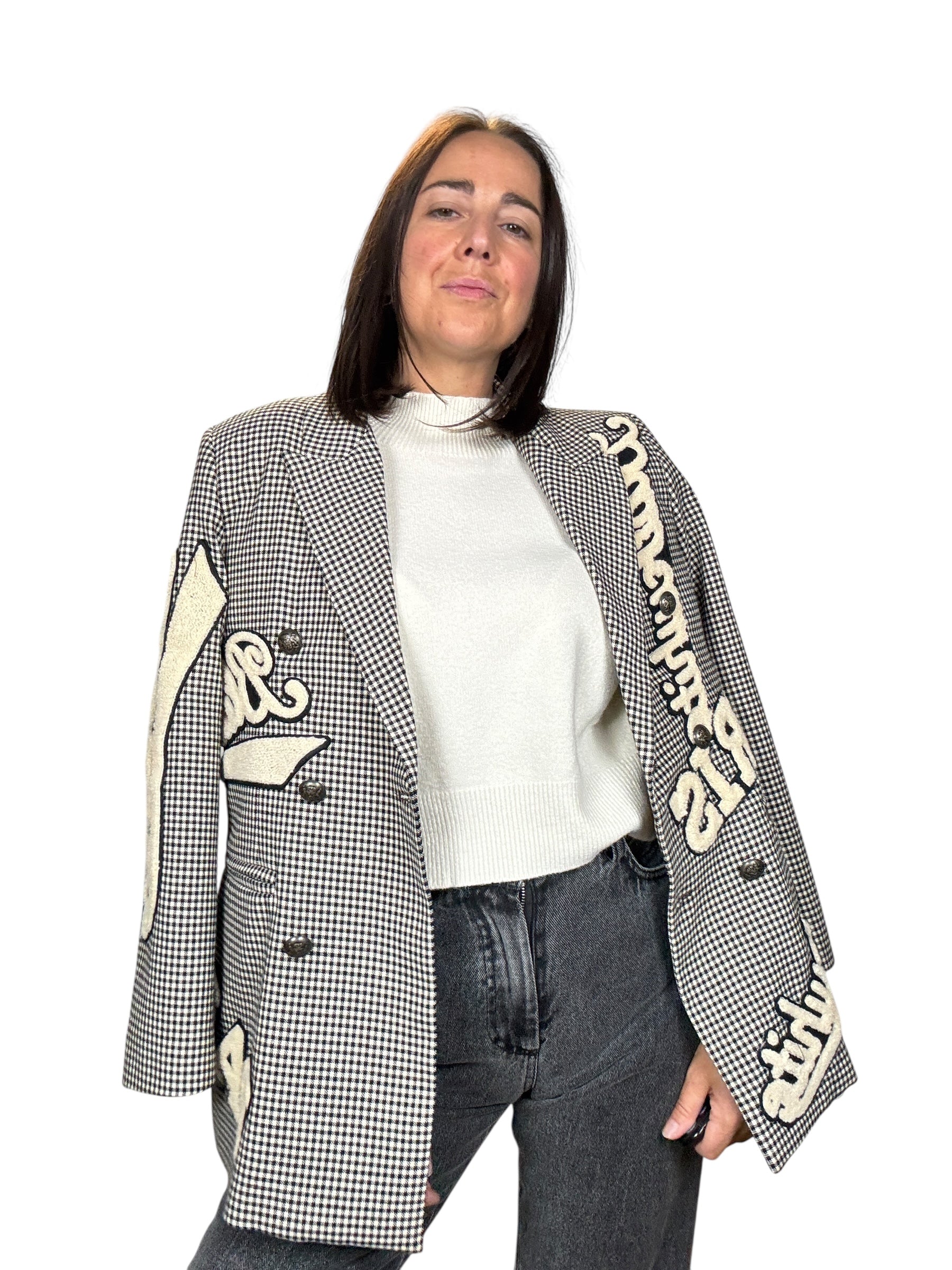 Giacca foderata a doppiopetto con spacchetti sulla schiena. Modello in figura, non elasticizzata (tg in foto S)