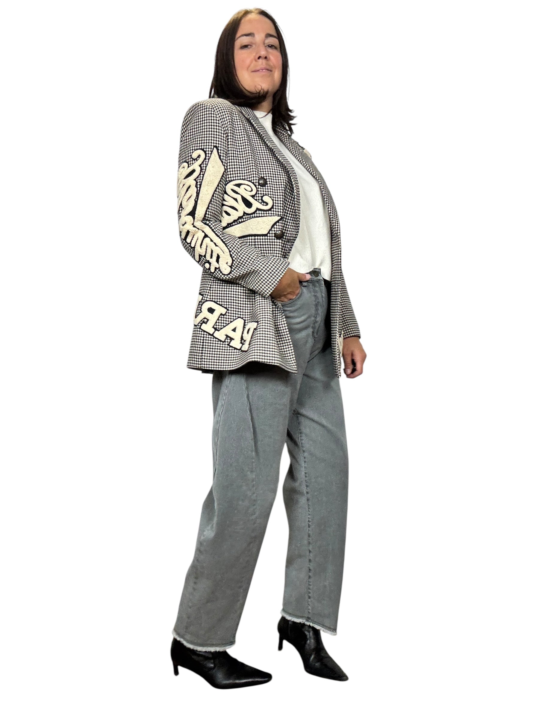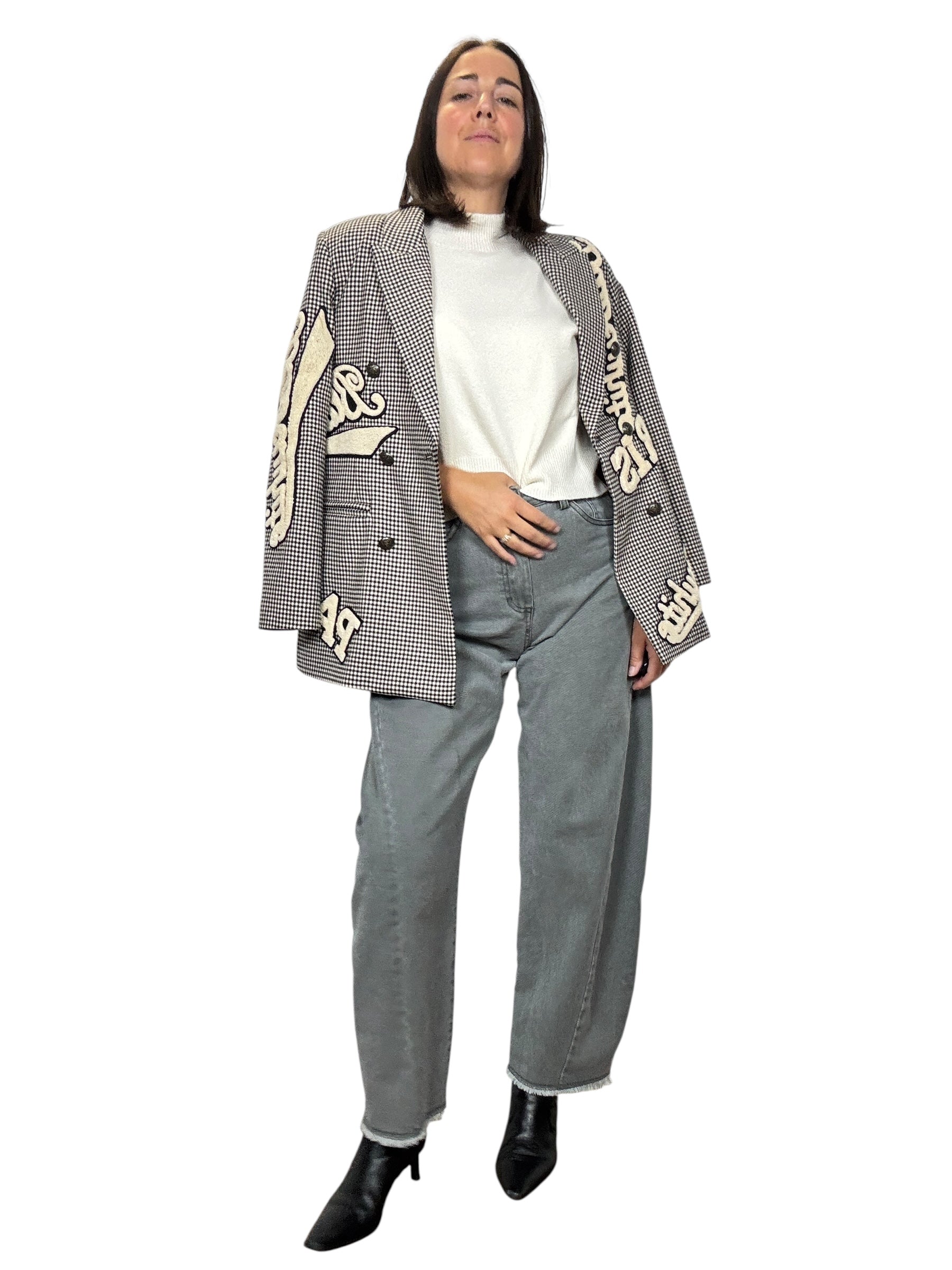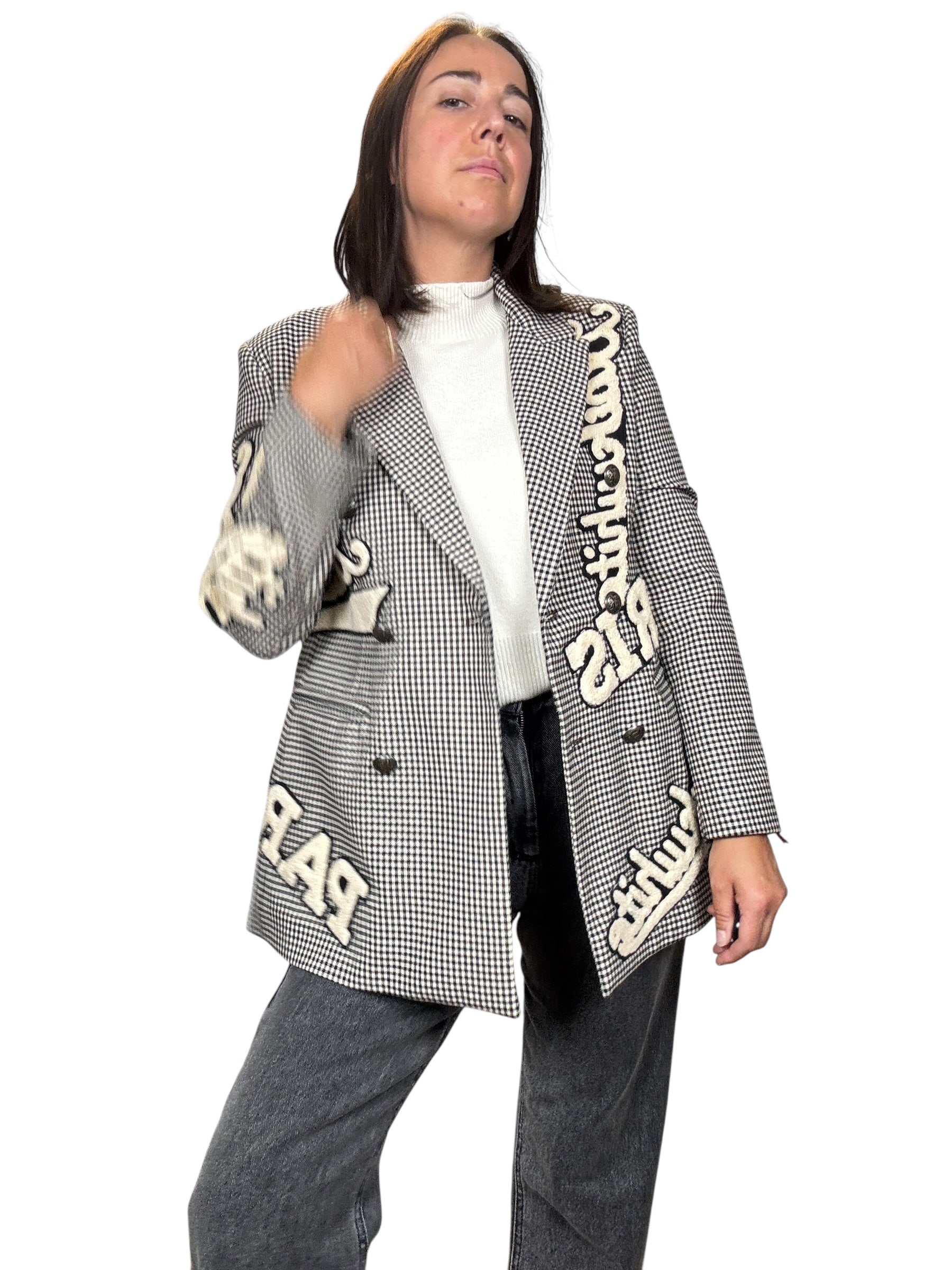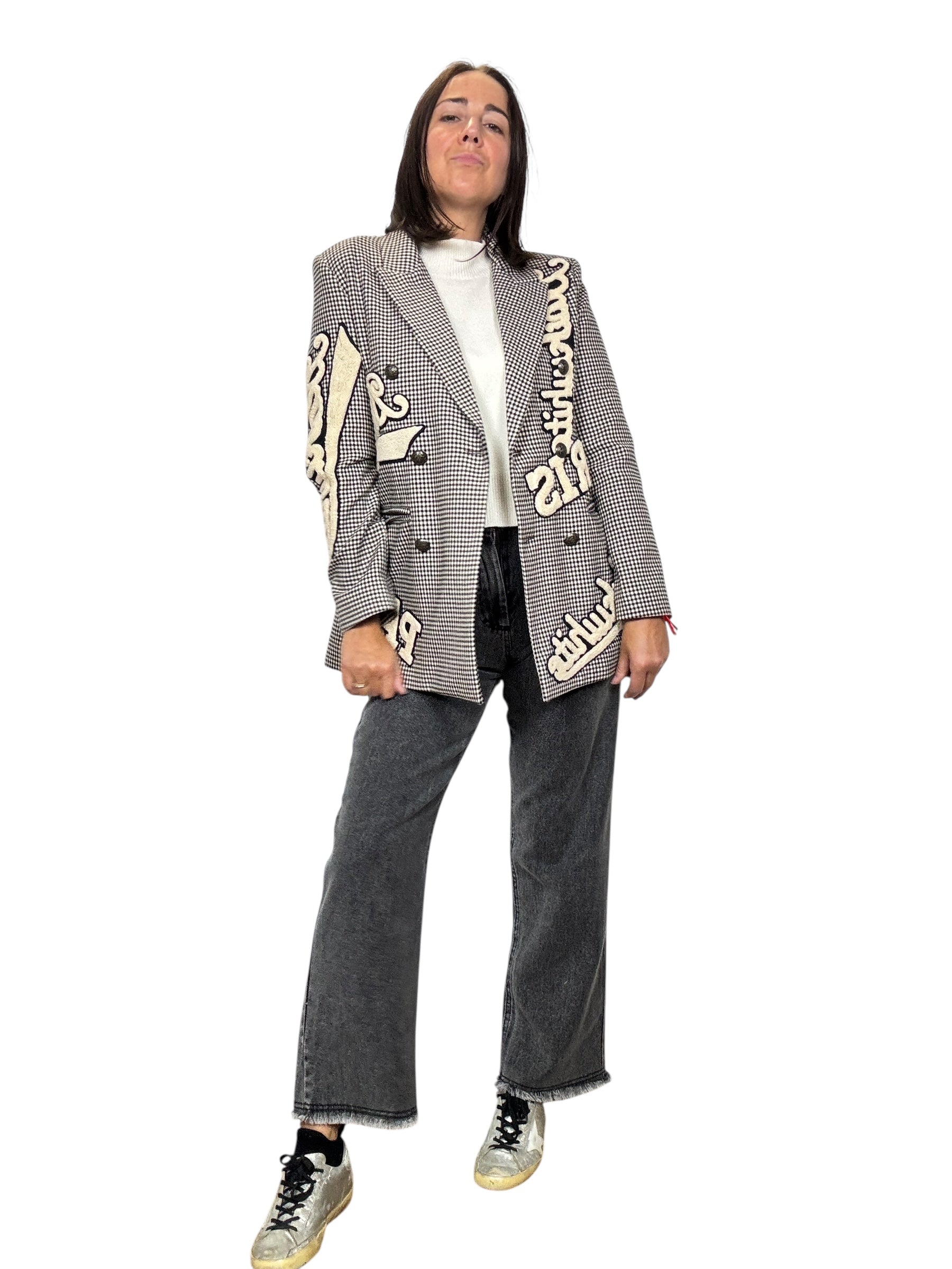 Giacca foderata a doppiopetto con spacchetti sulla schiena. Modello in figura, non elasticizzata (tg in foto S)