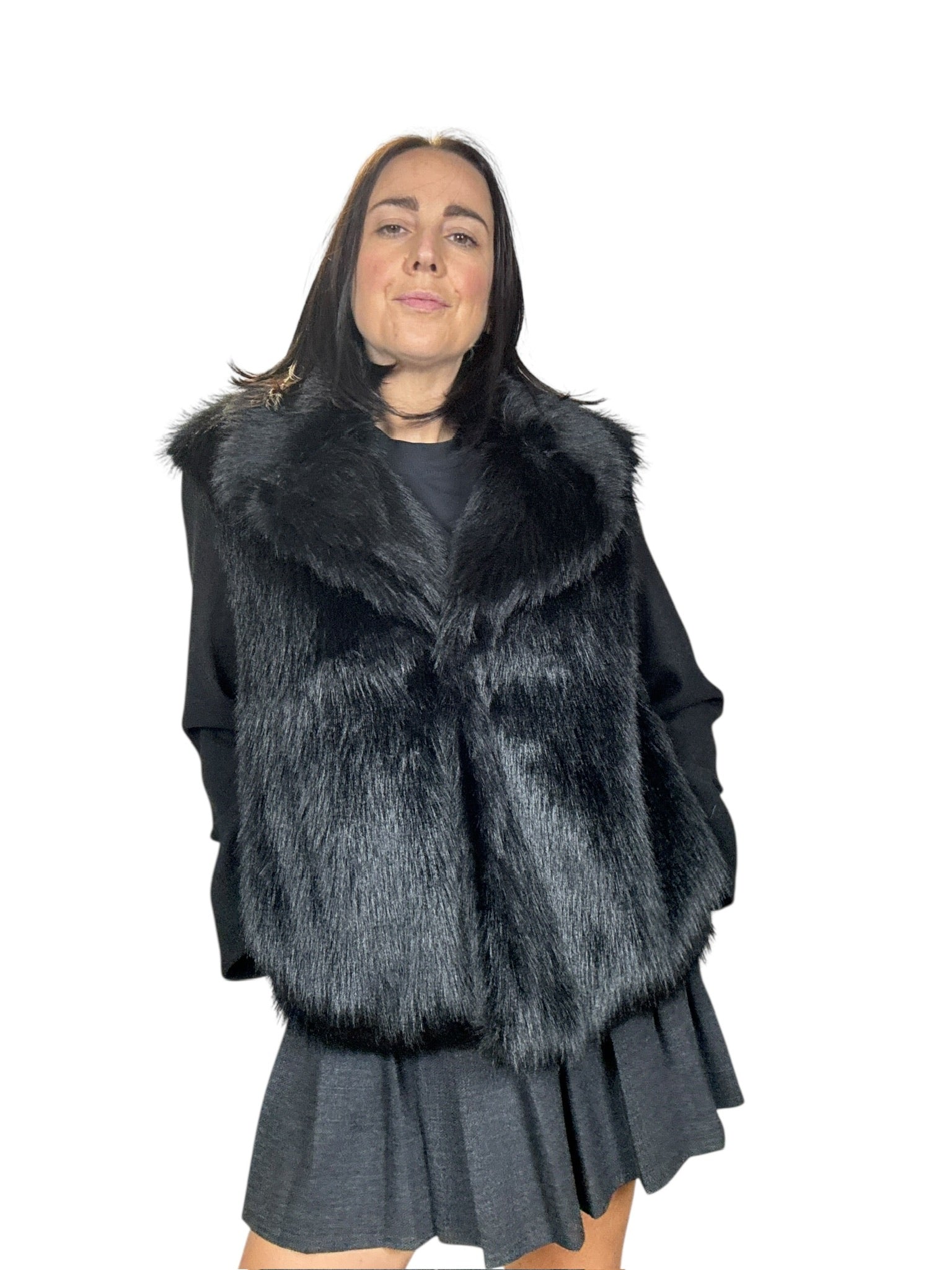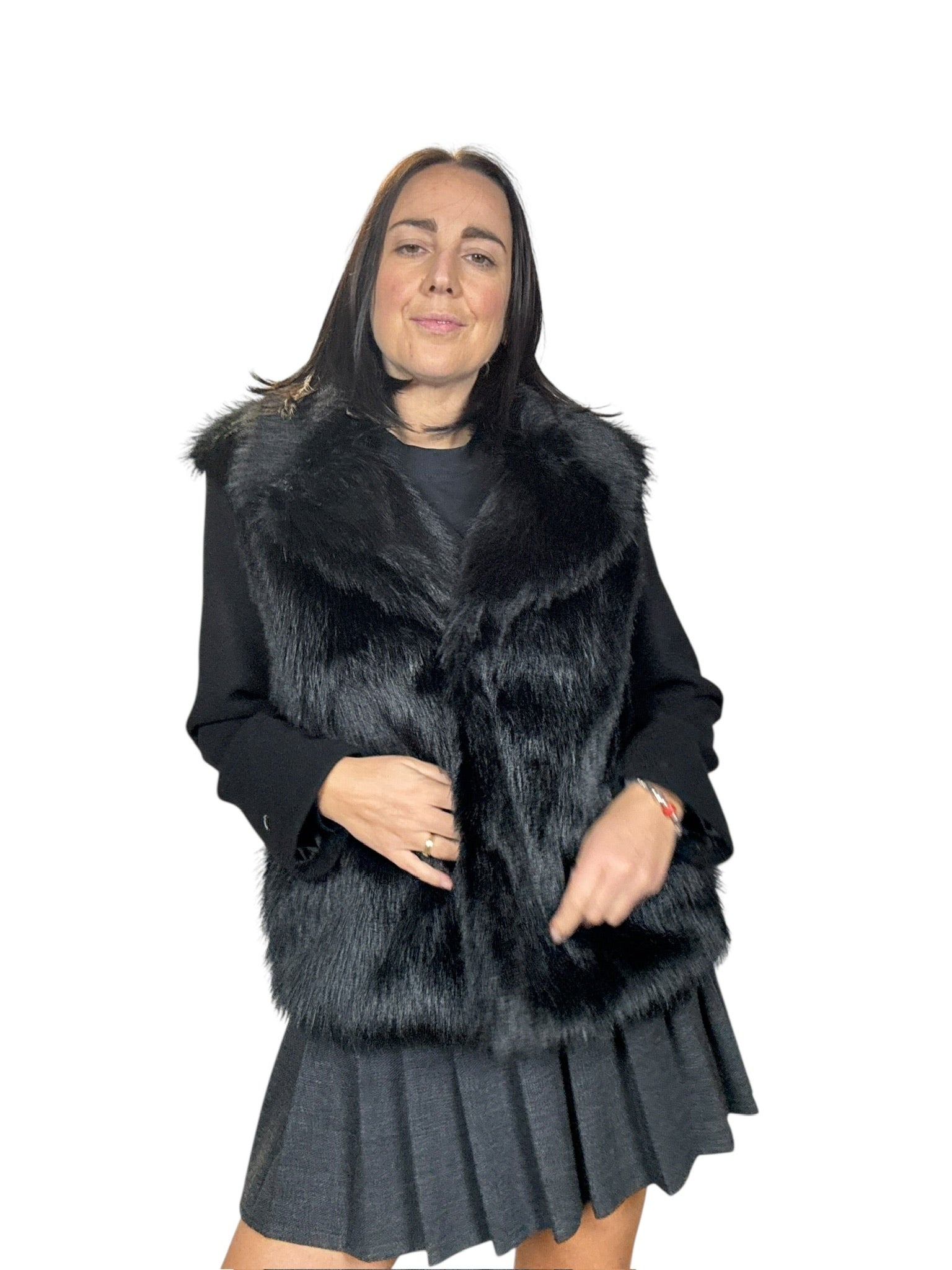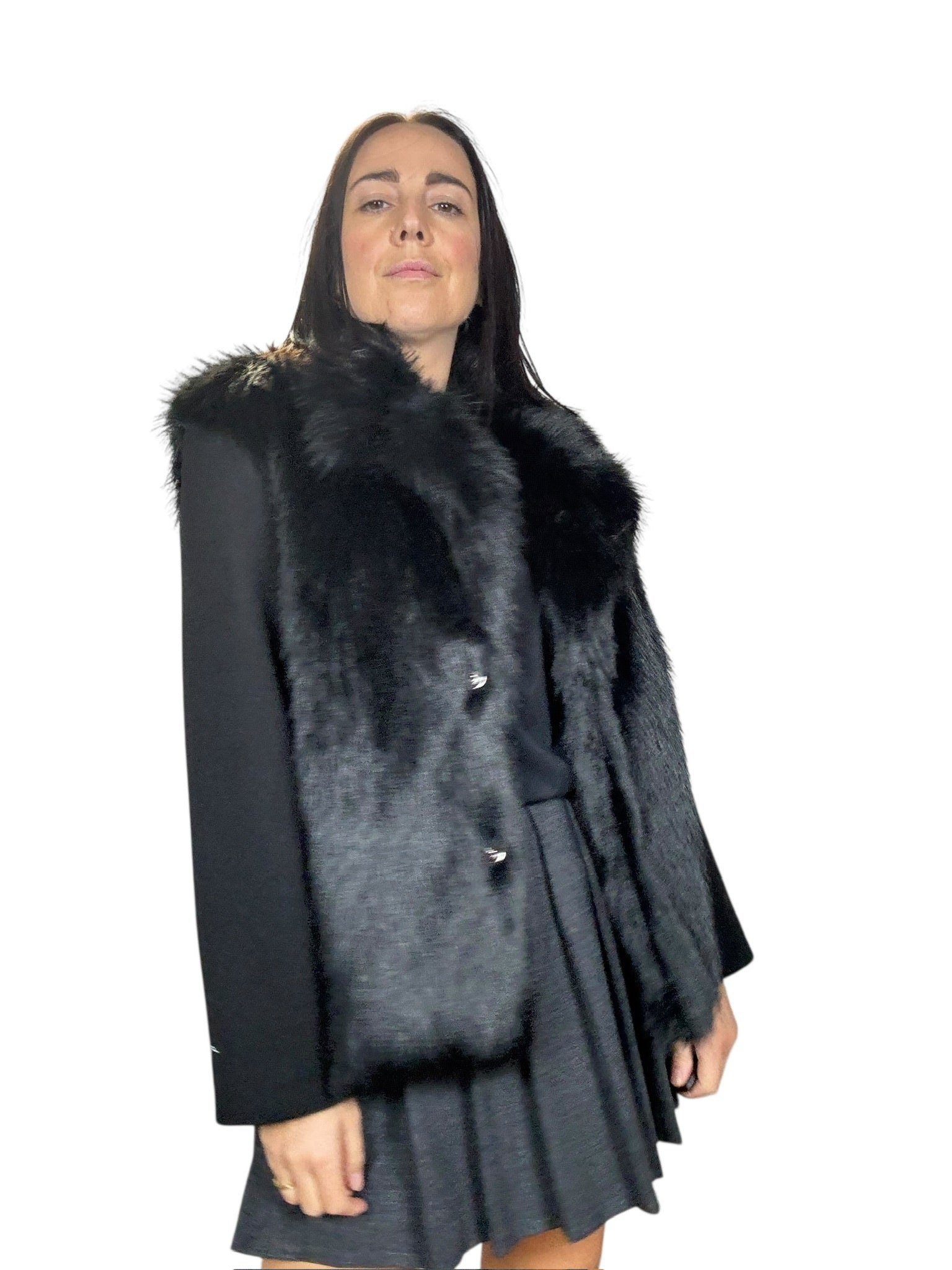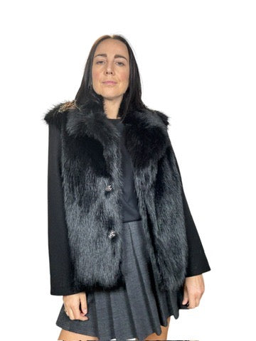 giacca sfoderata con tasche laterali ed inserto in ecopelliccia