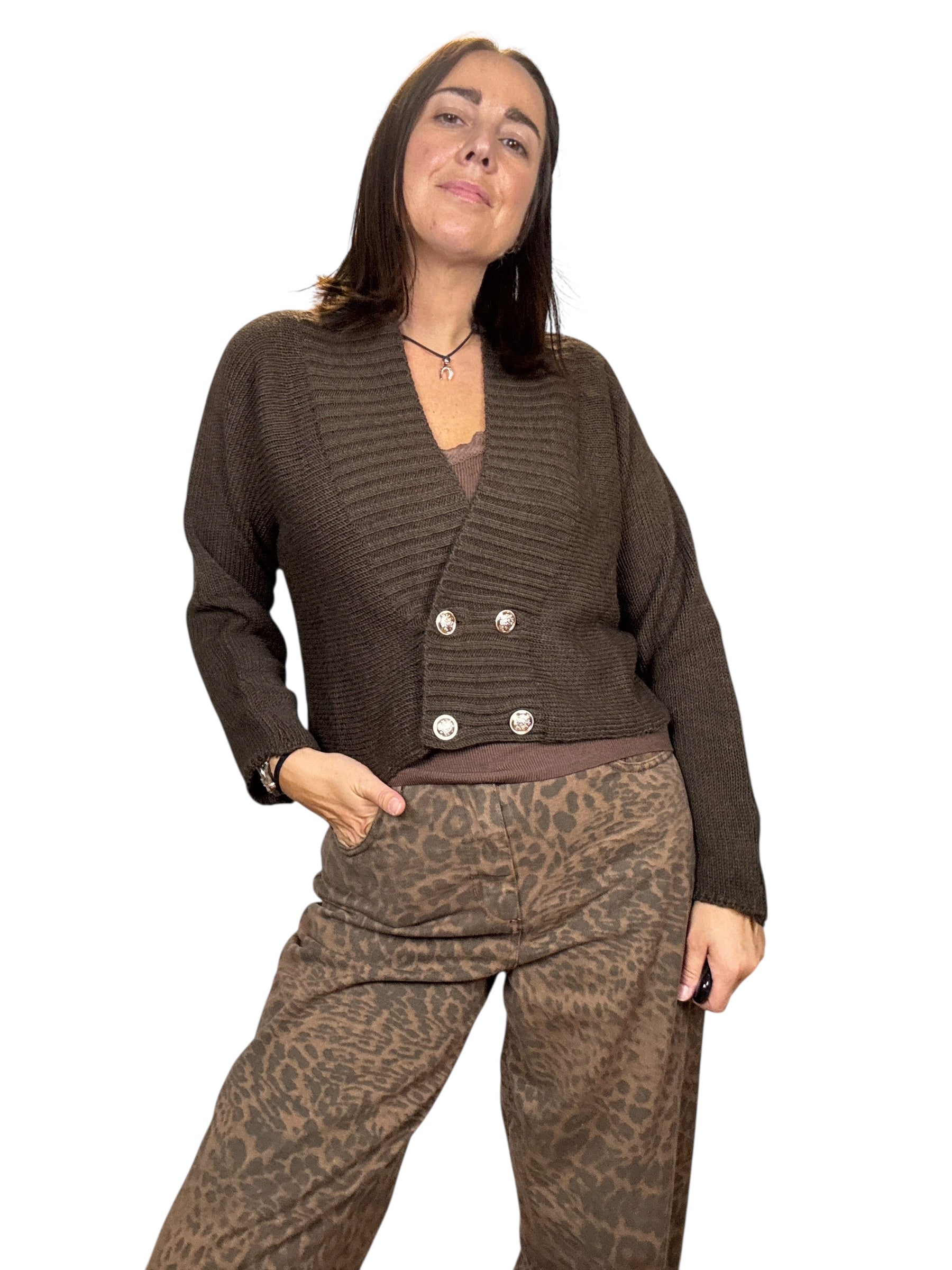 Giacchina cropped in maglia con chiusura a doppiopetto