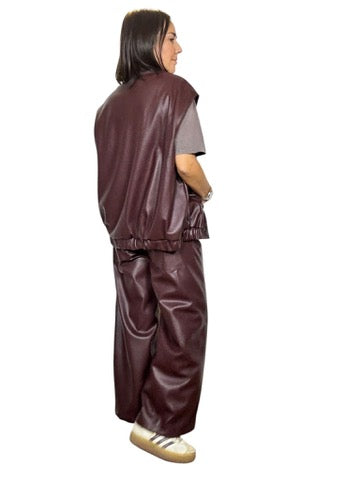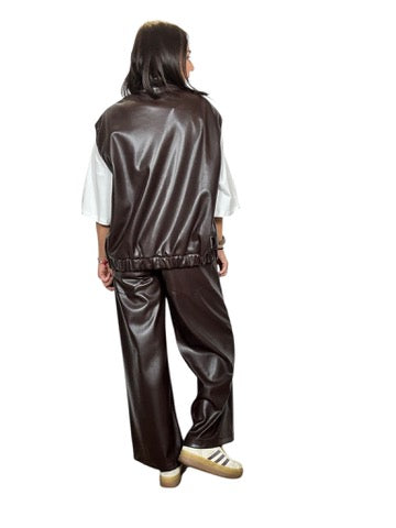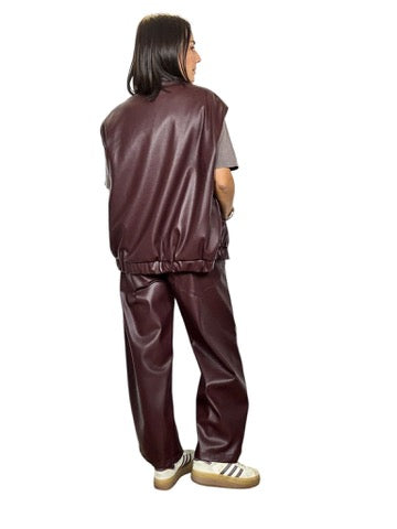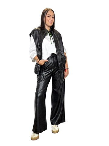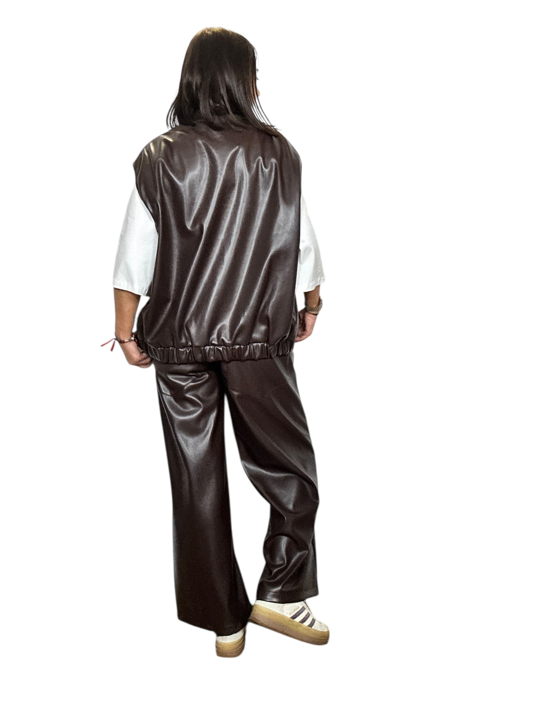 Gilet oversize con tasche laterali e roversino sul fondo. Pantalone e gonna abbinabili
