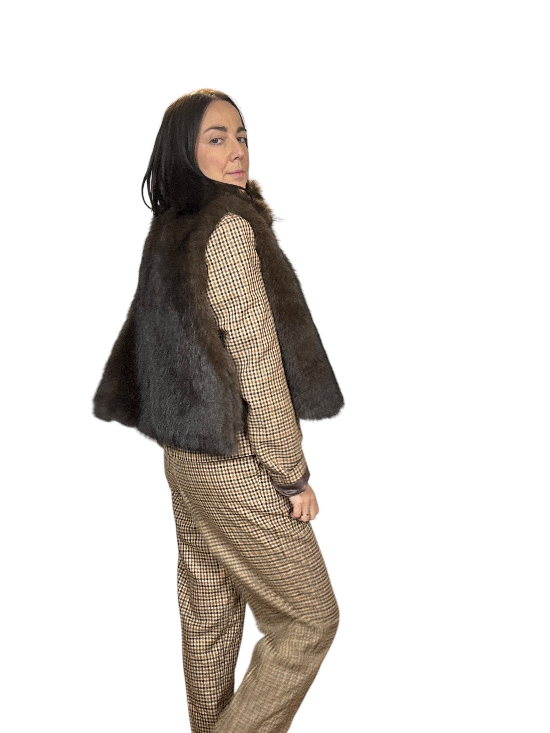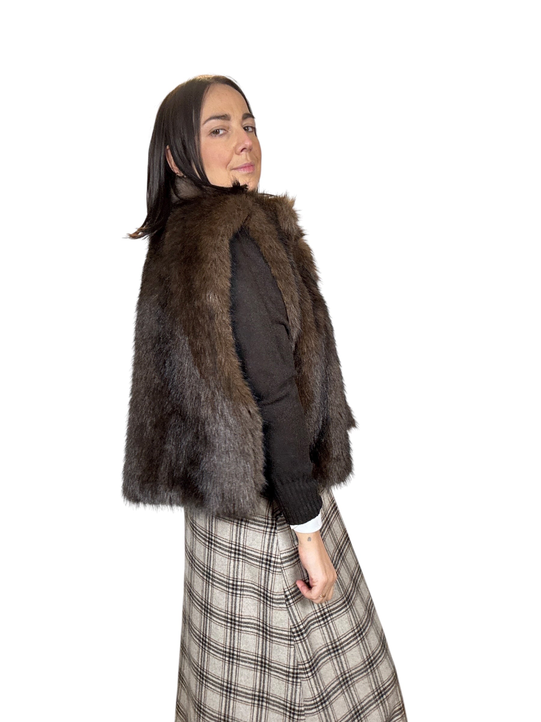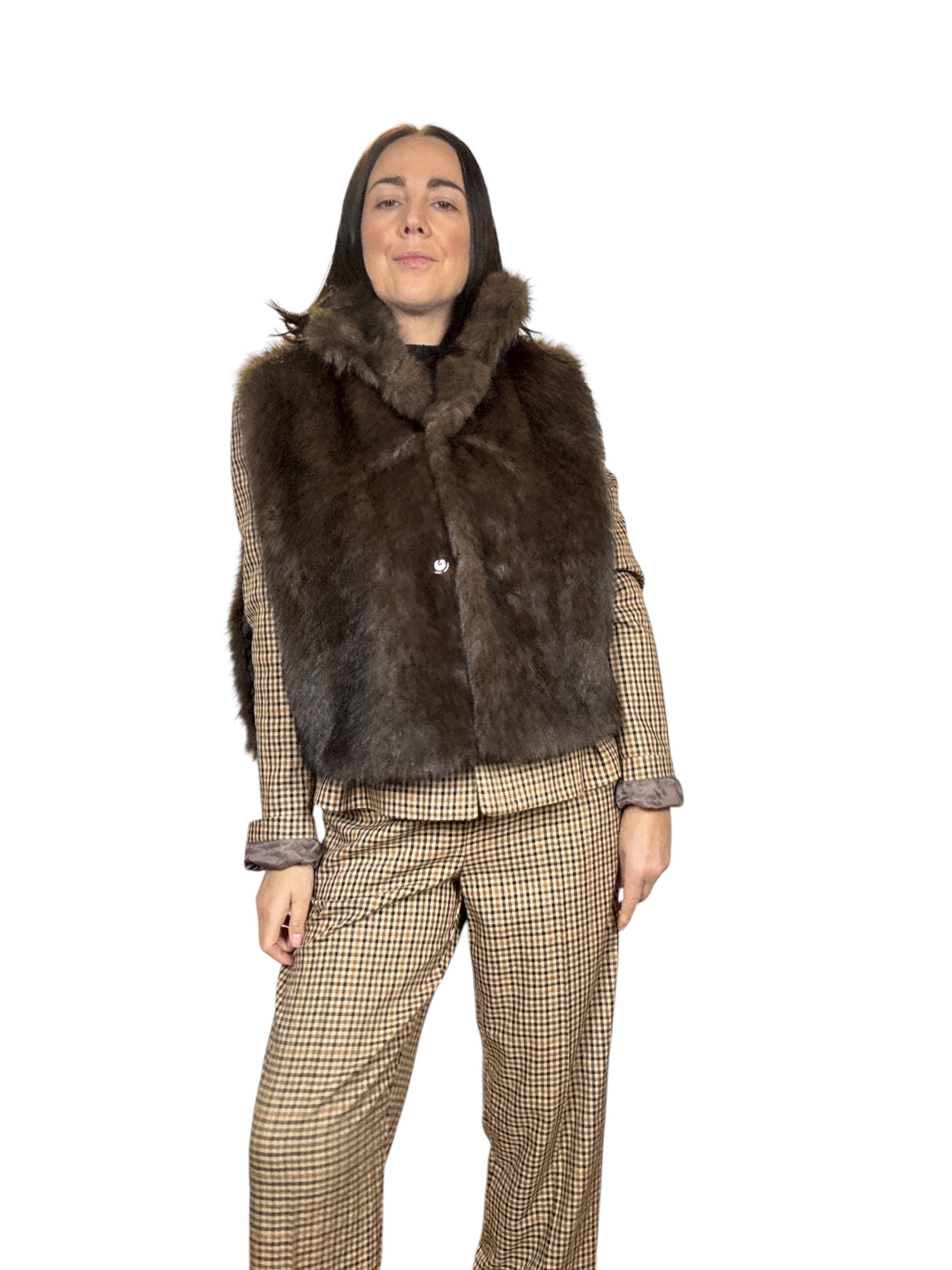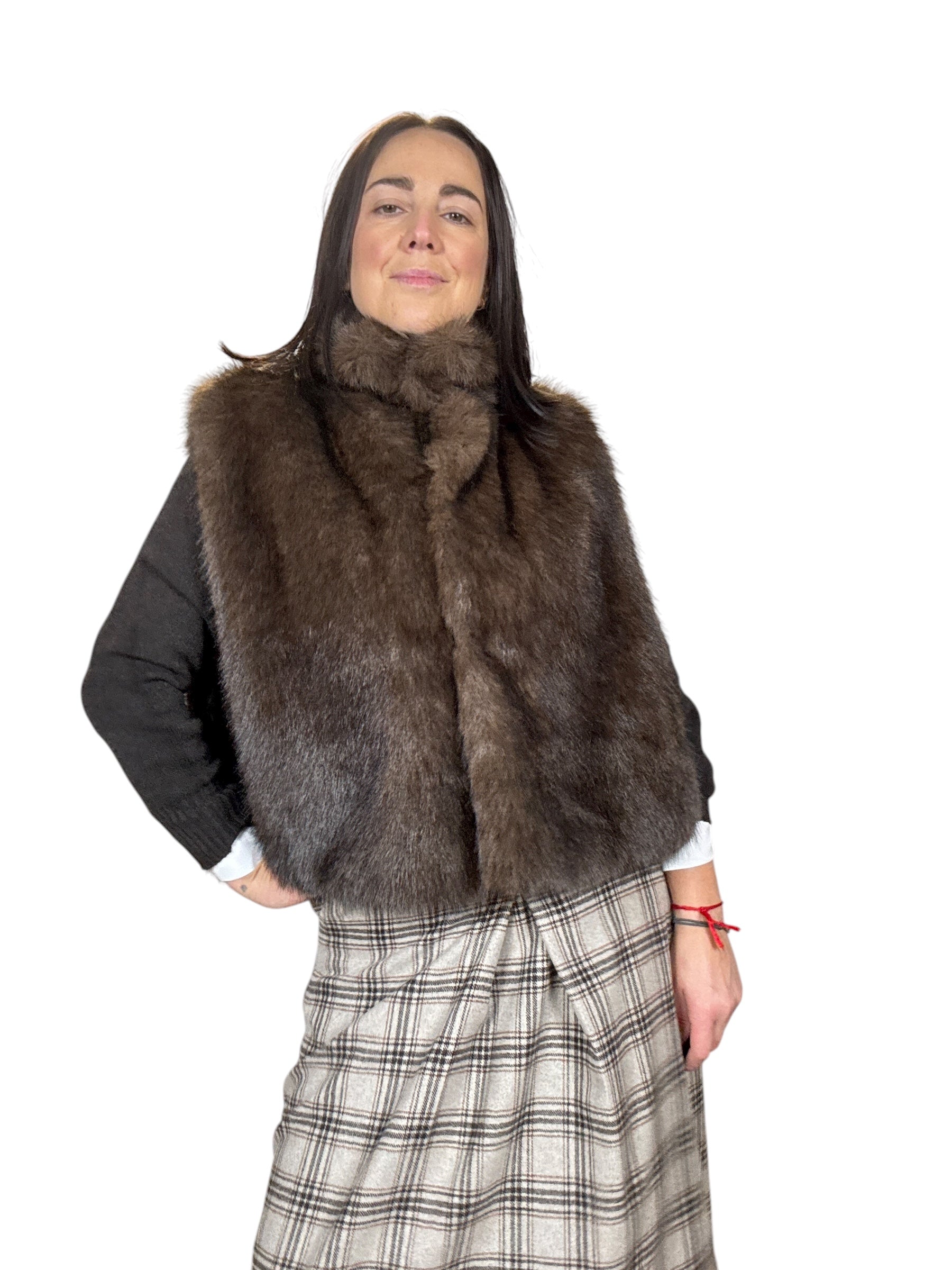 gilet fatto a cappa con bottoni automatici davanti e spacchi laterali