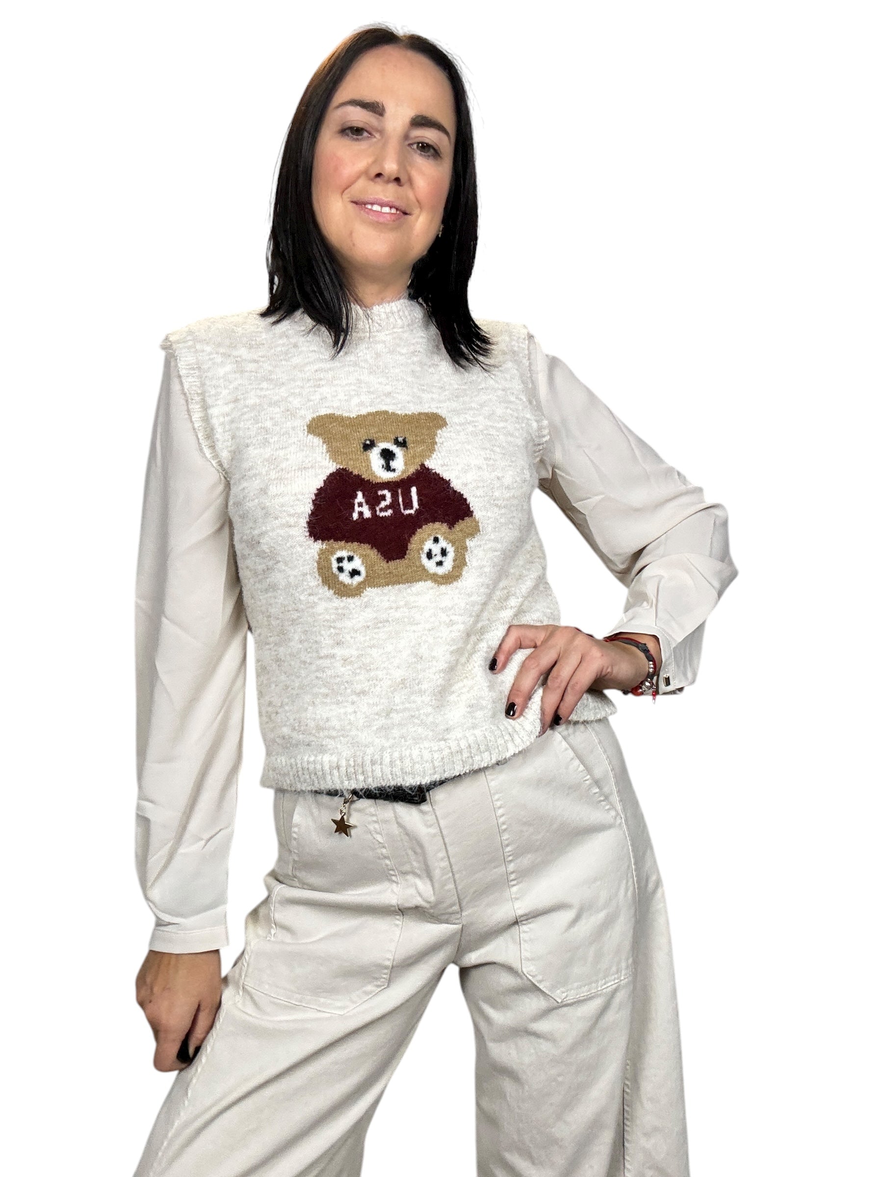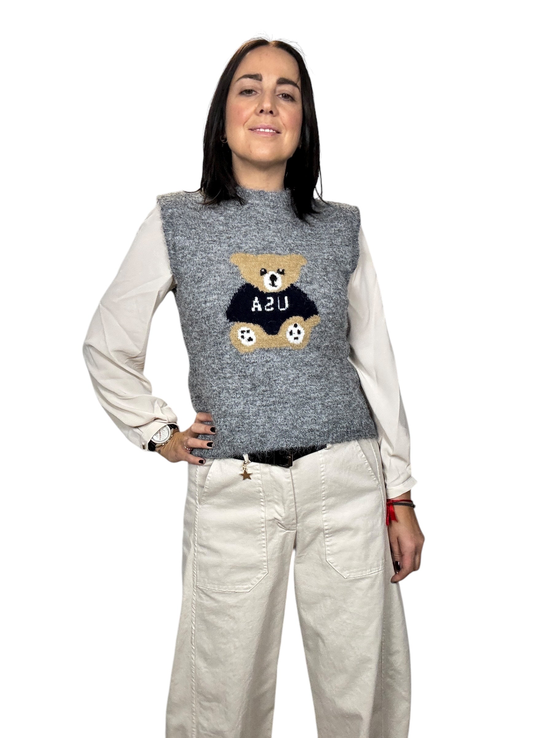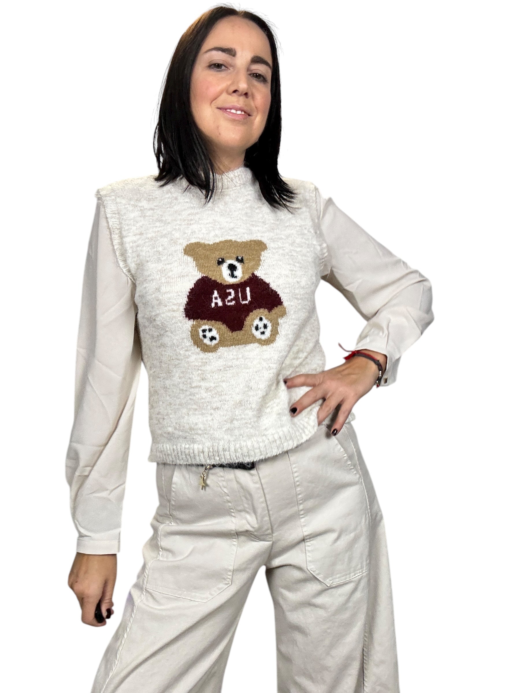 Gilet smanicato con orsetto disegnato
