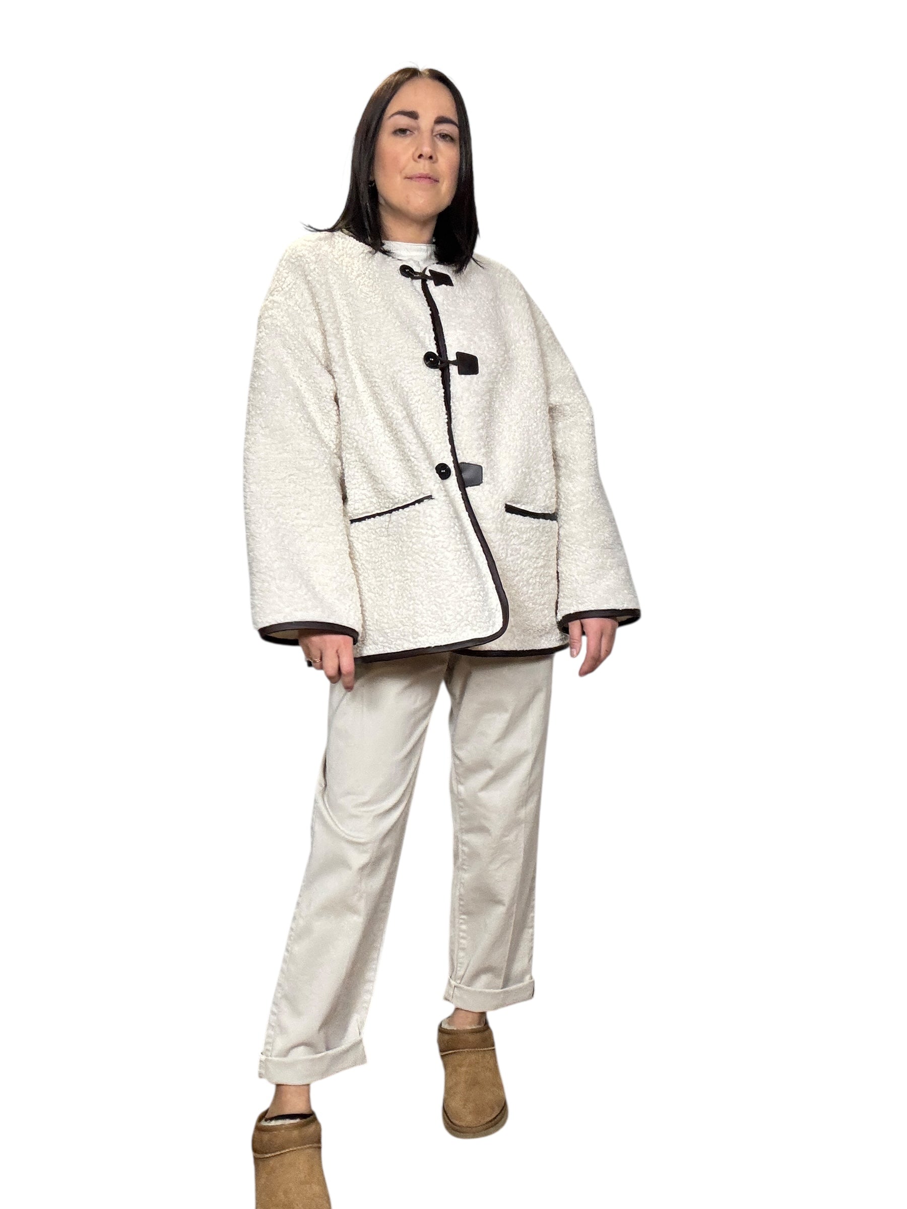 Giubbino sfoderato con tasche laterali e chiusura con alamari. Fit oversize