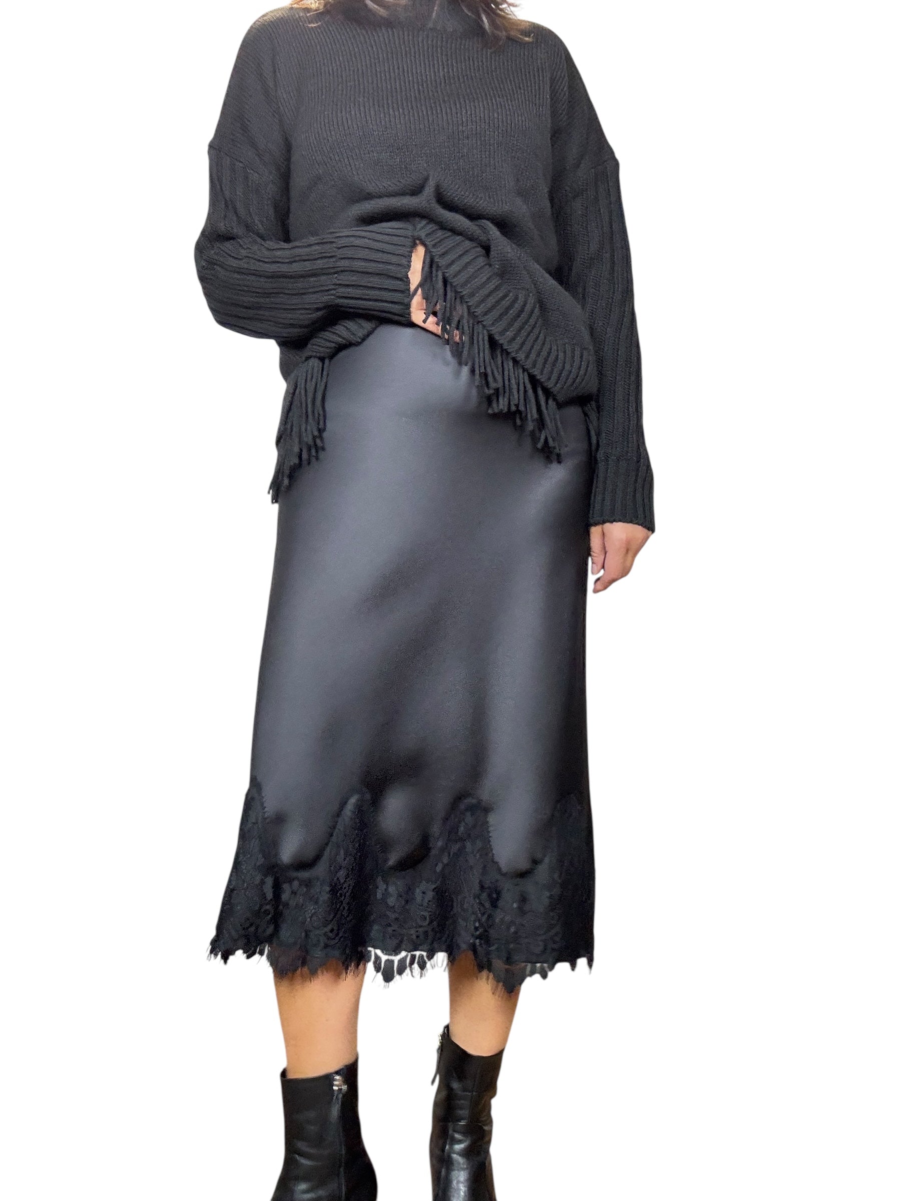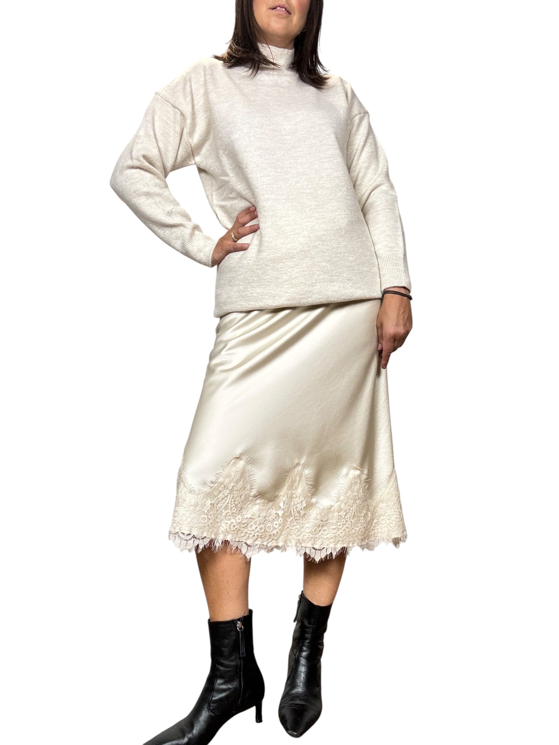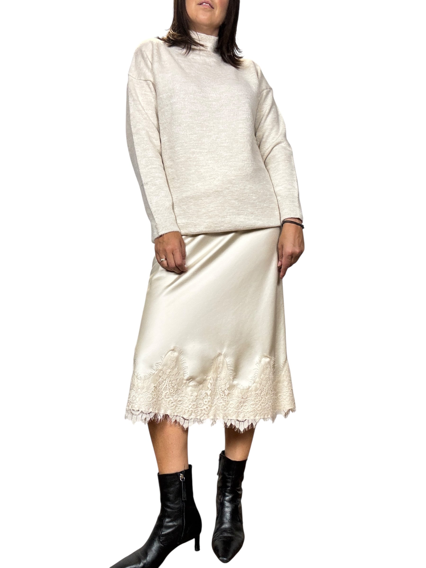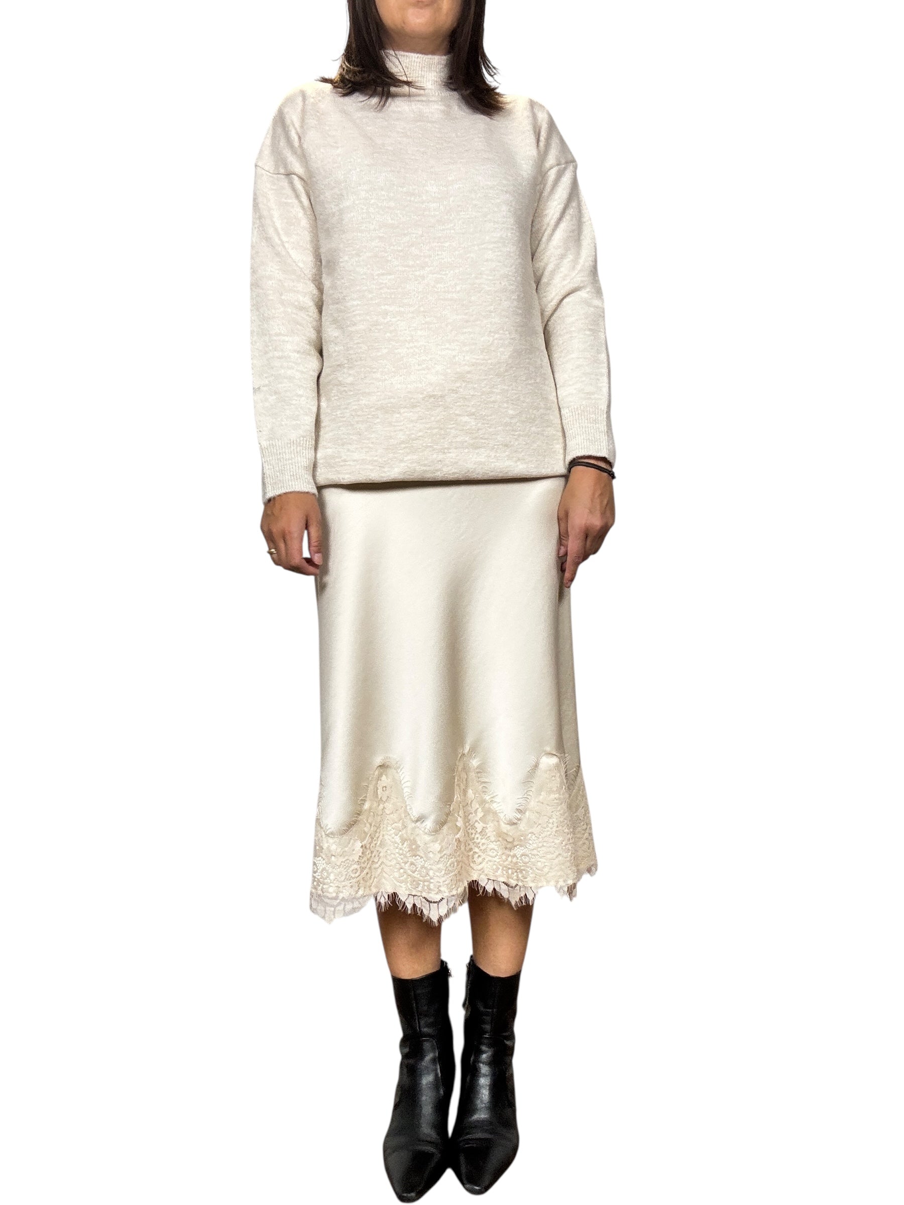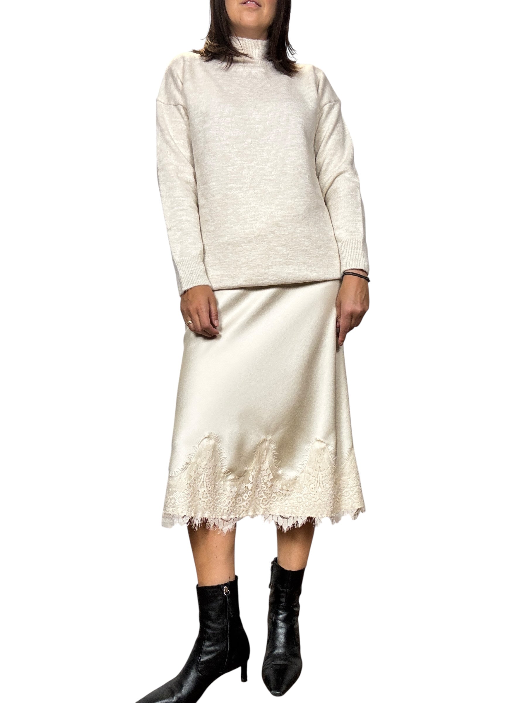 Gonna a vita alta con elastico in cintura con inserto in pizzo sul fondo