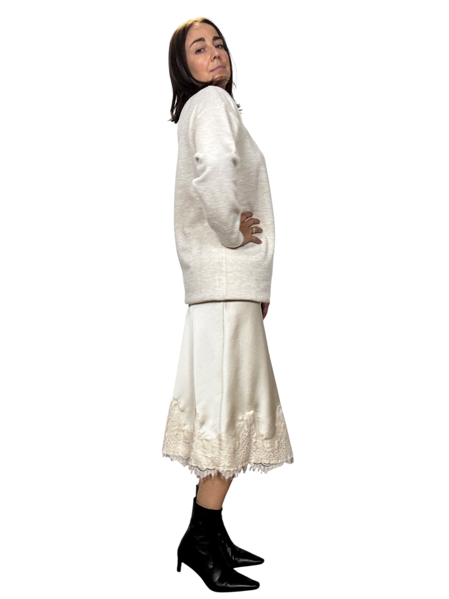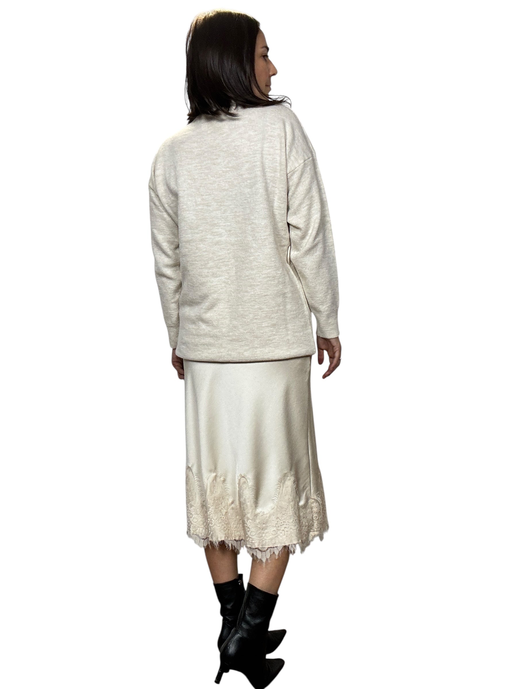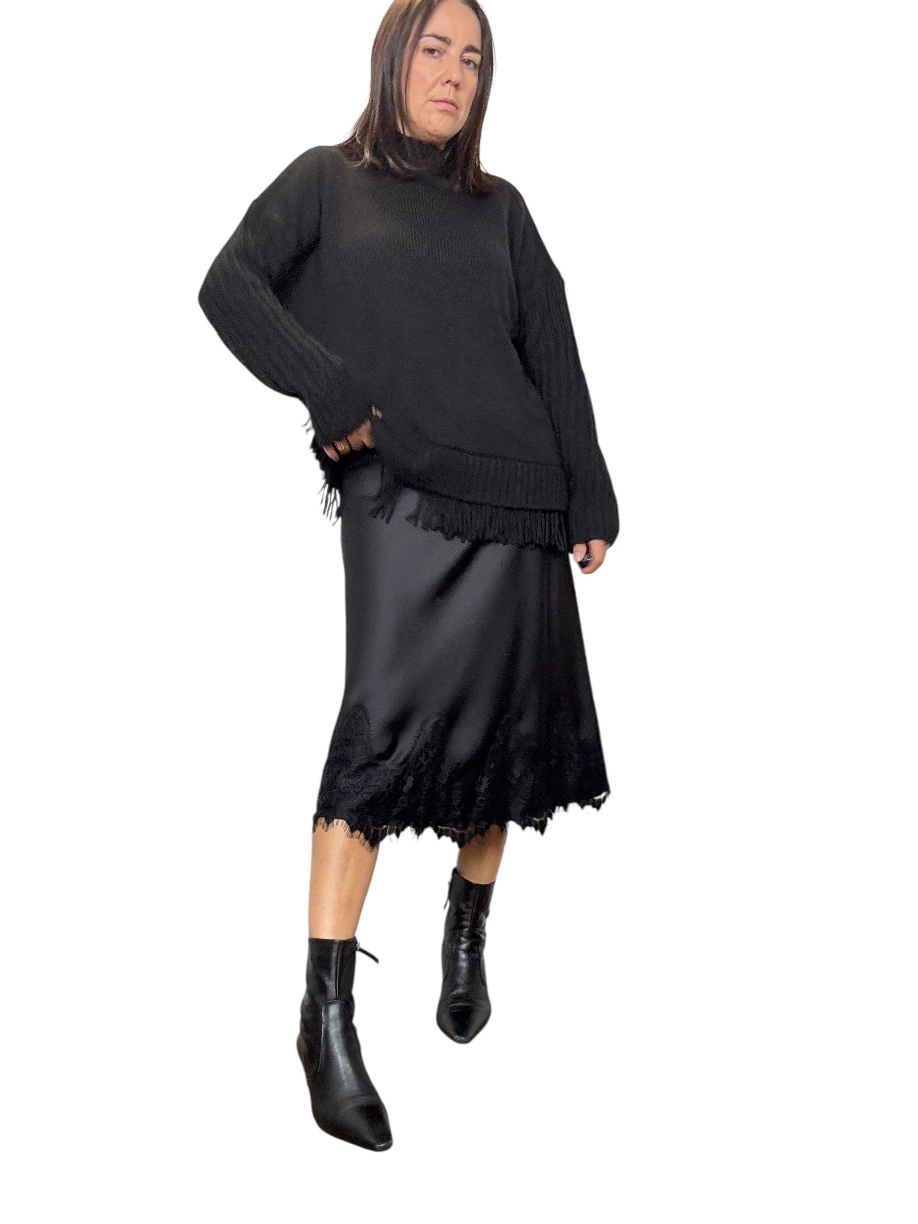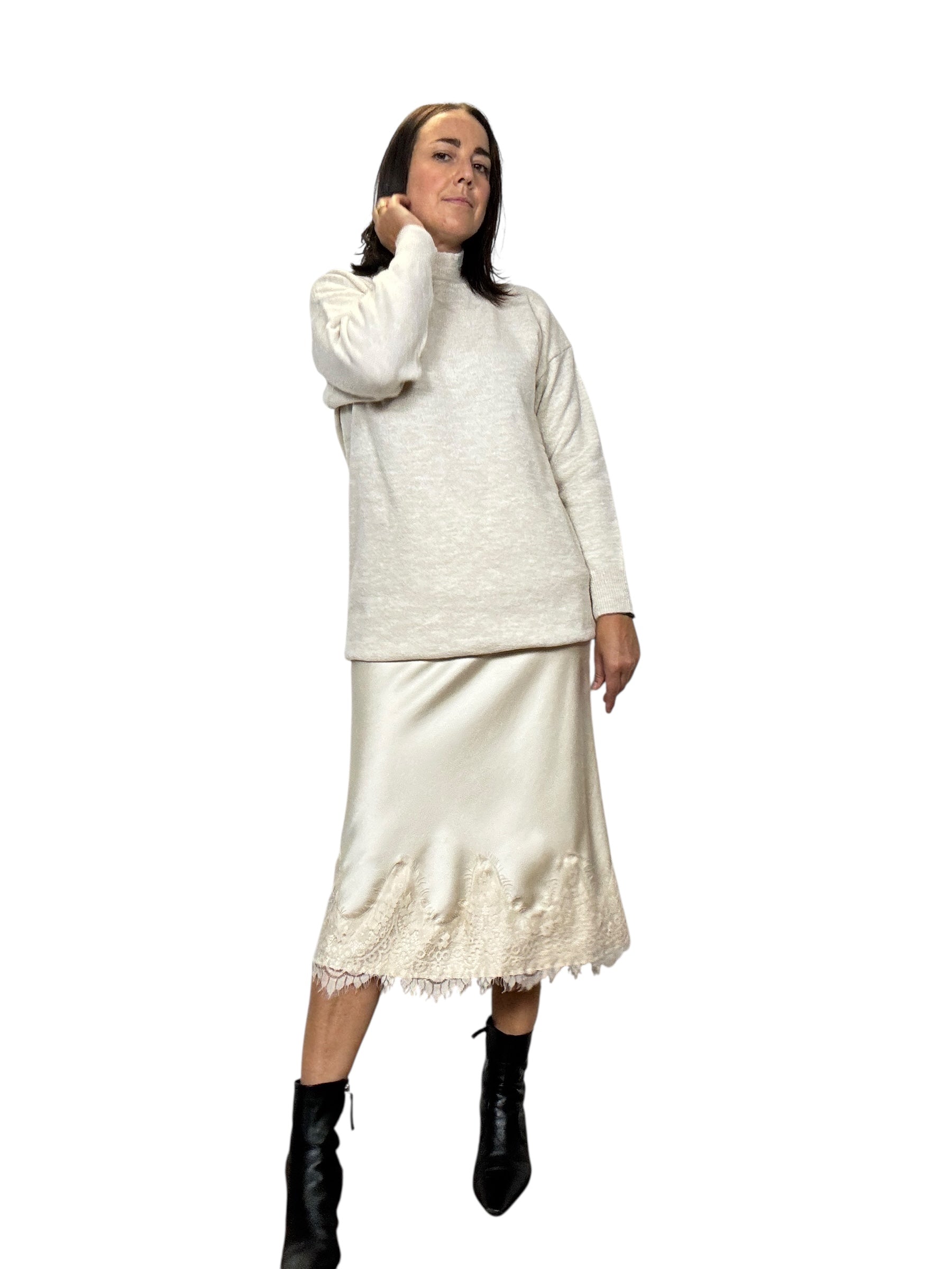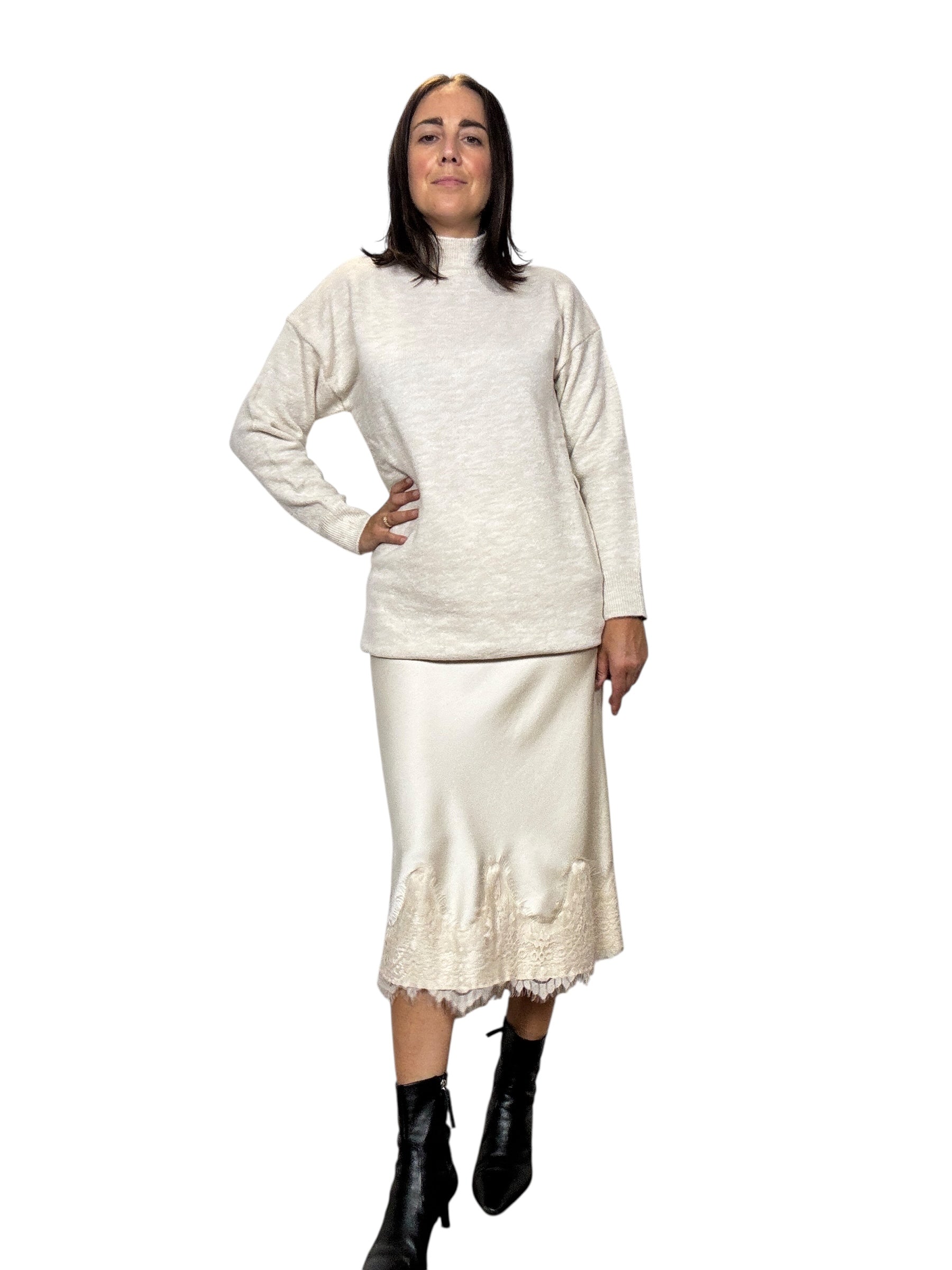 Gonna a vita alta con elastico in cintura con inserto in pizzo sul fondo