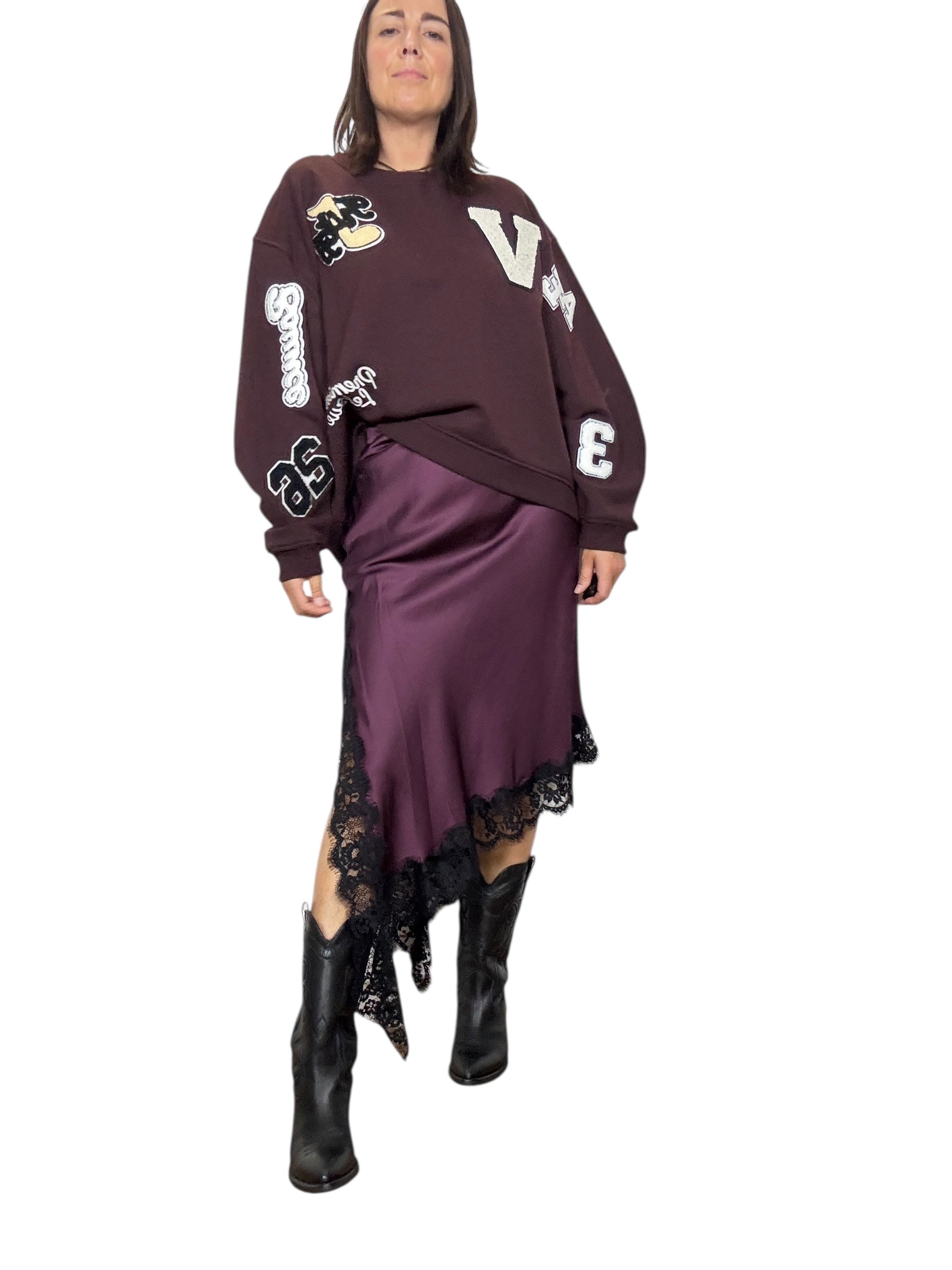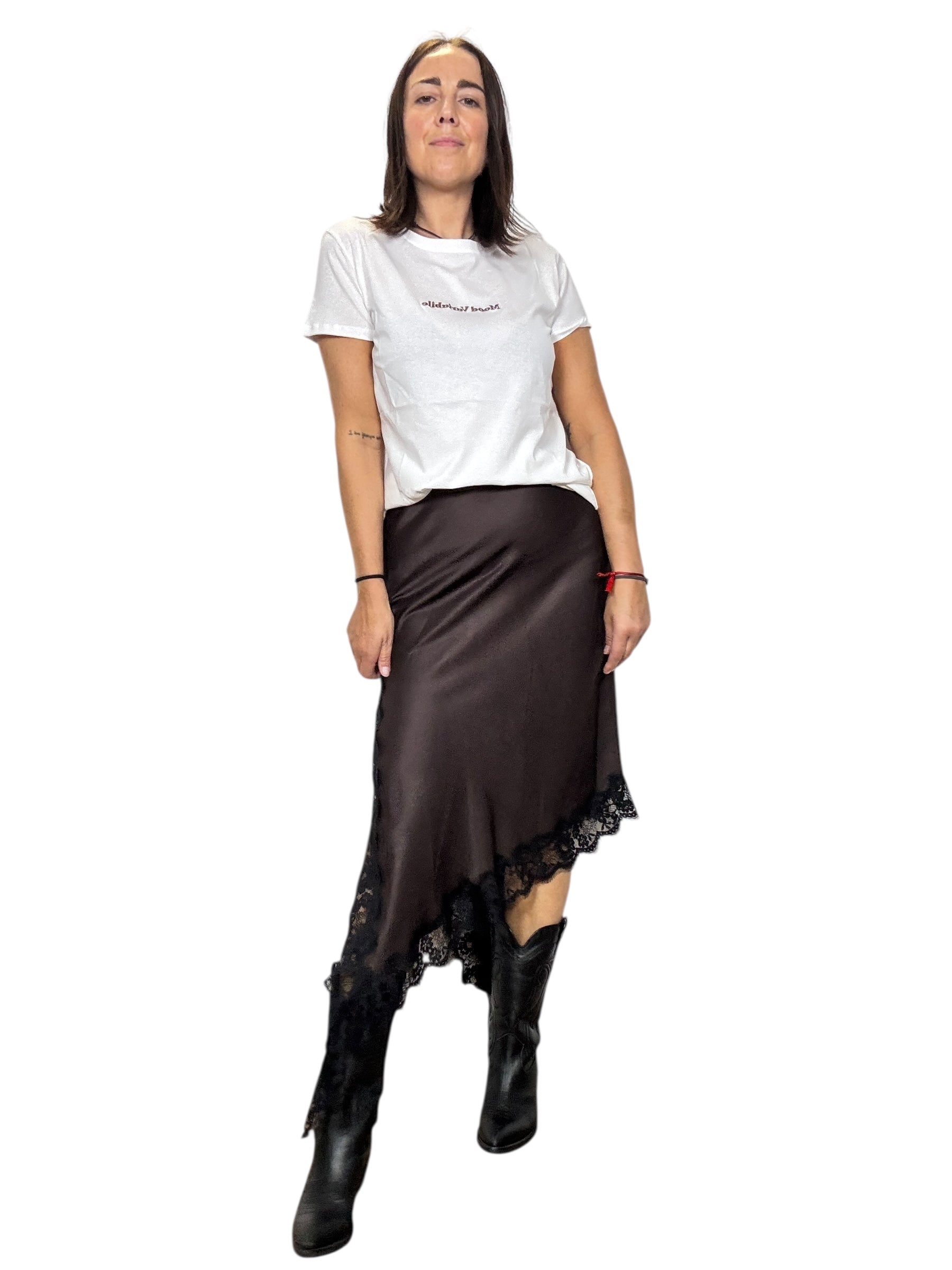 Gonna a vita alta con elastico in cintura e spacco laterale con inserto in pizzo ( tg in foto S)