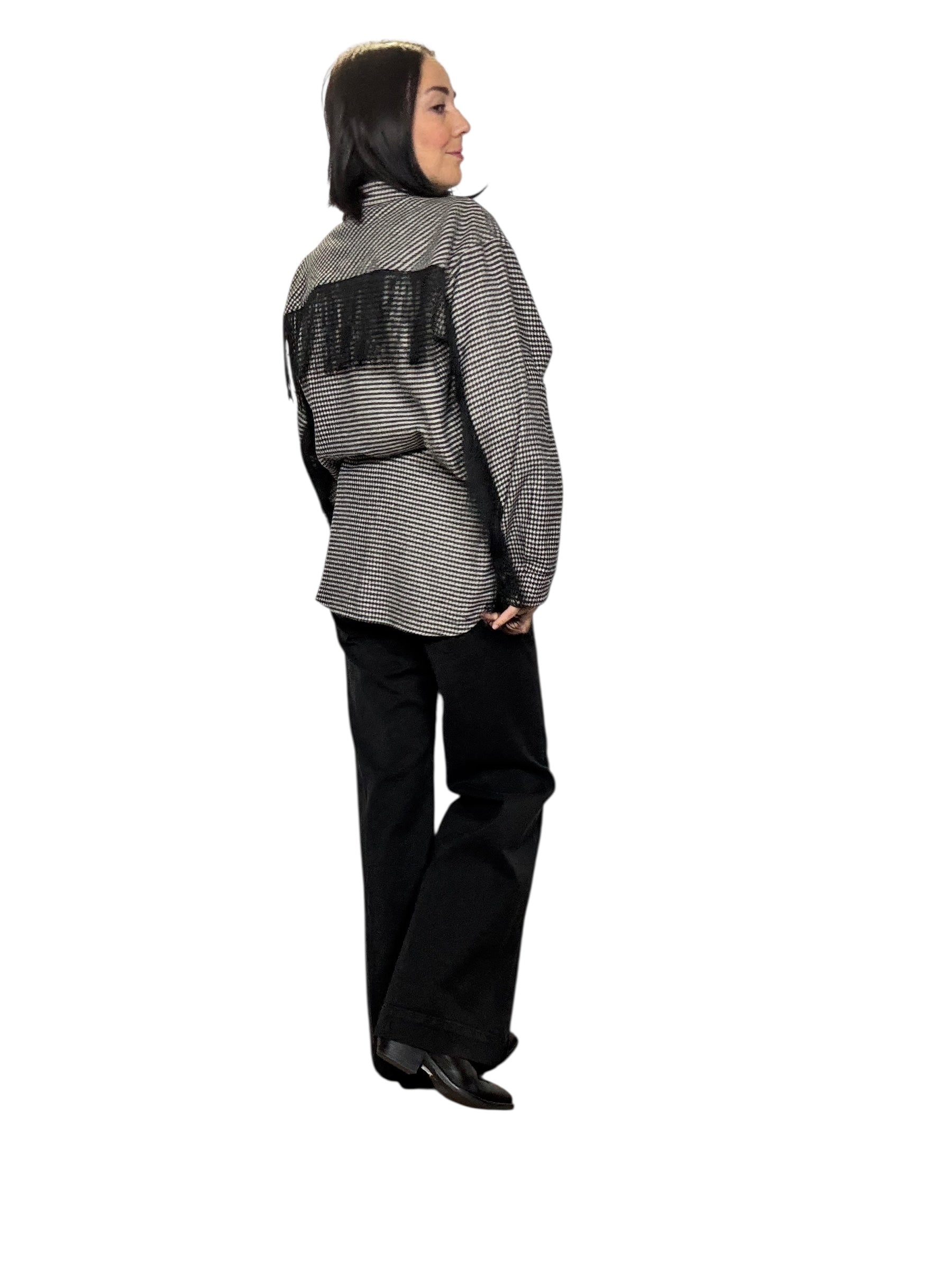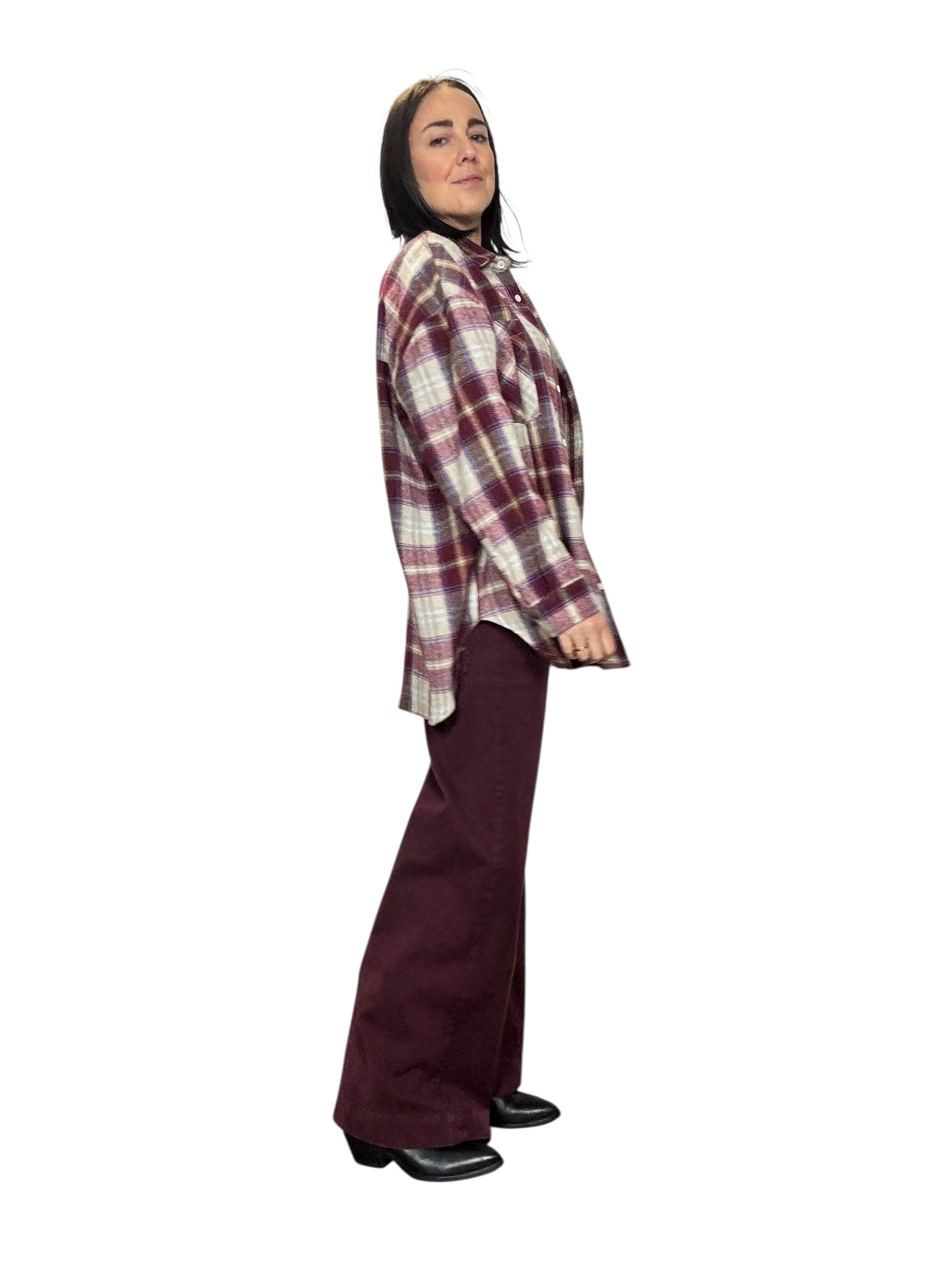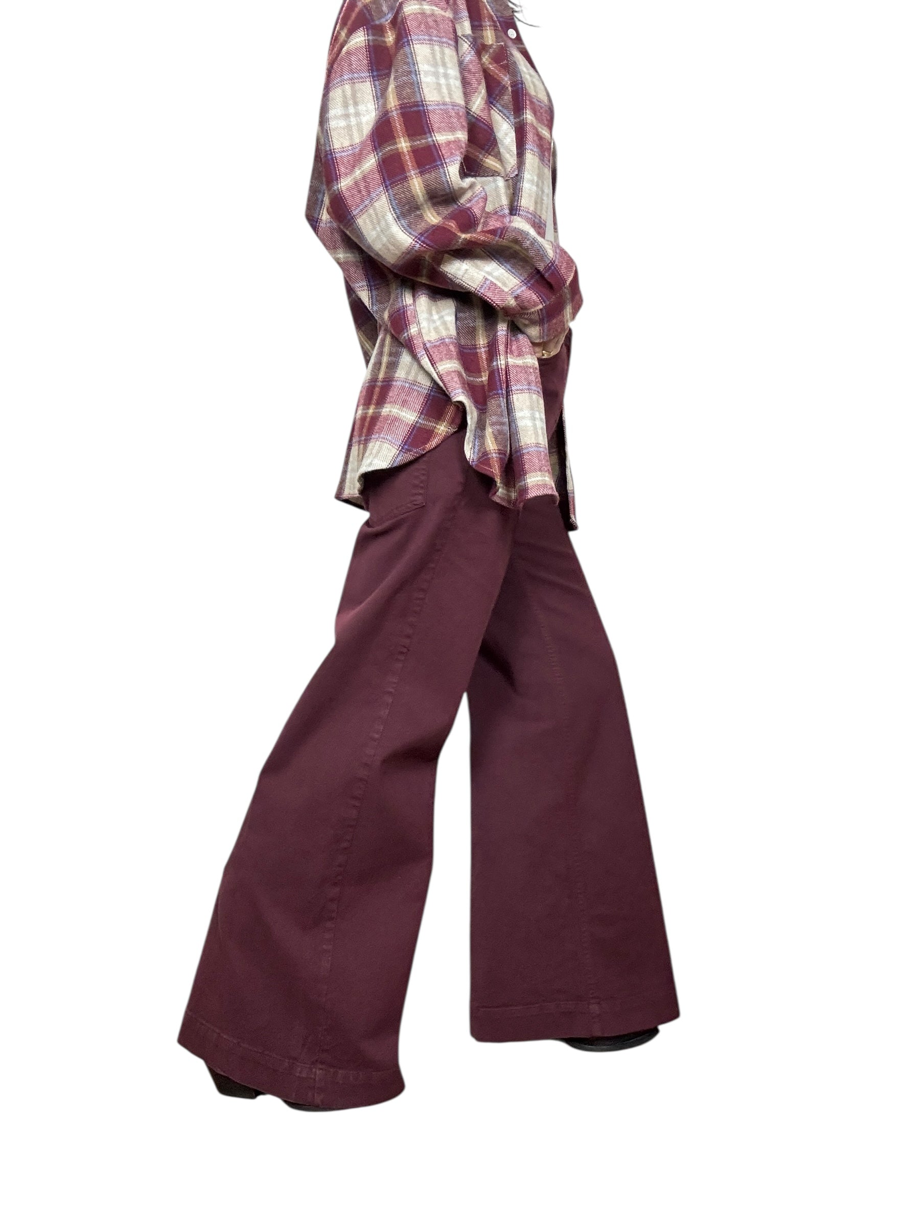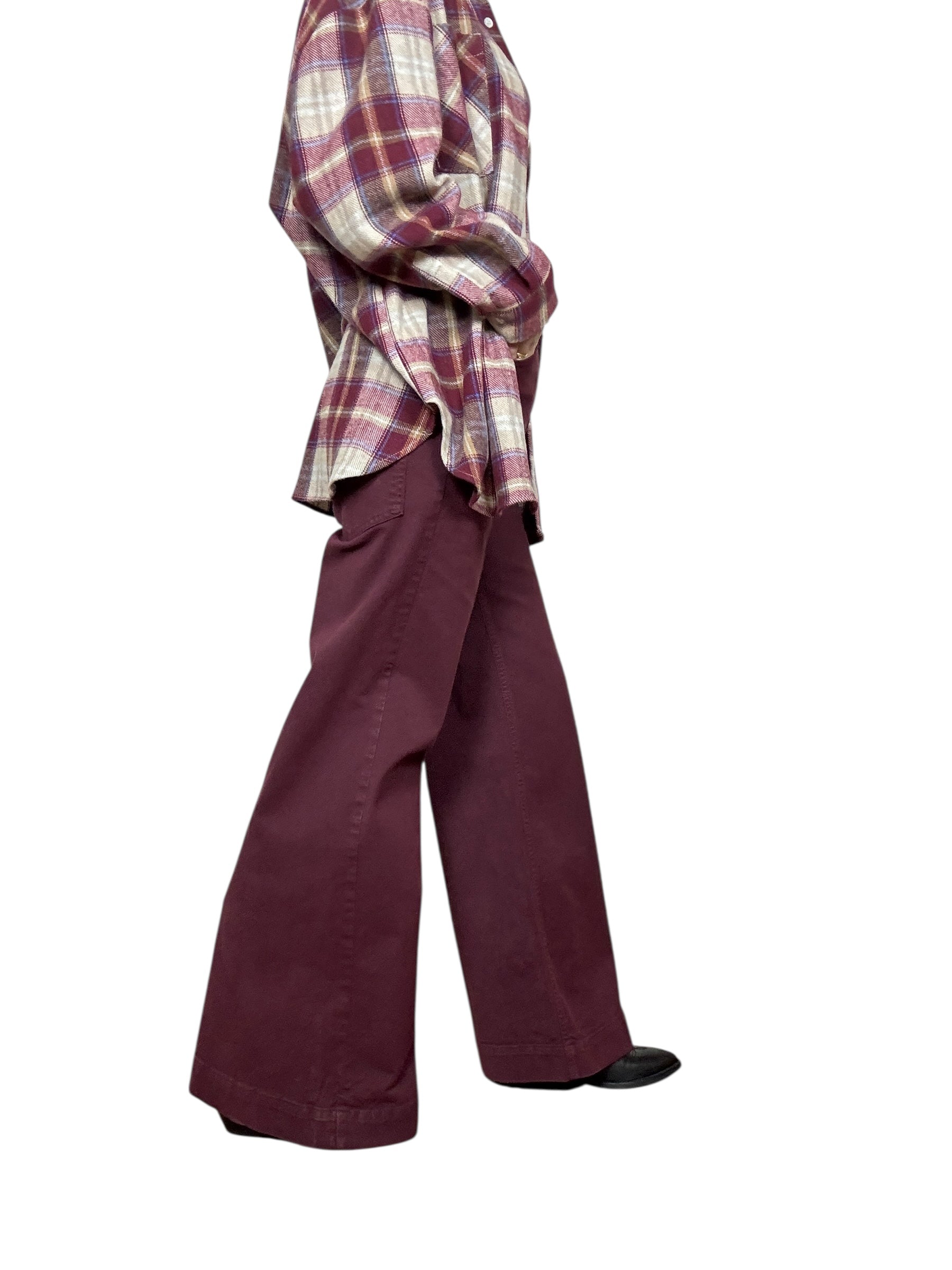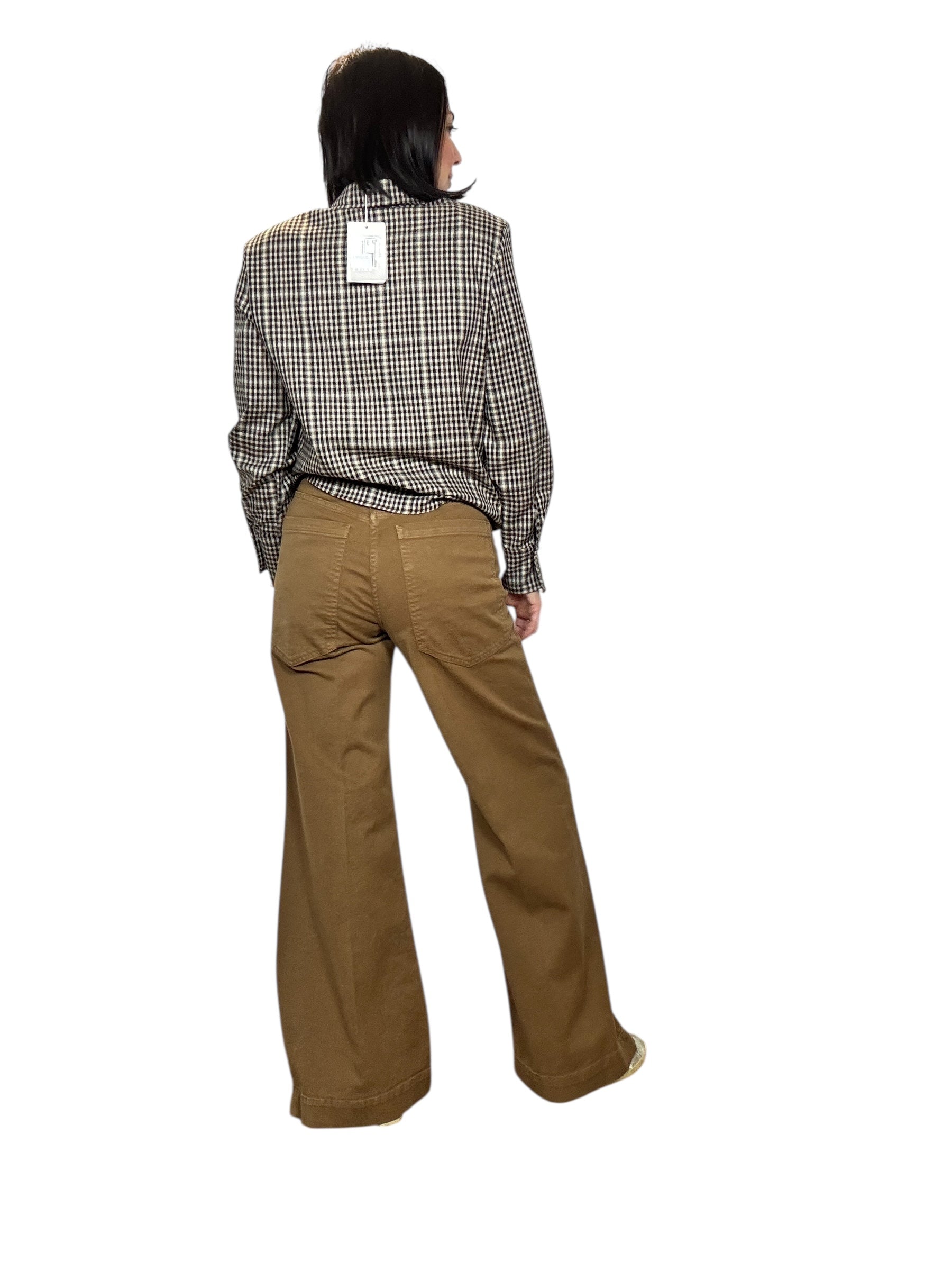 Jeans a vita alta con tasche laterali e posteriori, chiusura con zip e bottone frontale. Modello a palazzo elasticizzato (tg in foto 42)