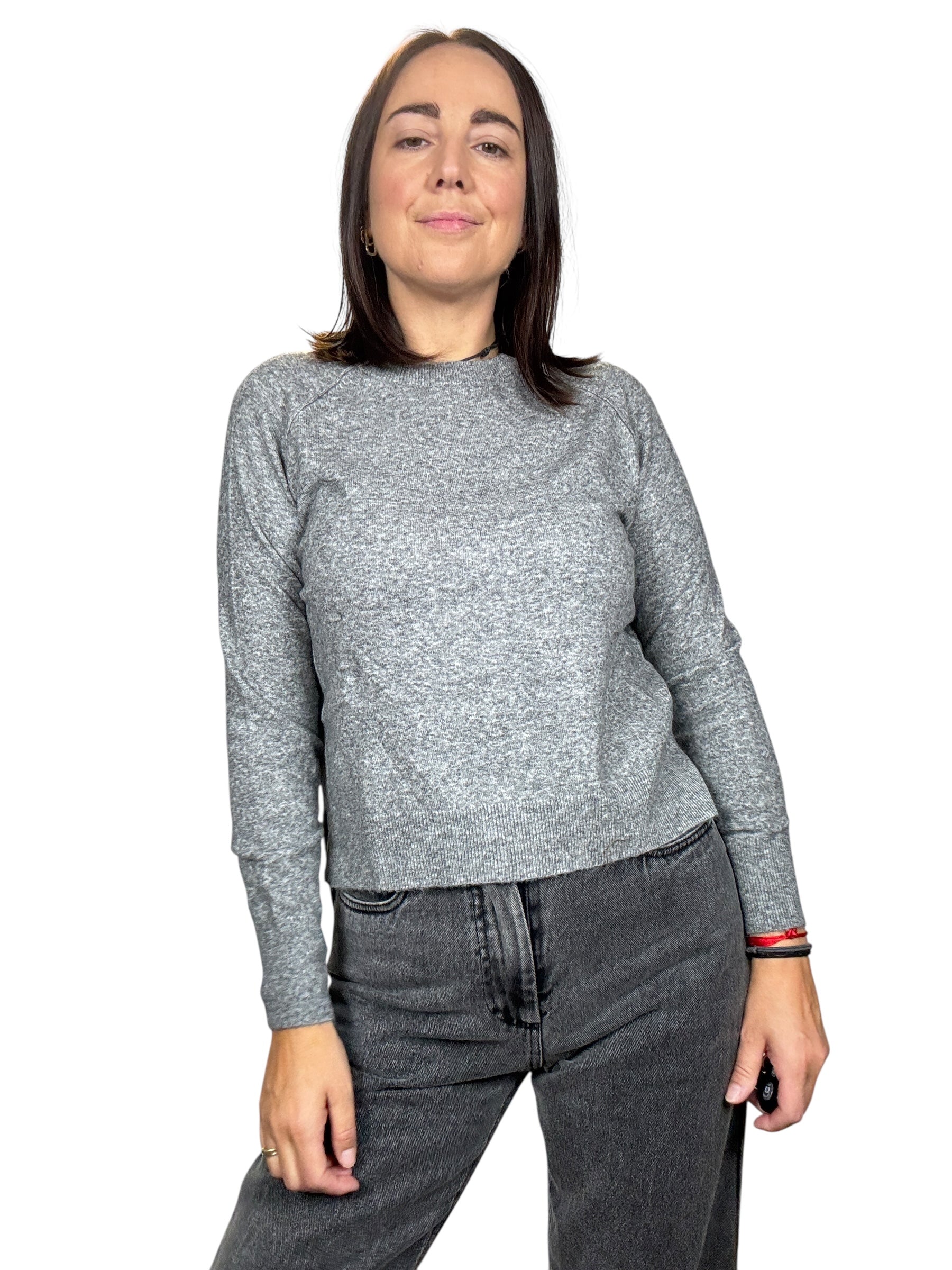 Maglia paricollo a manica lunga con spacchetti laterali