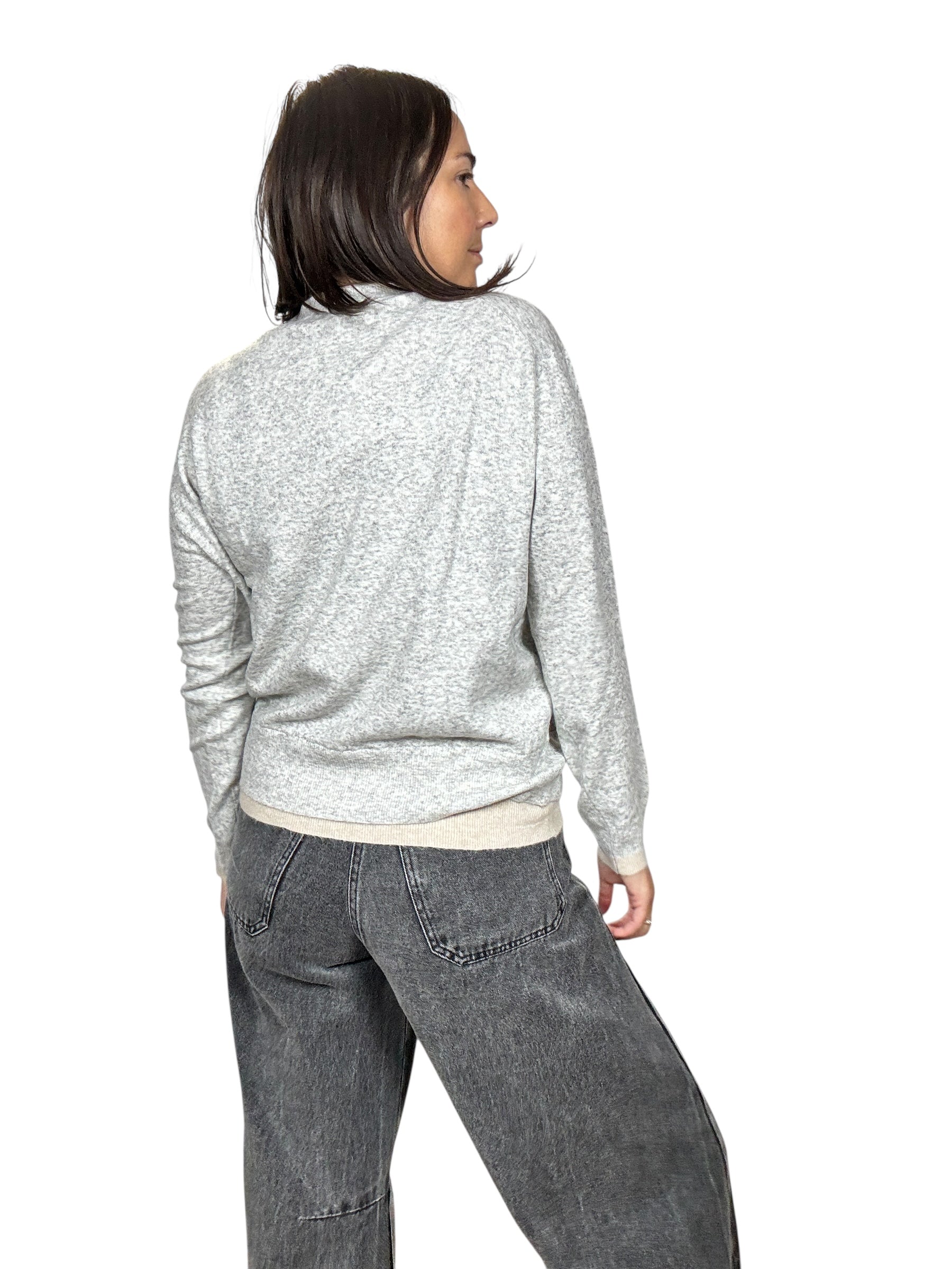maglia girocollo a manica lunga con doppio collo in contrasto colore e spacchetto frontale con inserto. Fit regular