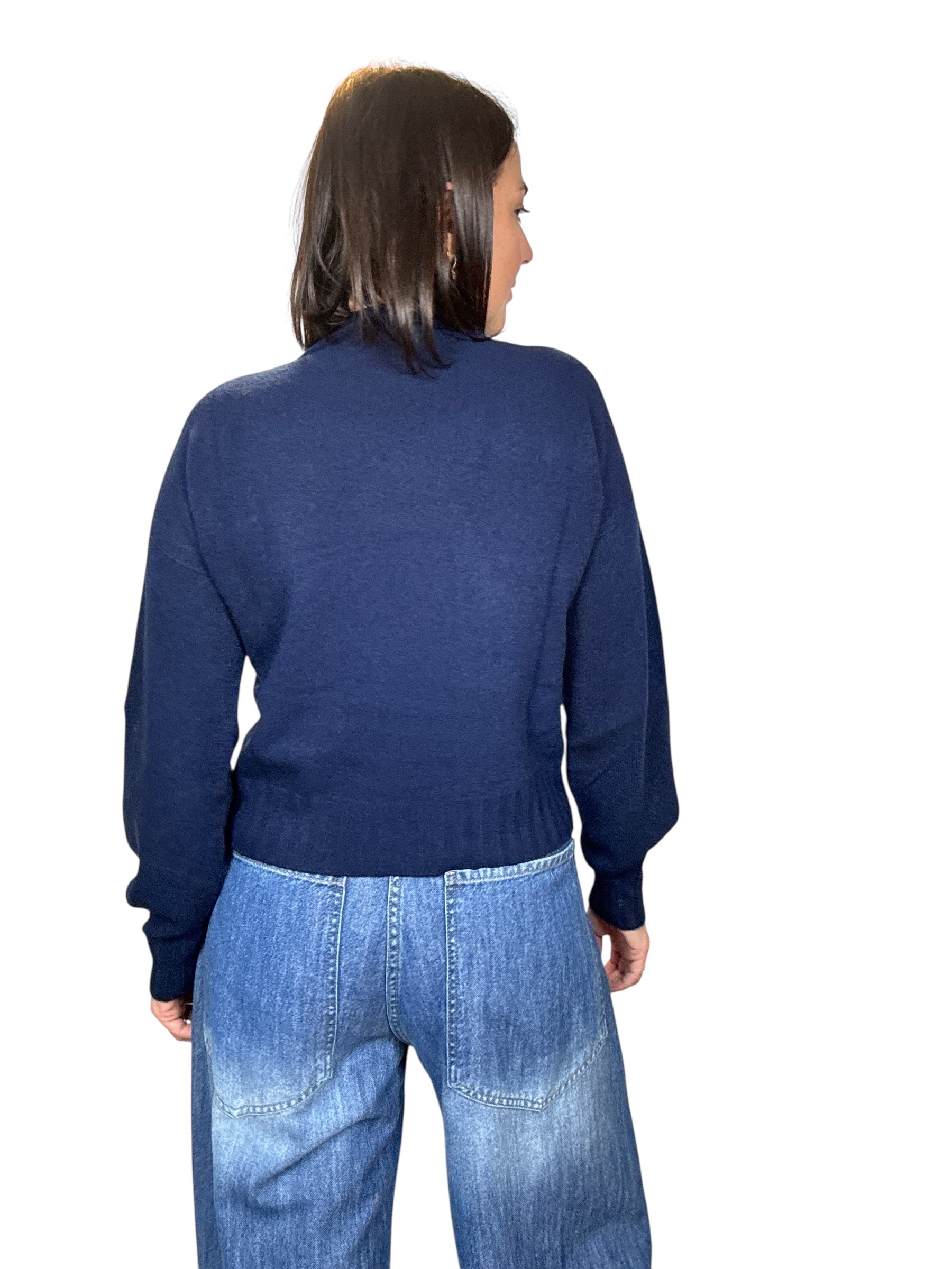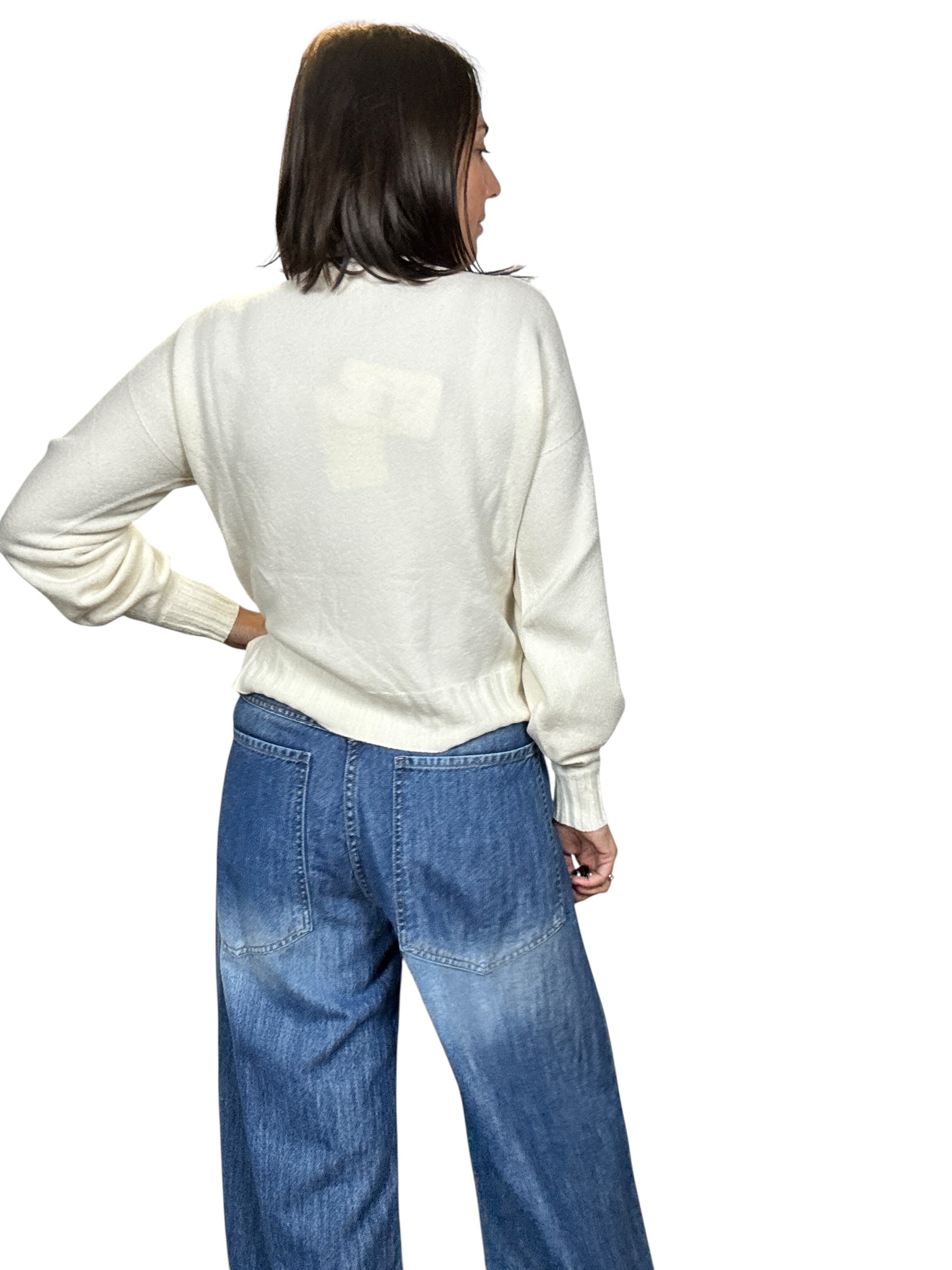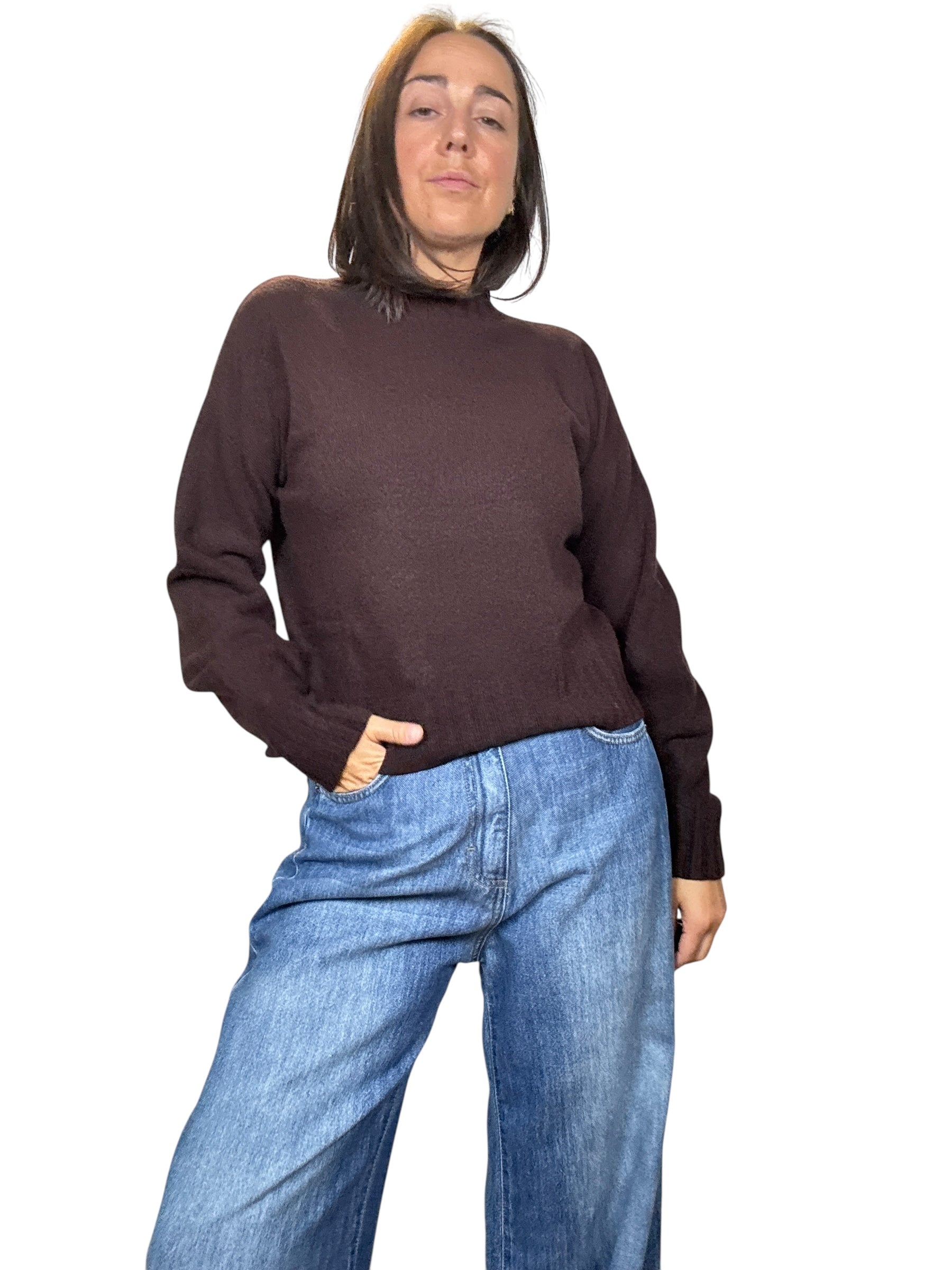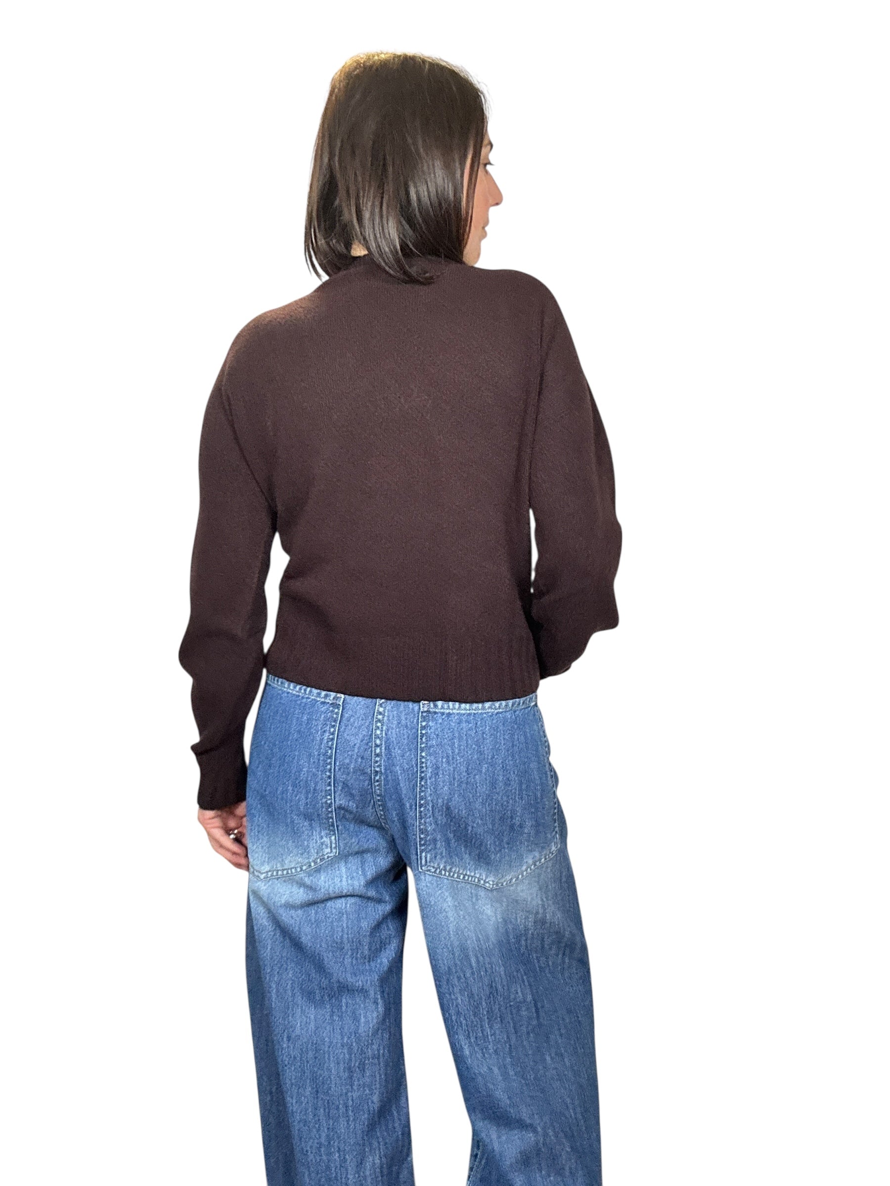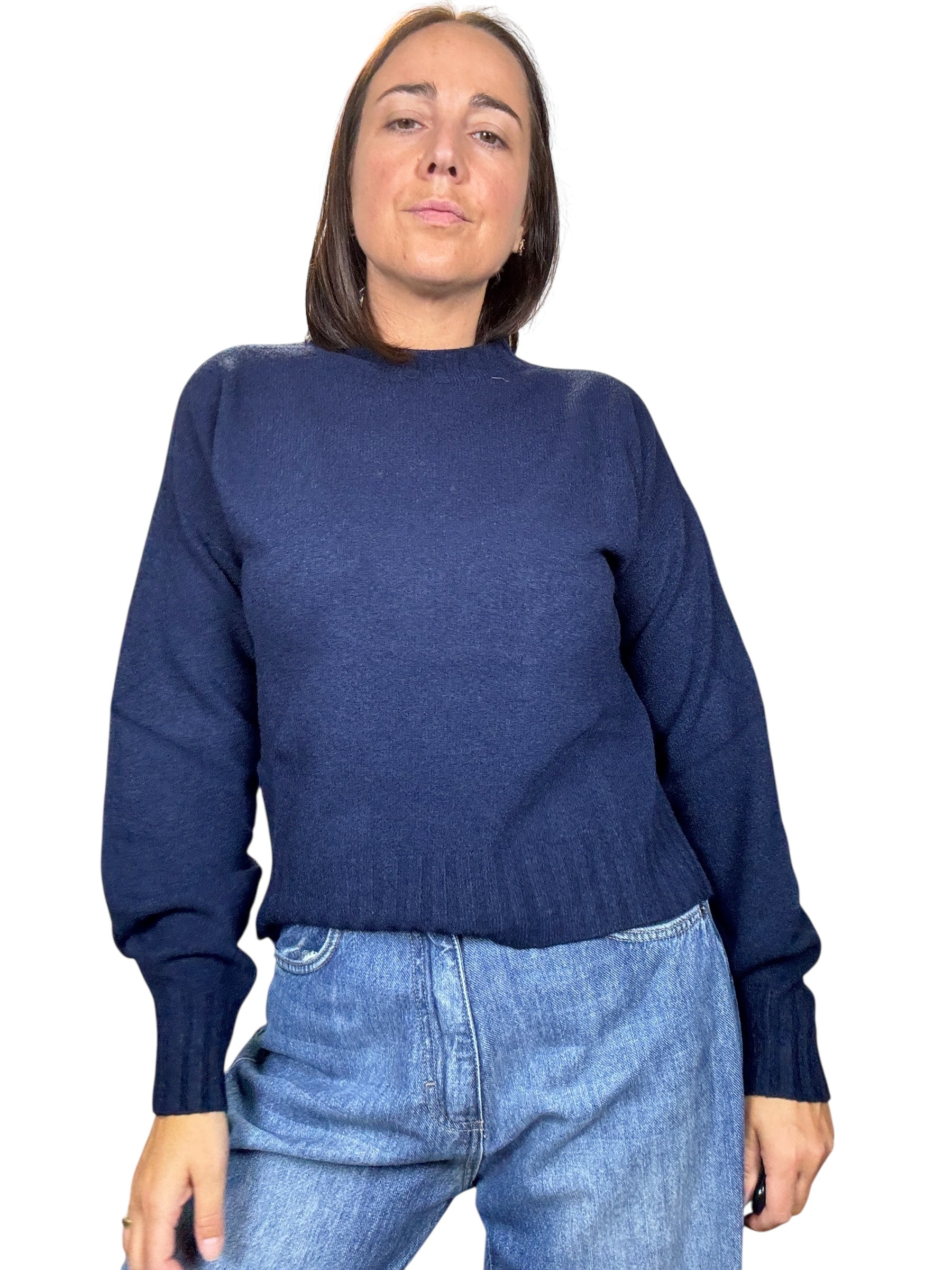 Maglia girocollo con manicaa palloncino e con profilo a costina sui polsini e sul fondo. Modello corto in cintura e morbido