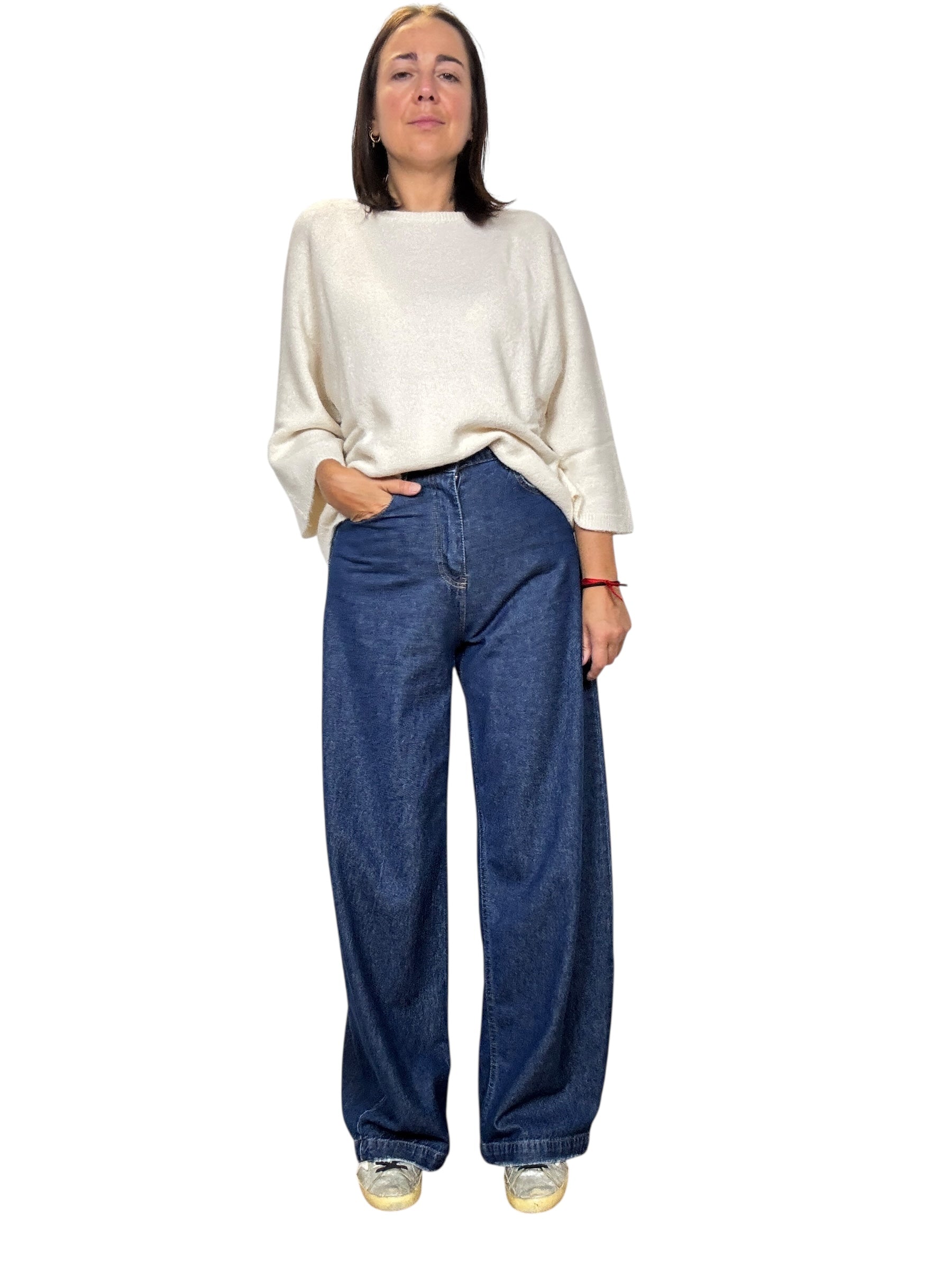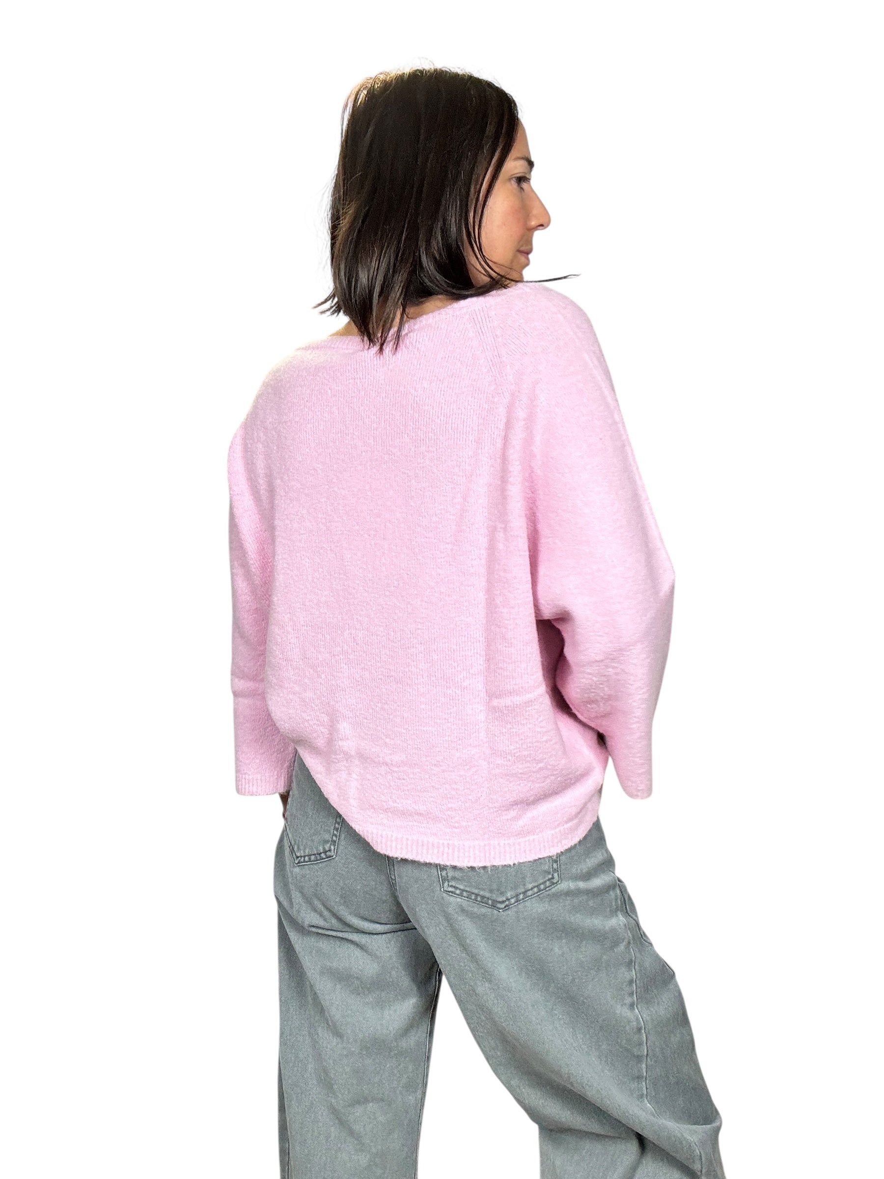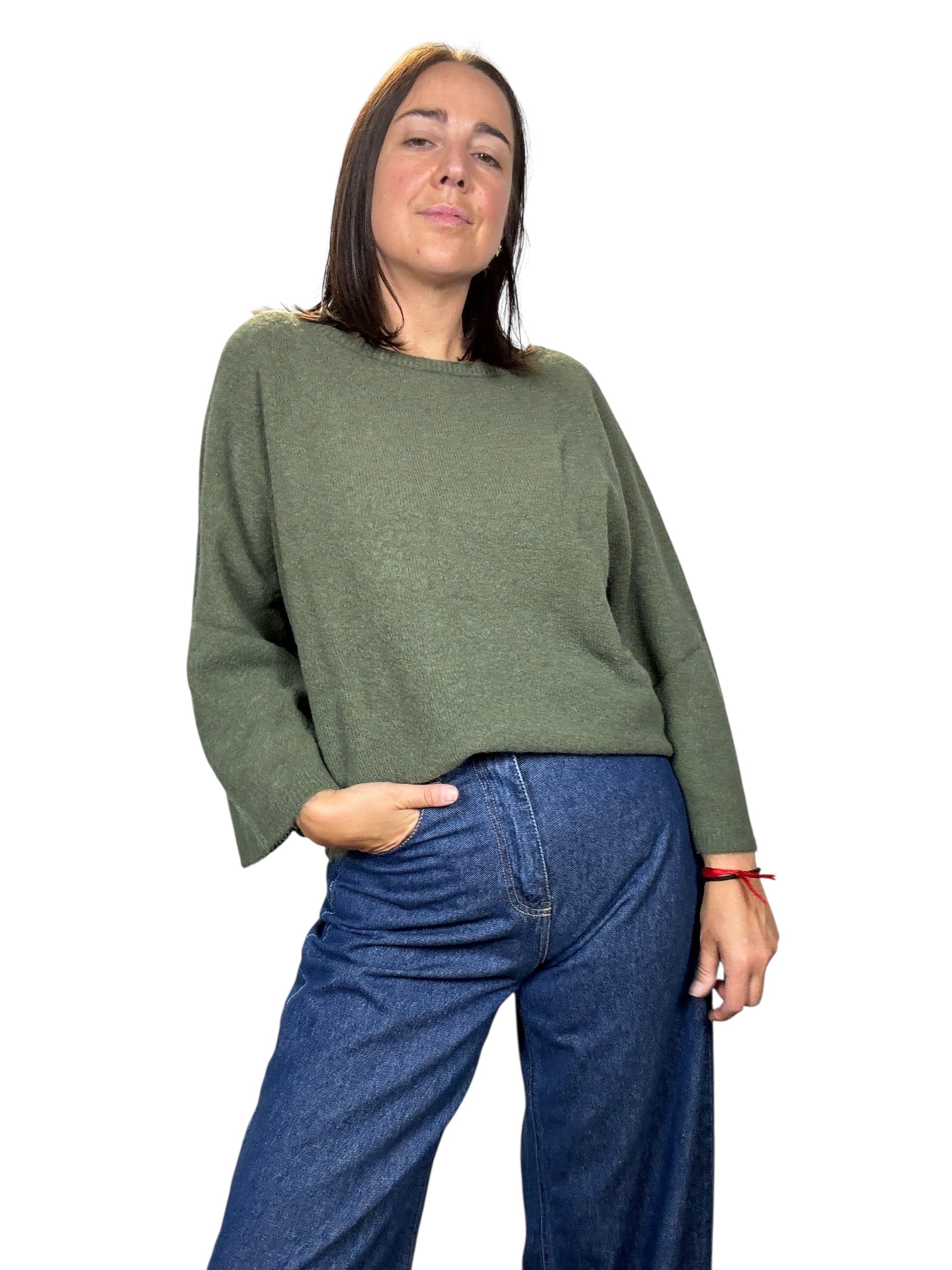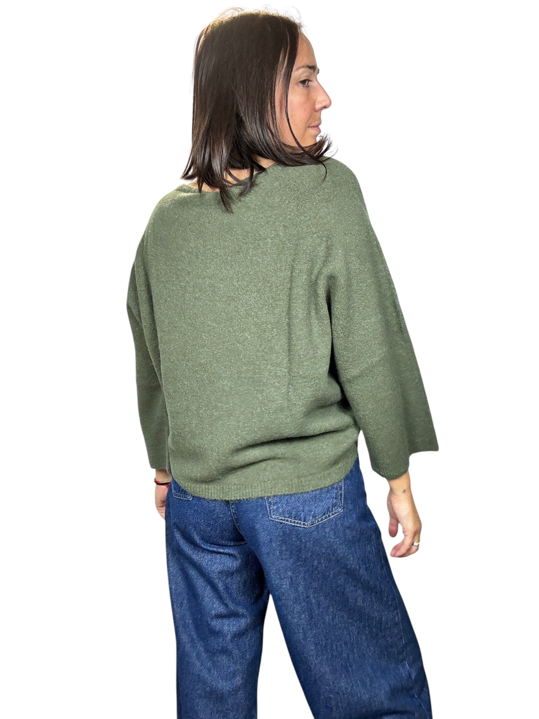 Maglia con scollo a barchetta e manica ampia a 3/4. Modello oversize