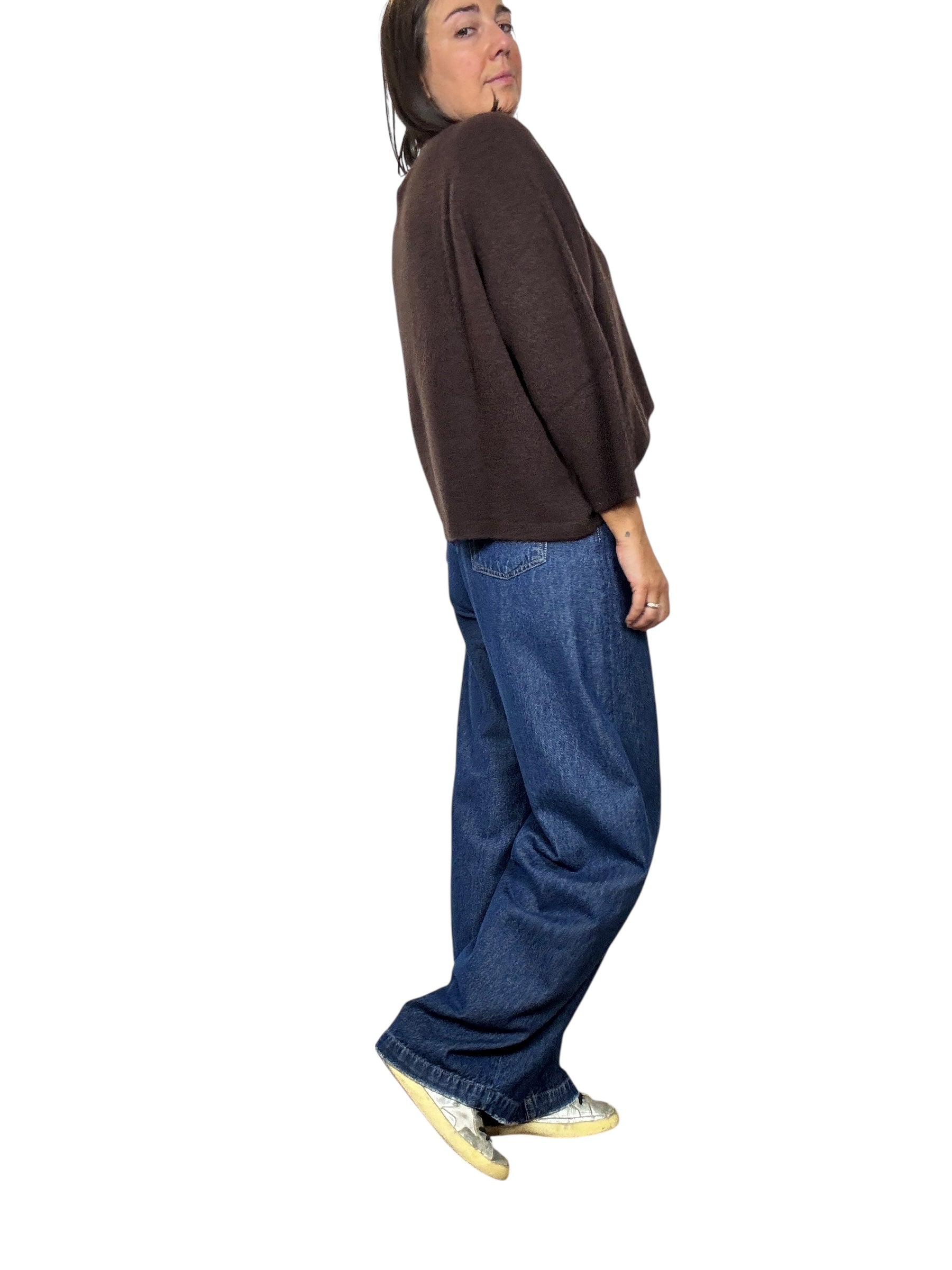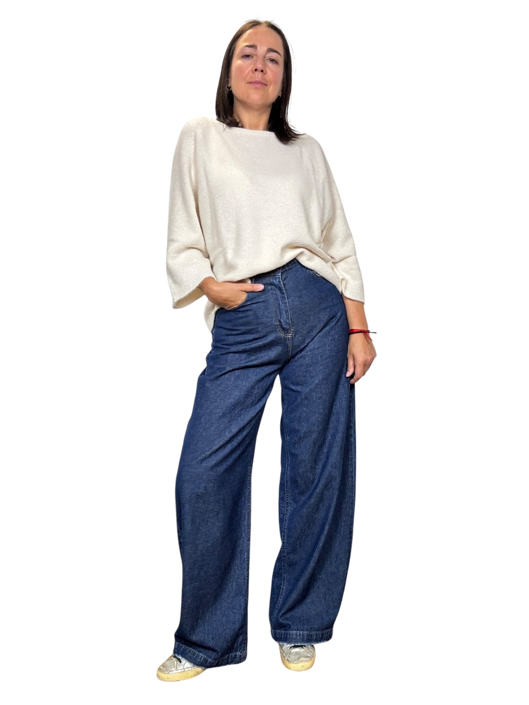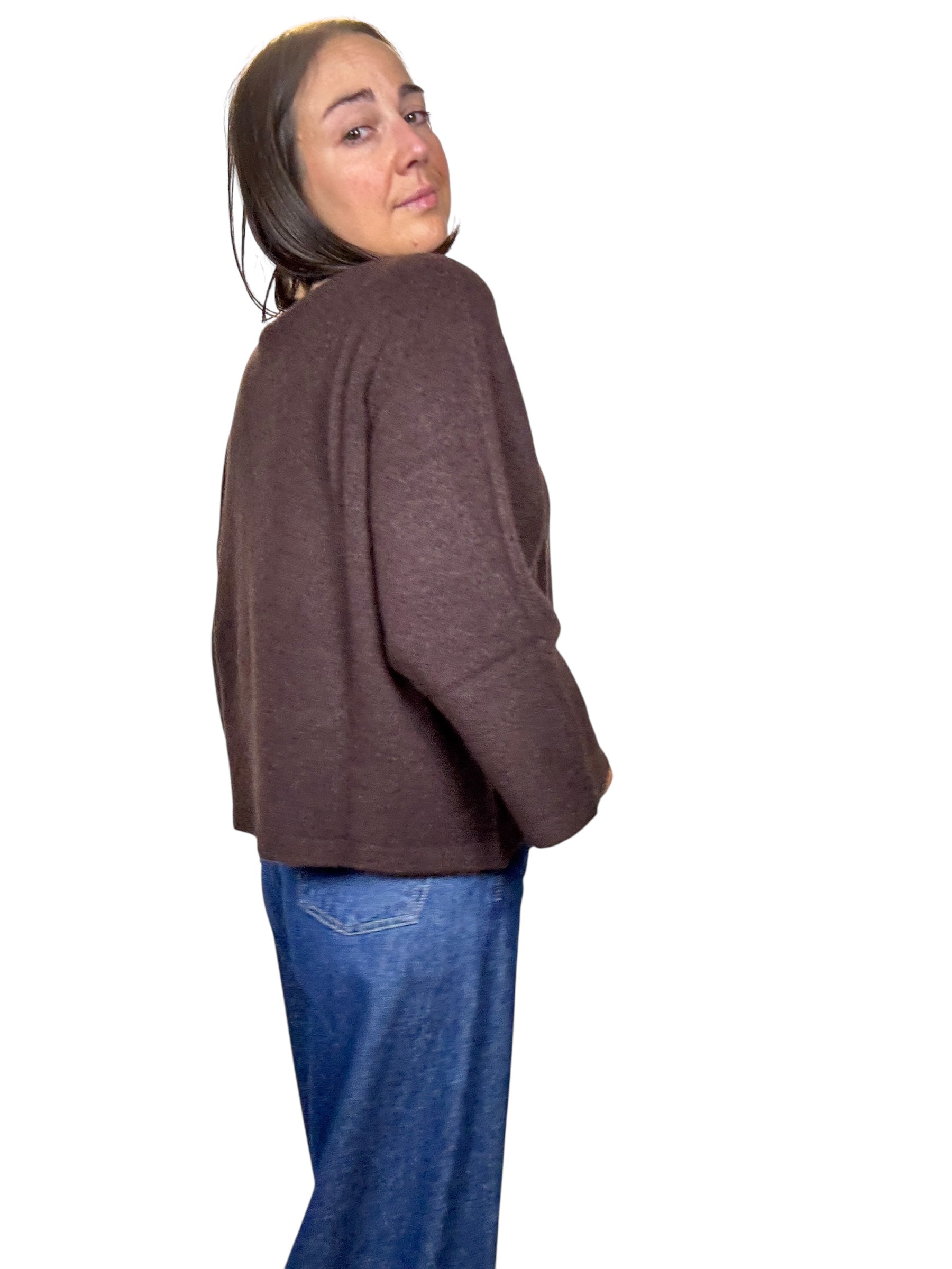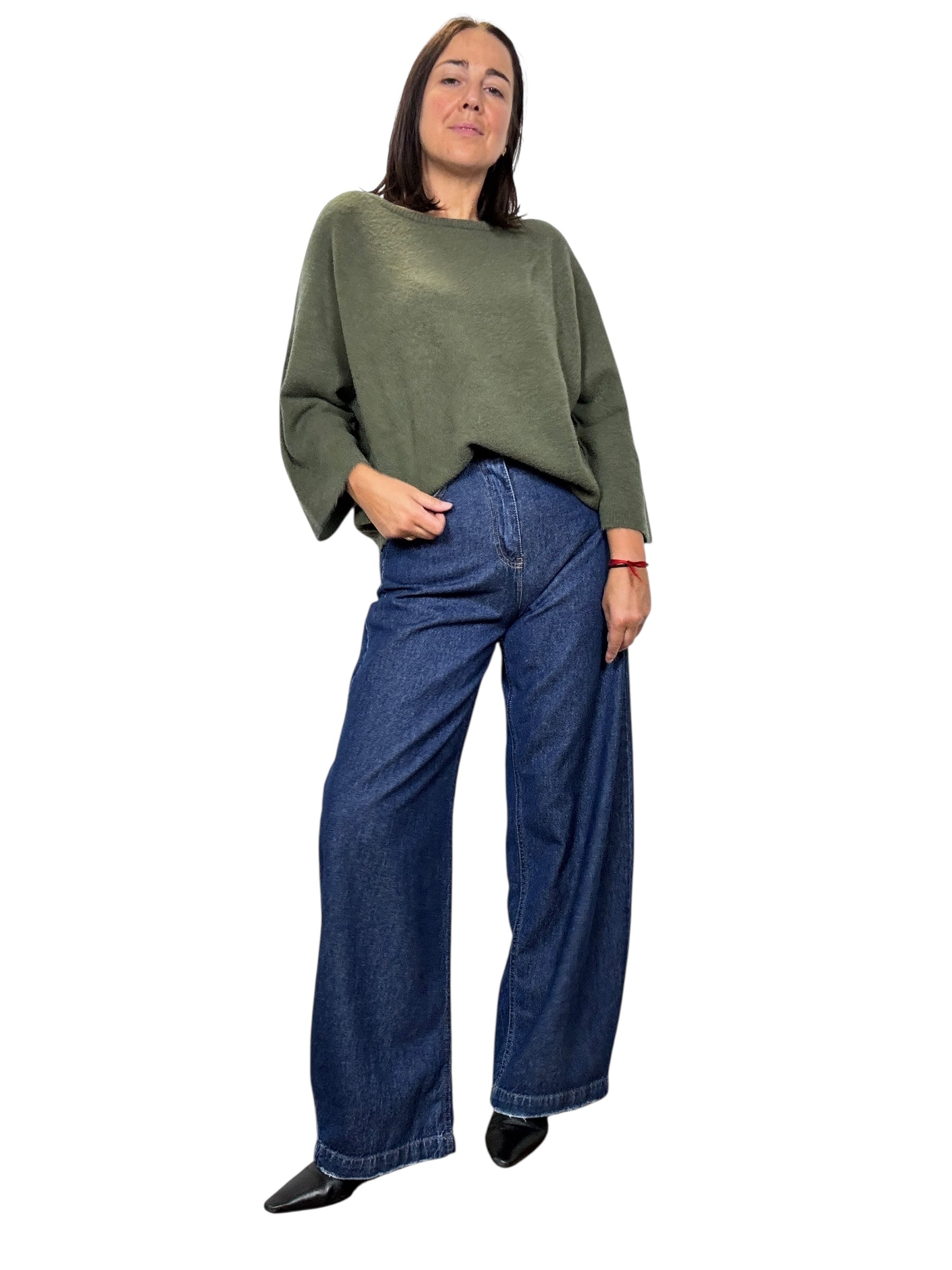 Maglia con scollo a barchetta e manica ampia a 3/4. Modello oversize