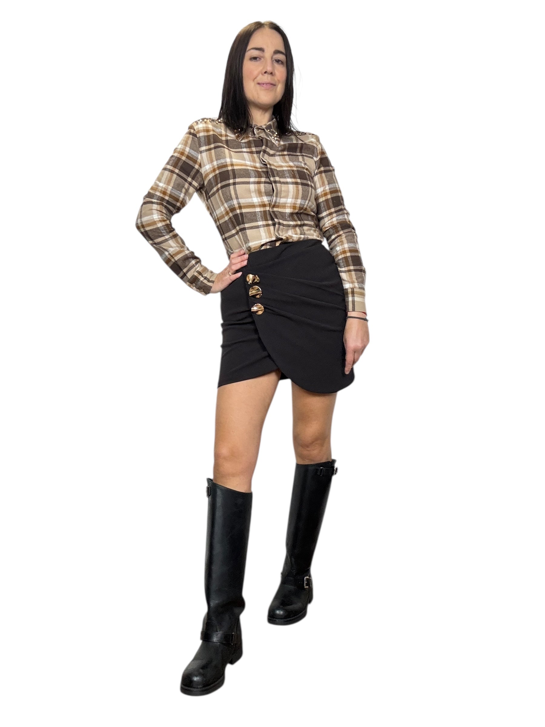 minigonna a vita alta con elastico in vita e drappeggiatura laterale. Tessuto super elasticizzata con dettaglio bottoni dorati (tg in foto S)