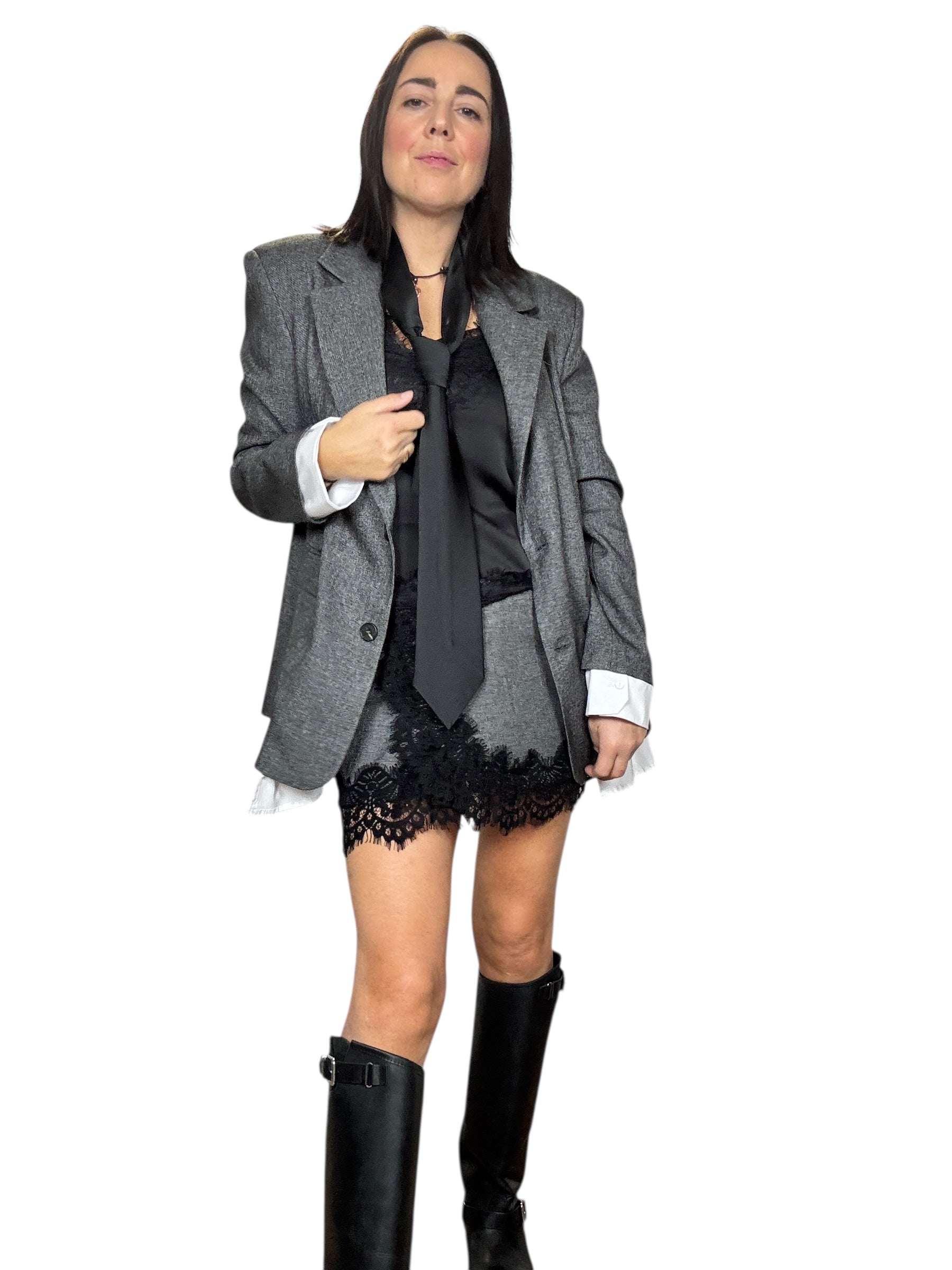 Minigonna a vita alta con zip sul retro ed inserto in pizzo (tg in foto S)