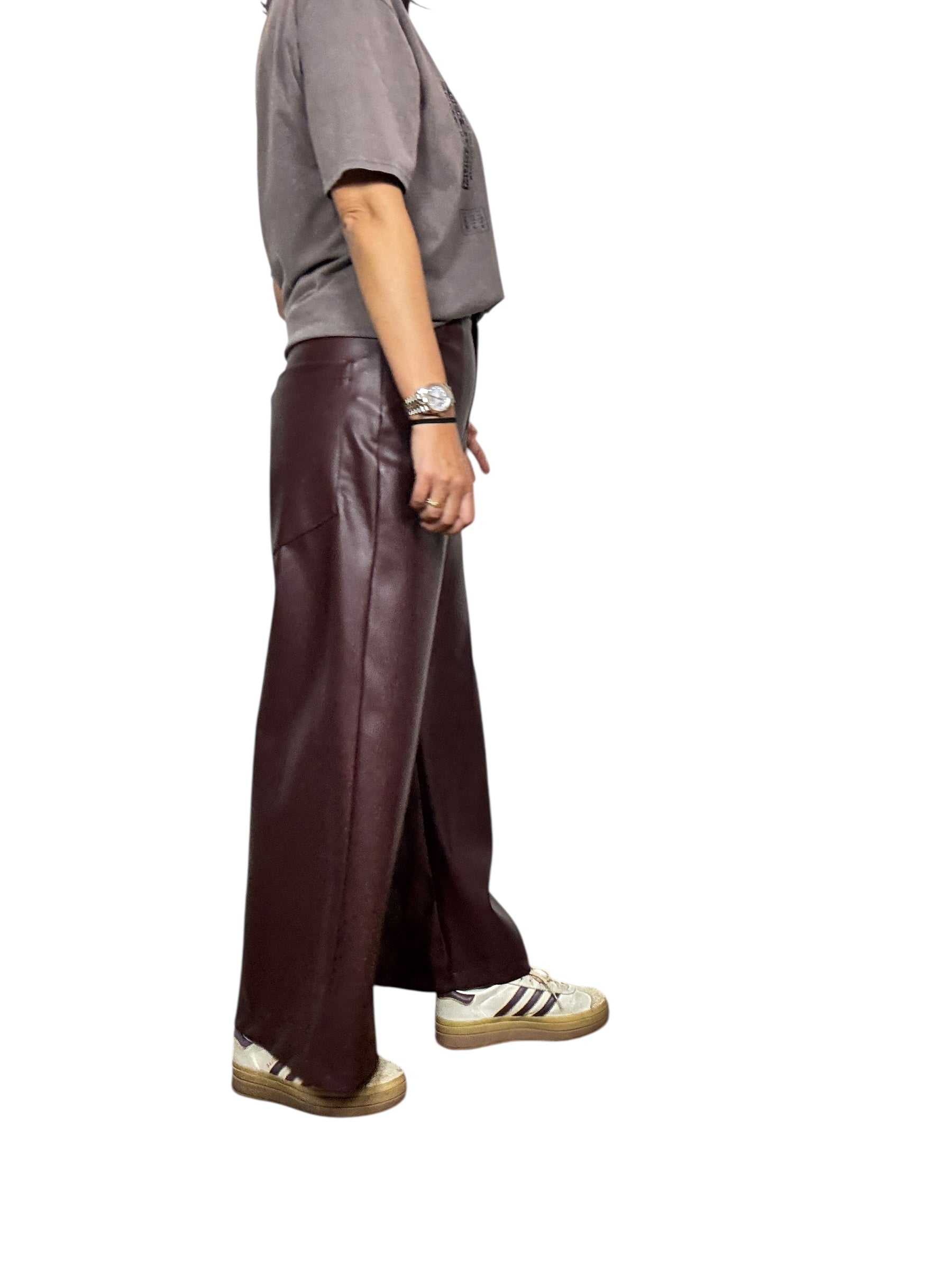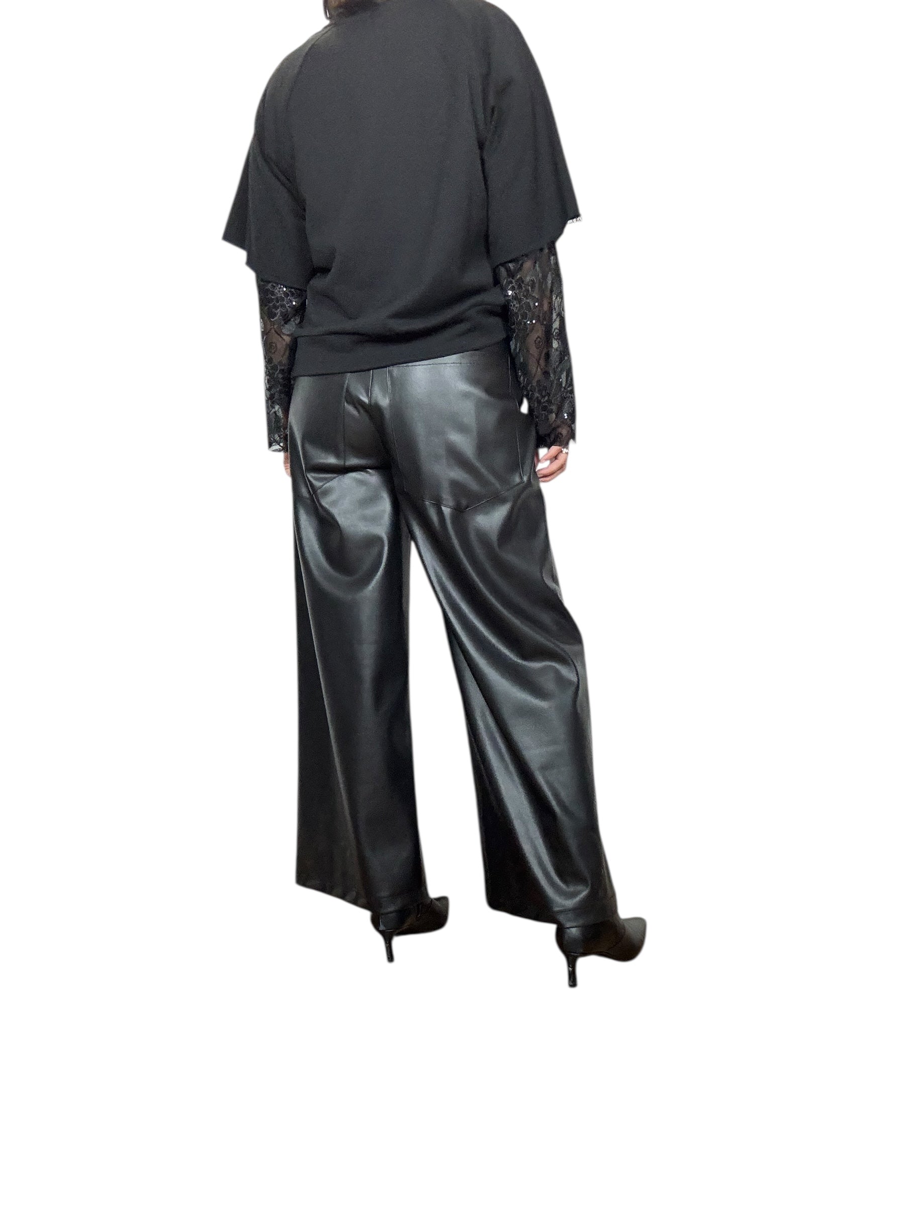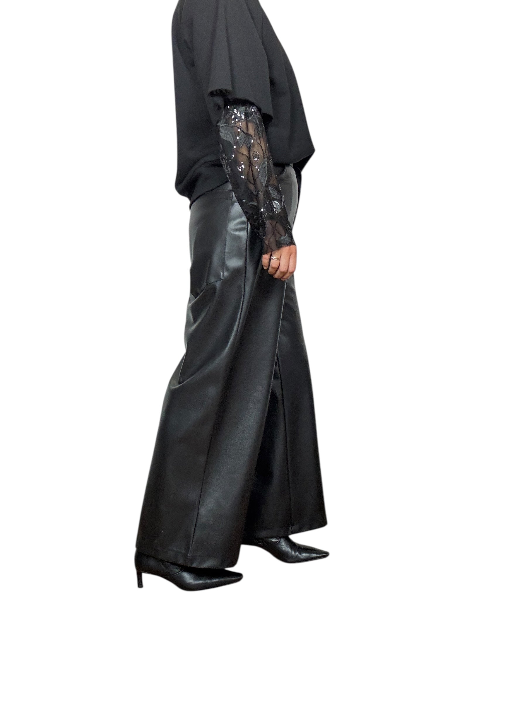 Pantalone a vita alta con tasche laterali e posteriori, chiusura con zip e bottone frontale. Modello a palazzo, tessuto super elasticizzato (tg in foto S) gilet abbinabile
