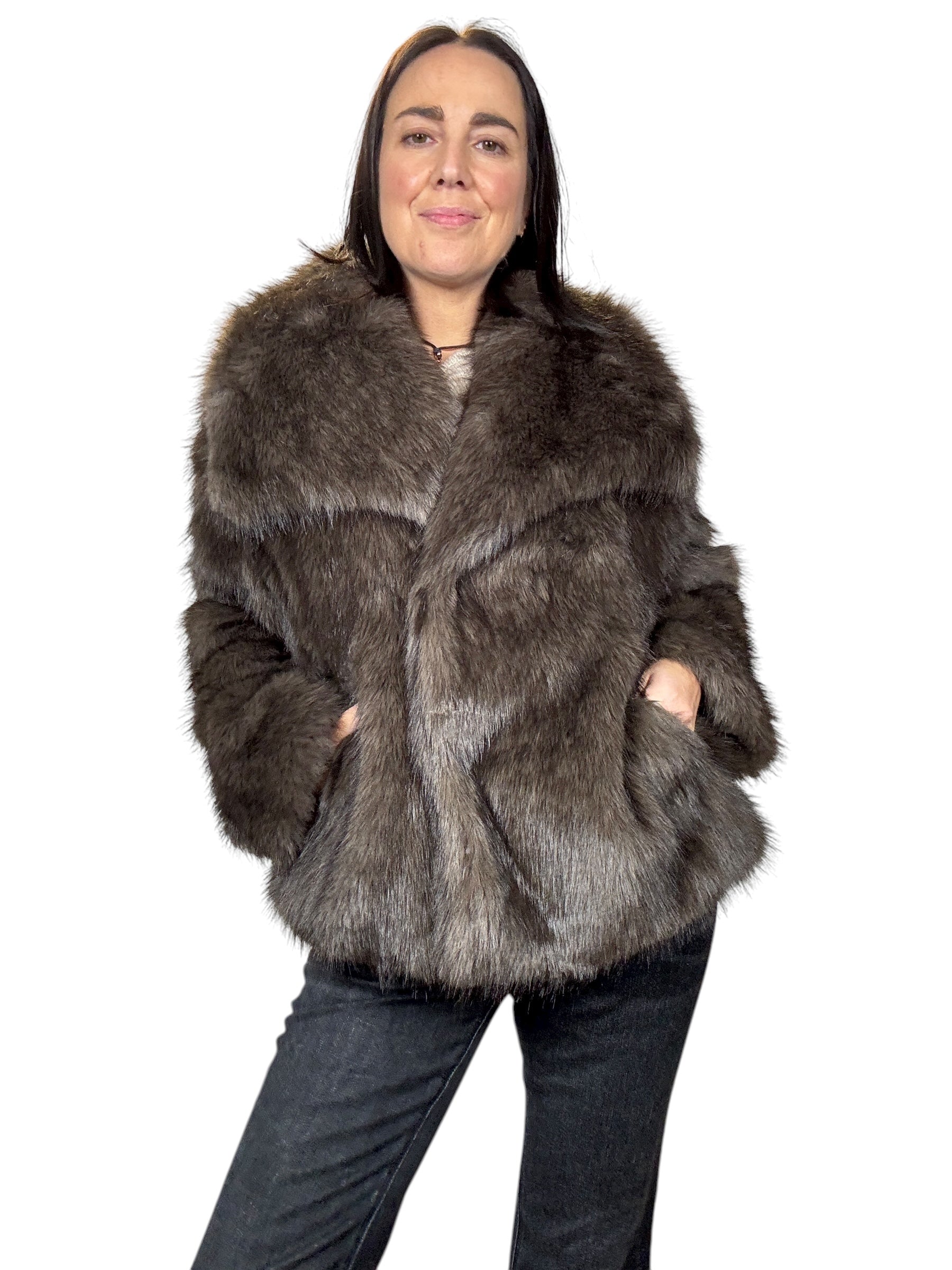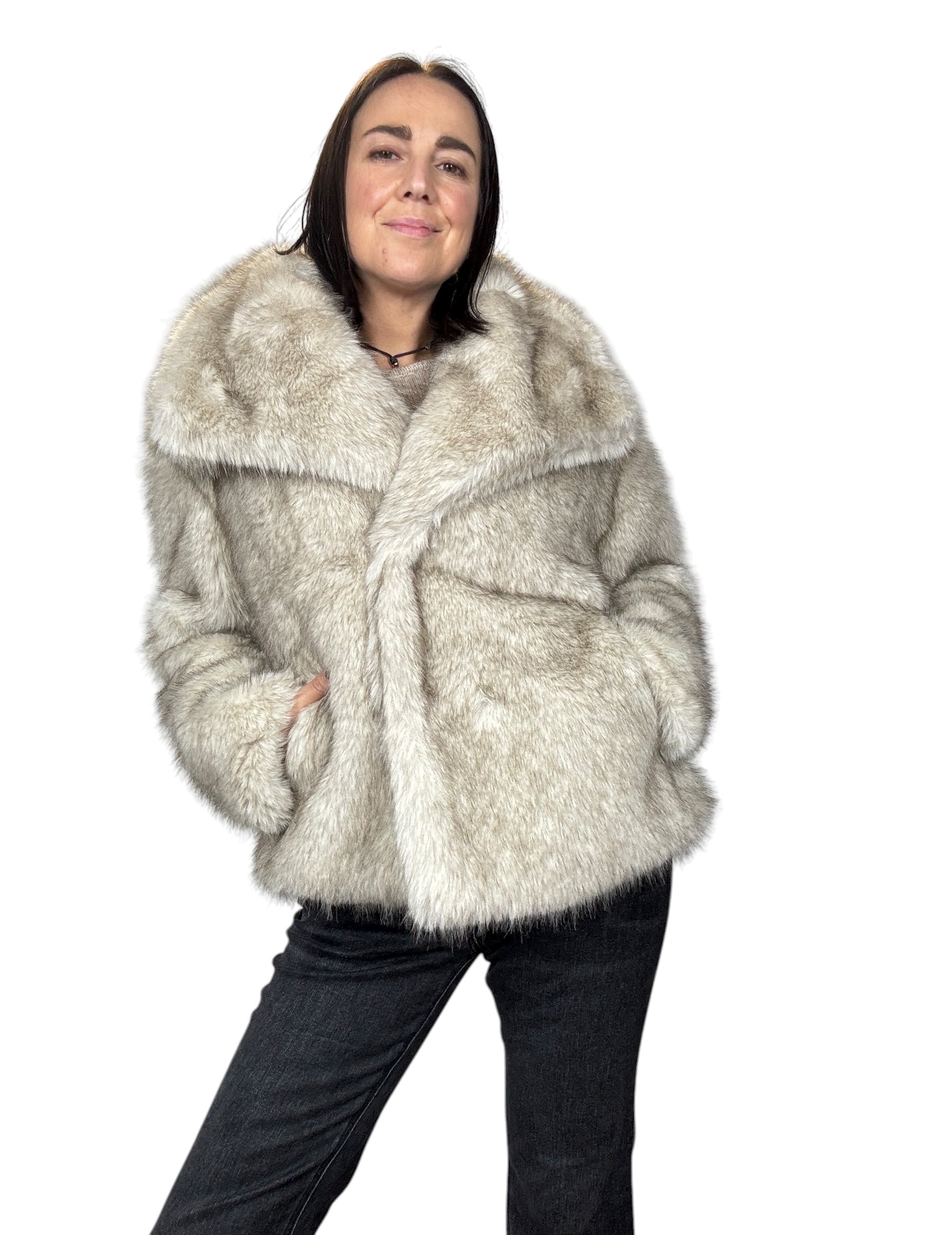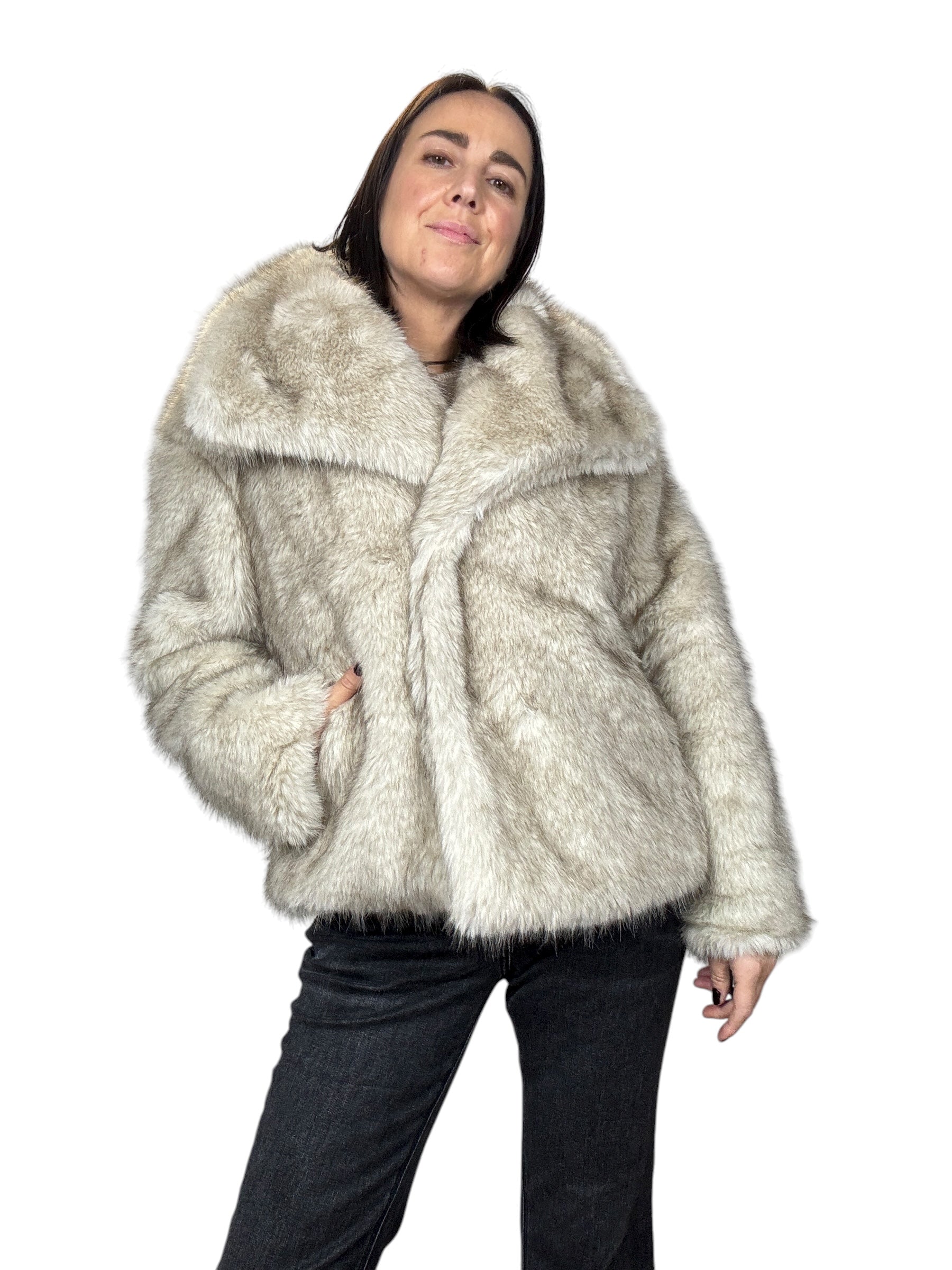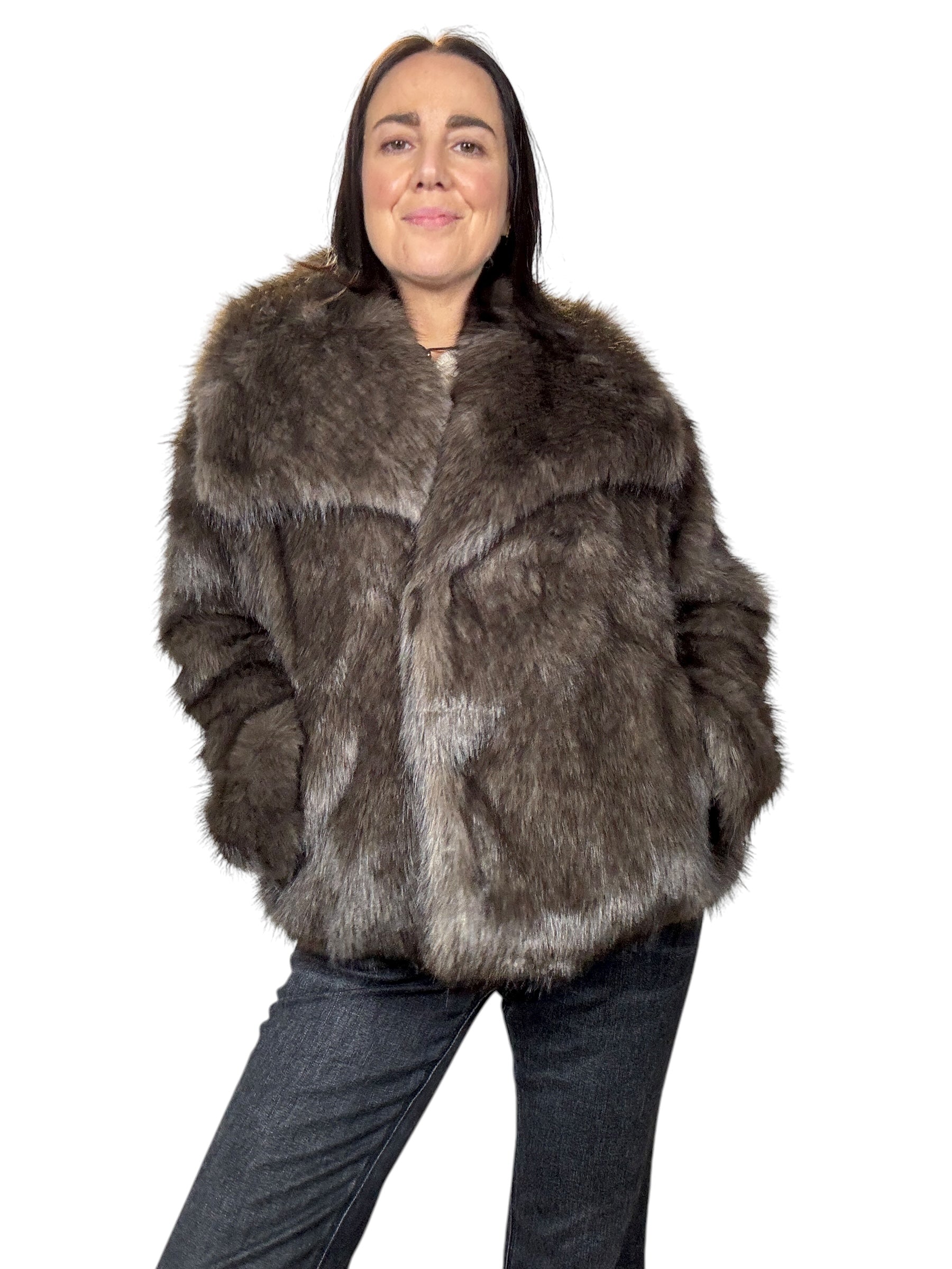 Pelliccia foderata con chiusura a doppiopetto e tasche laterali. Fit oversize