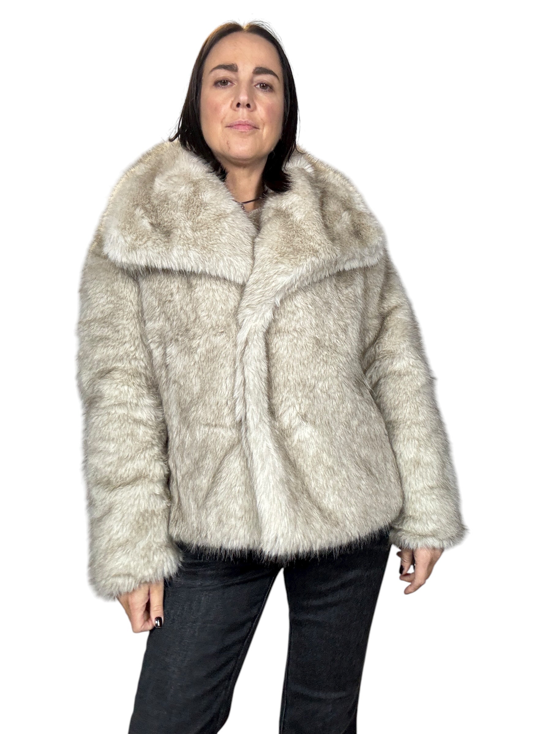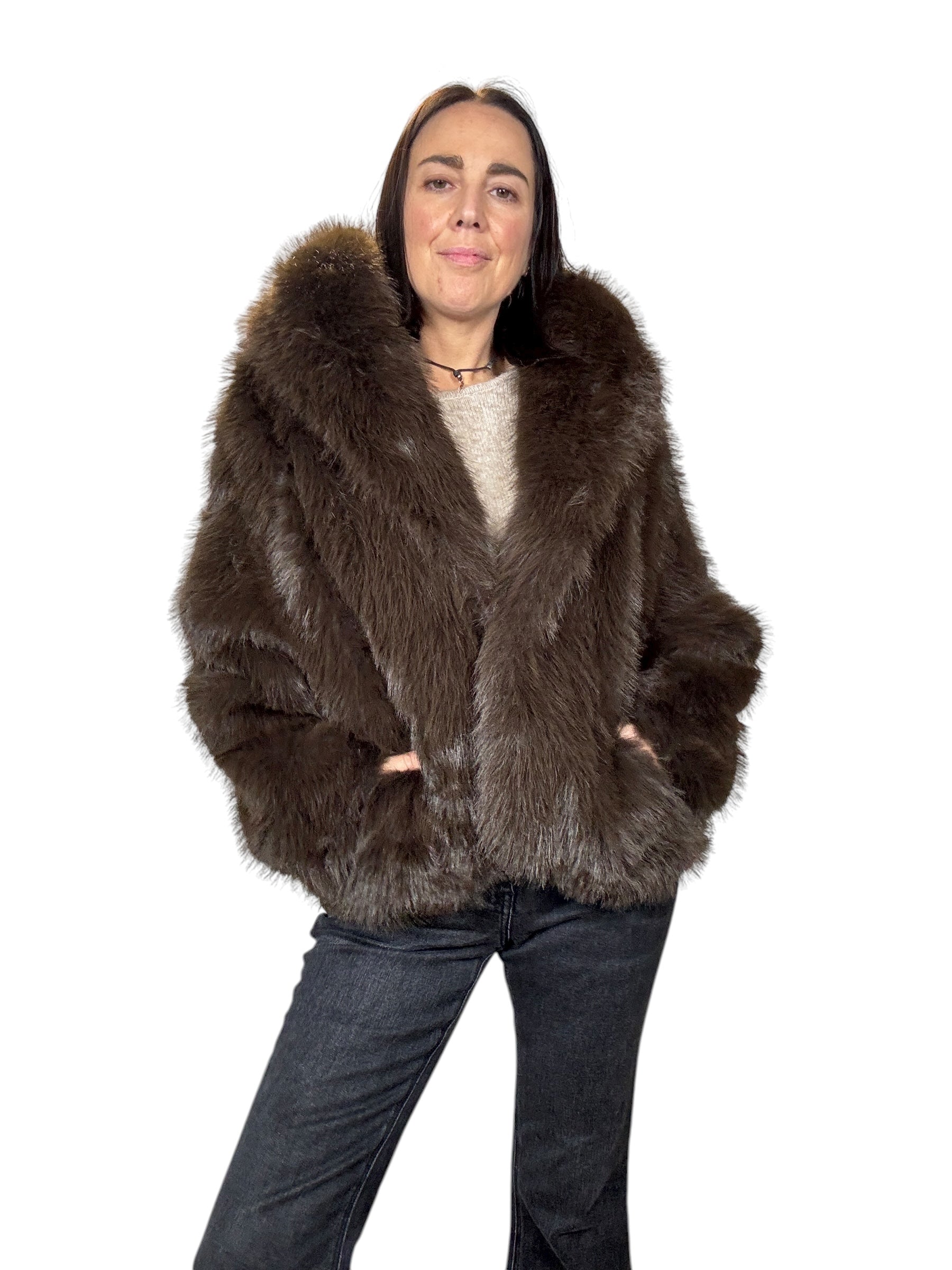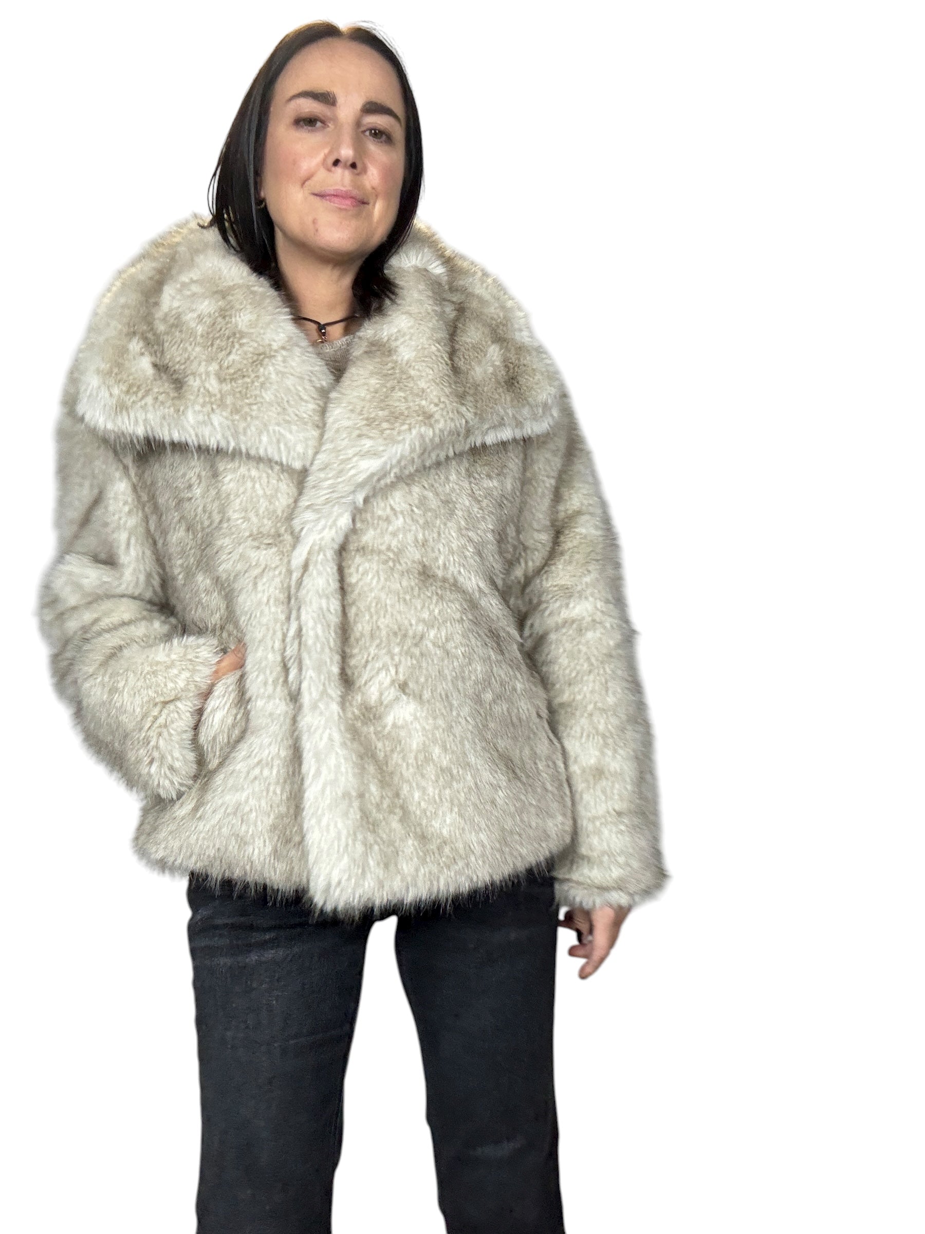 Pelliccia foderata con chiusura a doppiopetto e tasche laterali. Fit oversize