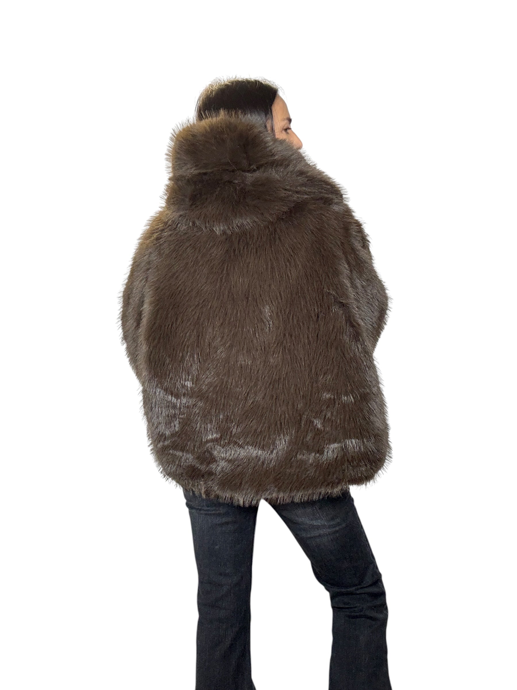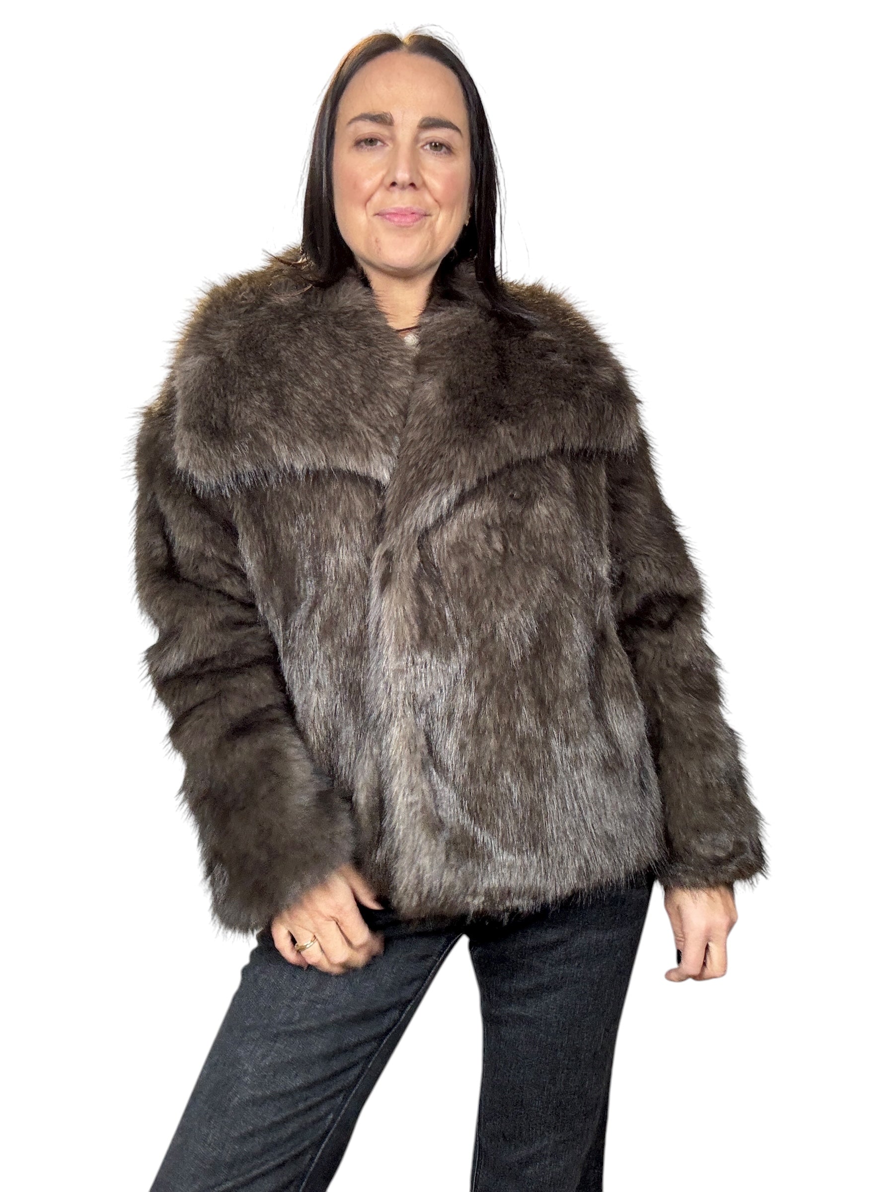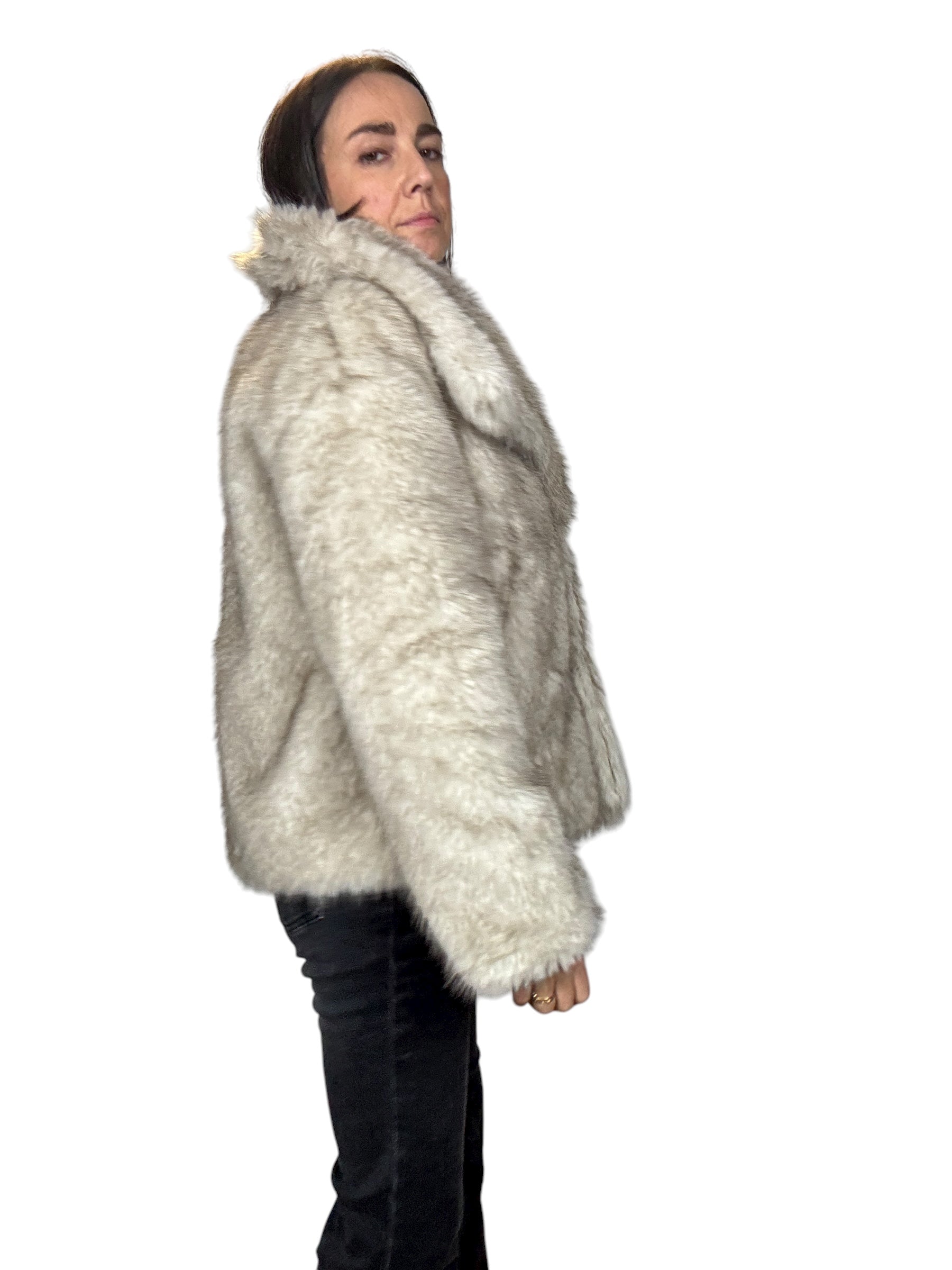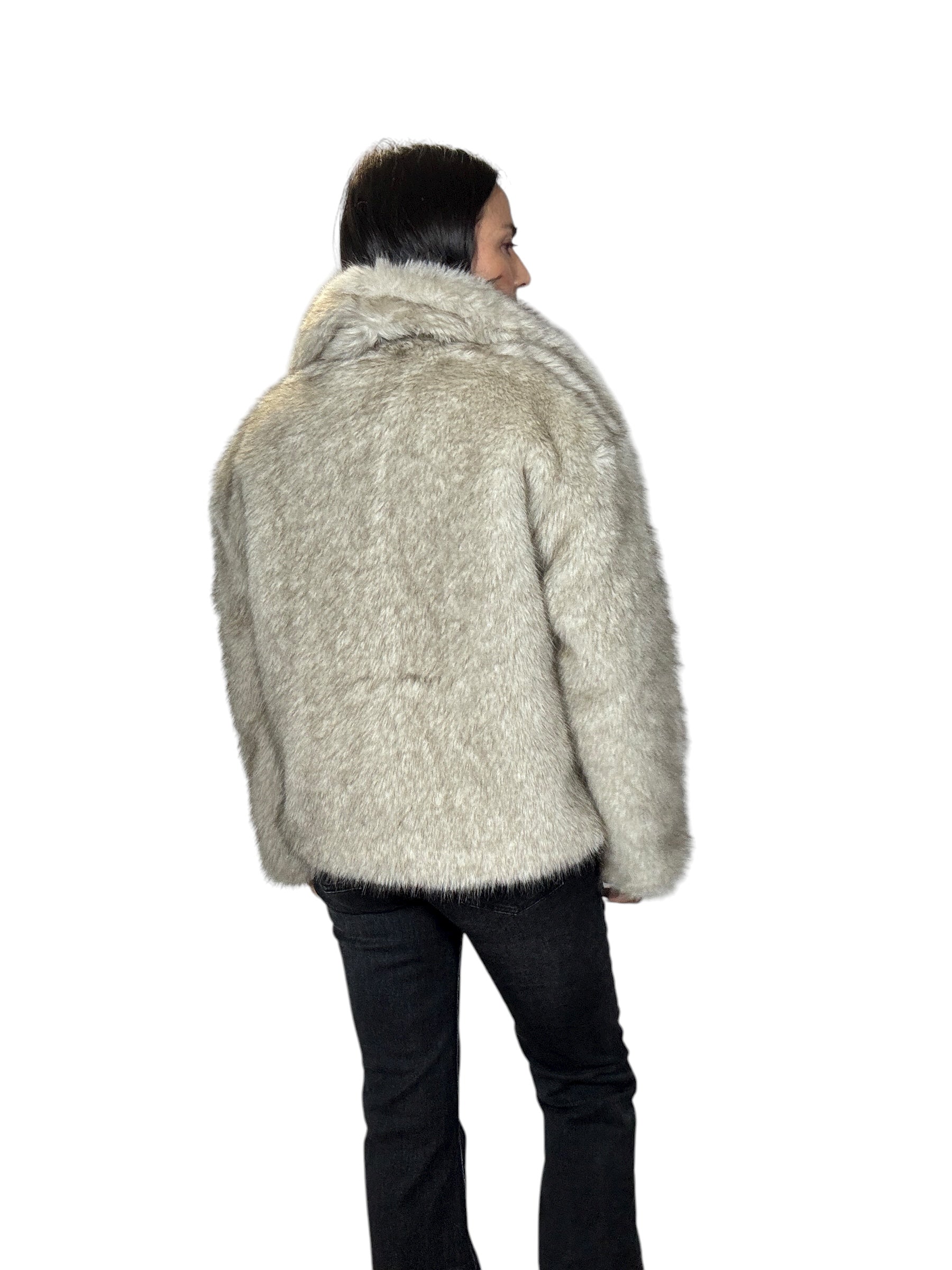 Pelliccia foderata con chiusura a doppiopetto e tasche laterali. Fit oversize
