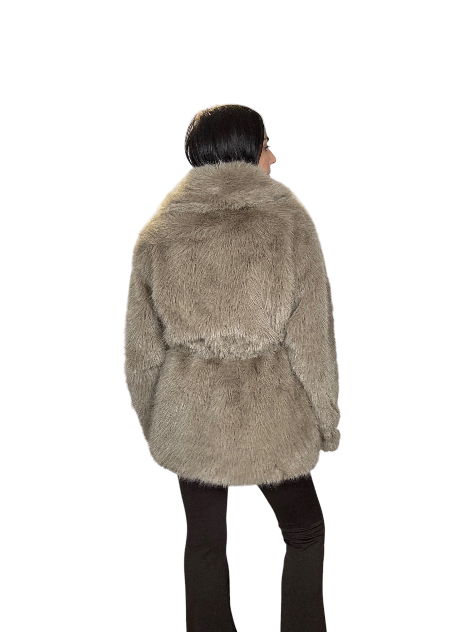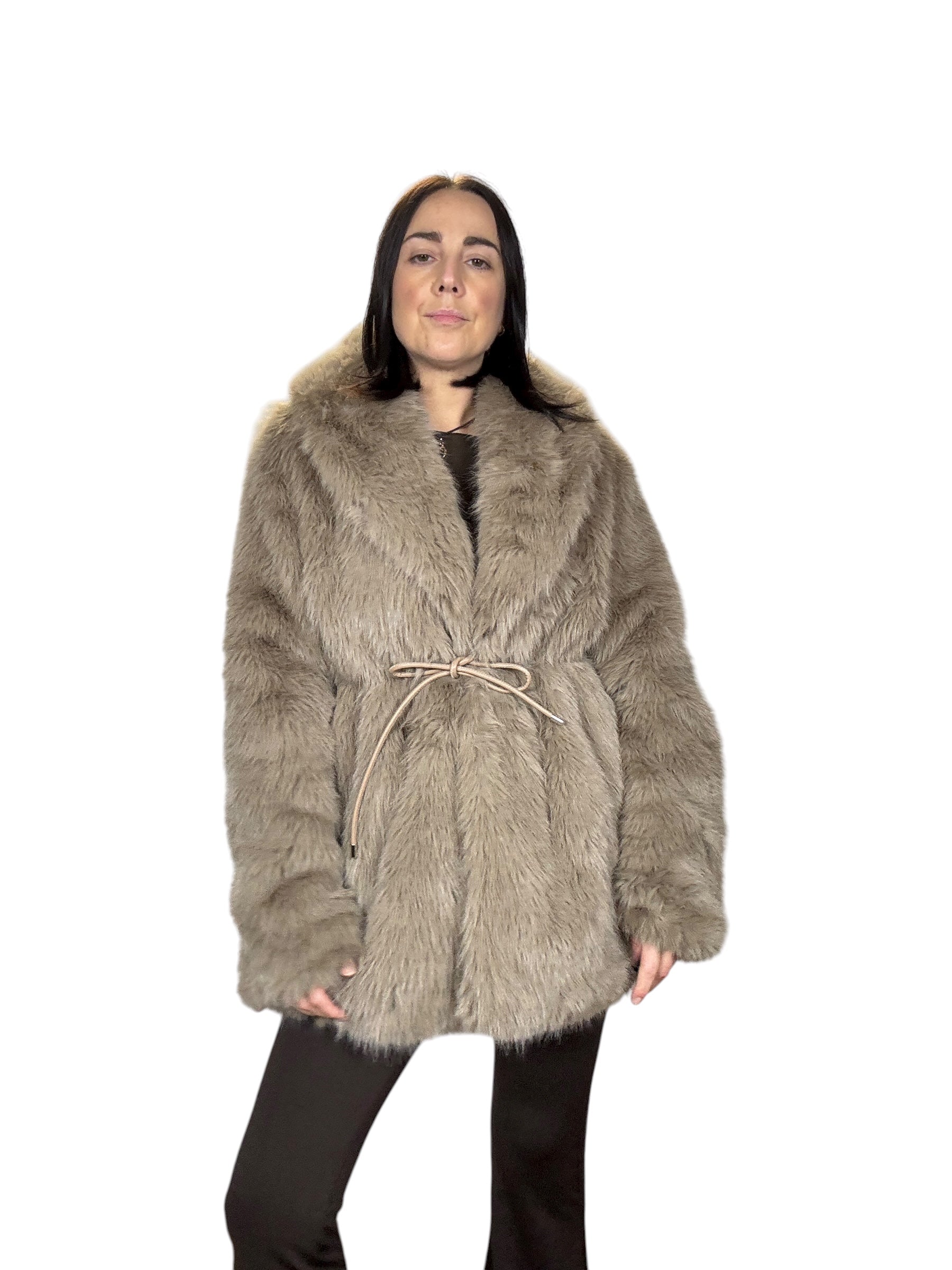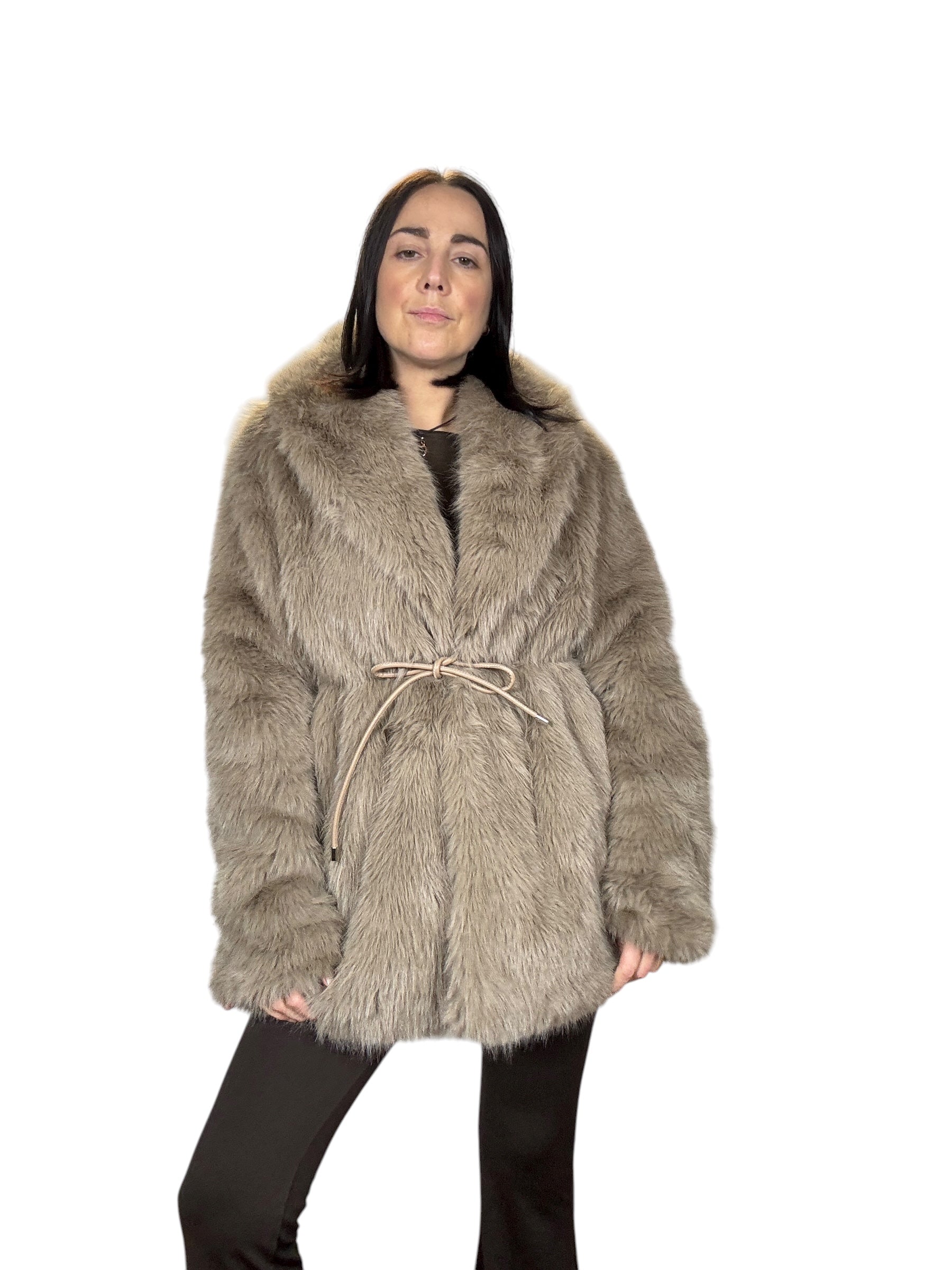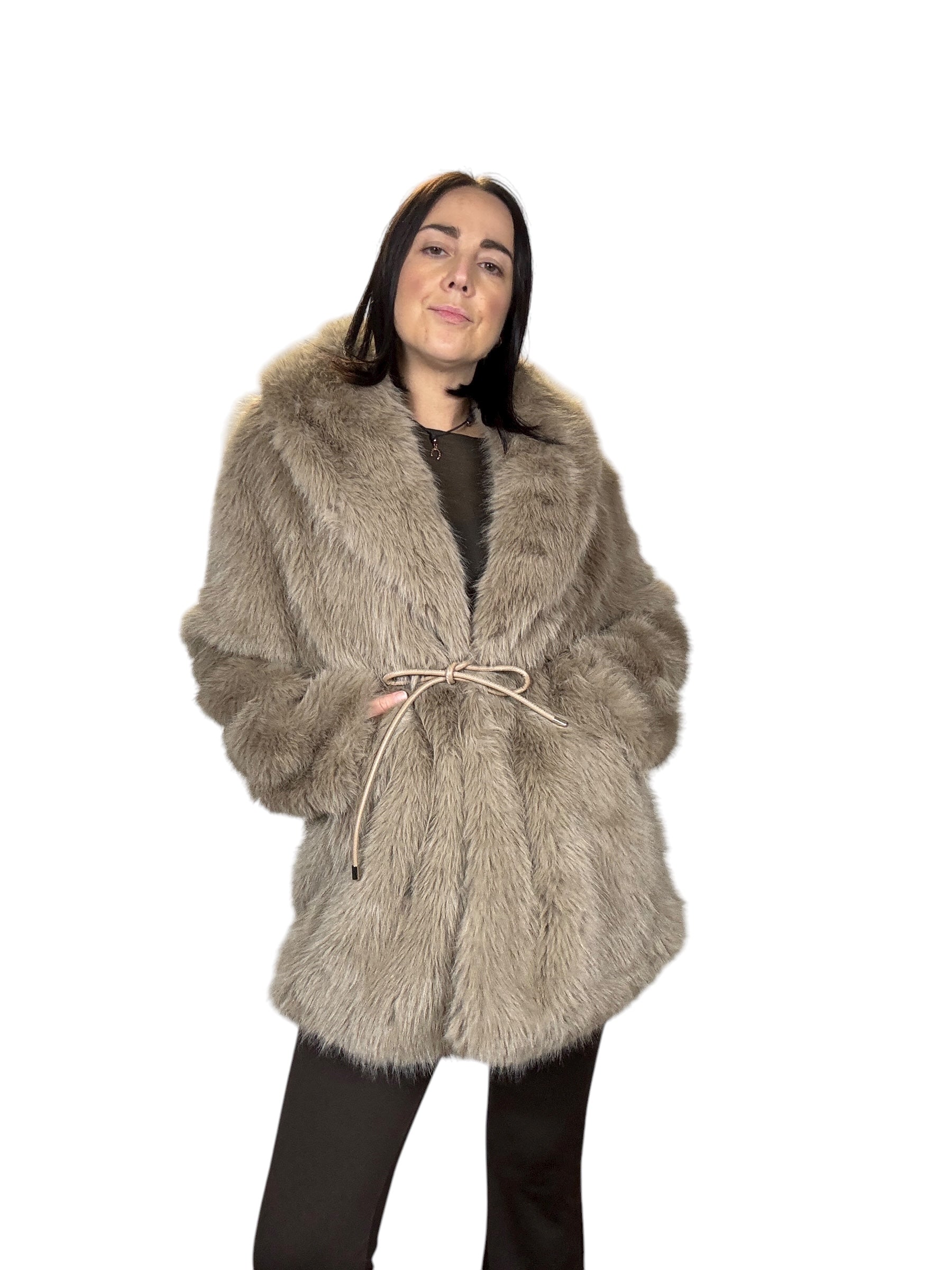 pelliccia foderata con tasche laterali e cintura in vita (rimuovibile)