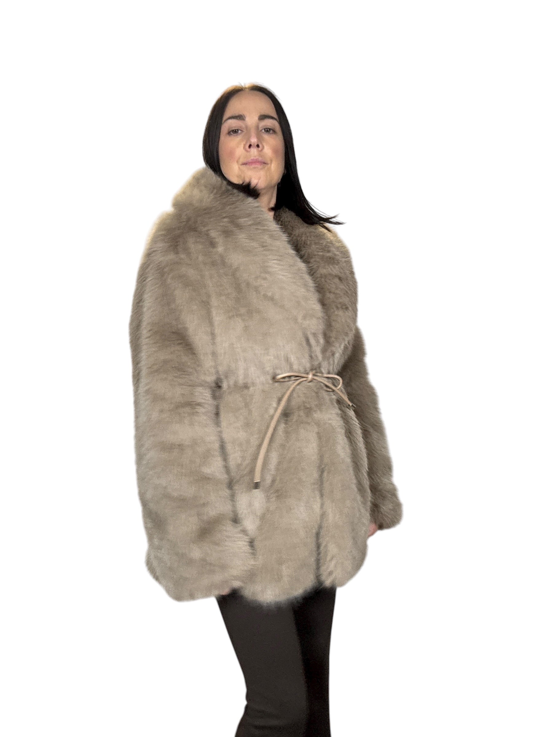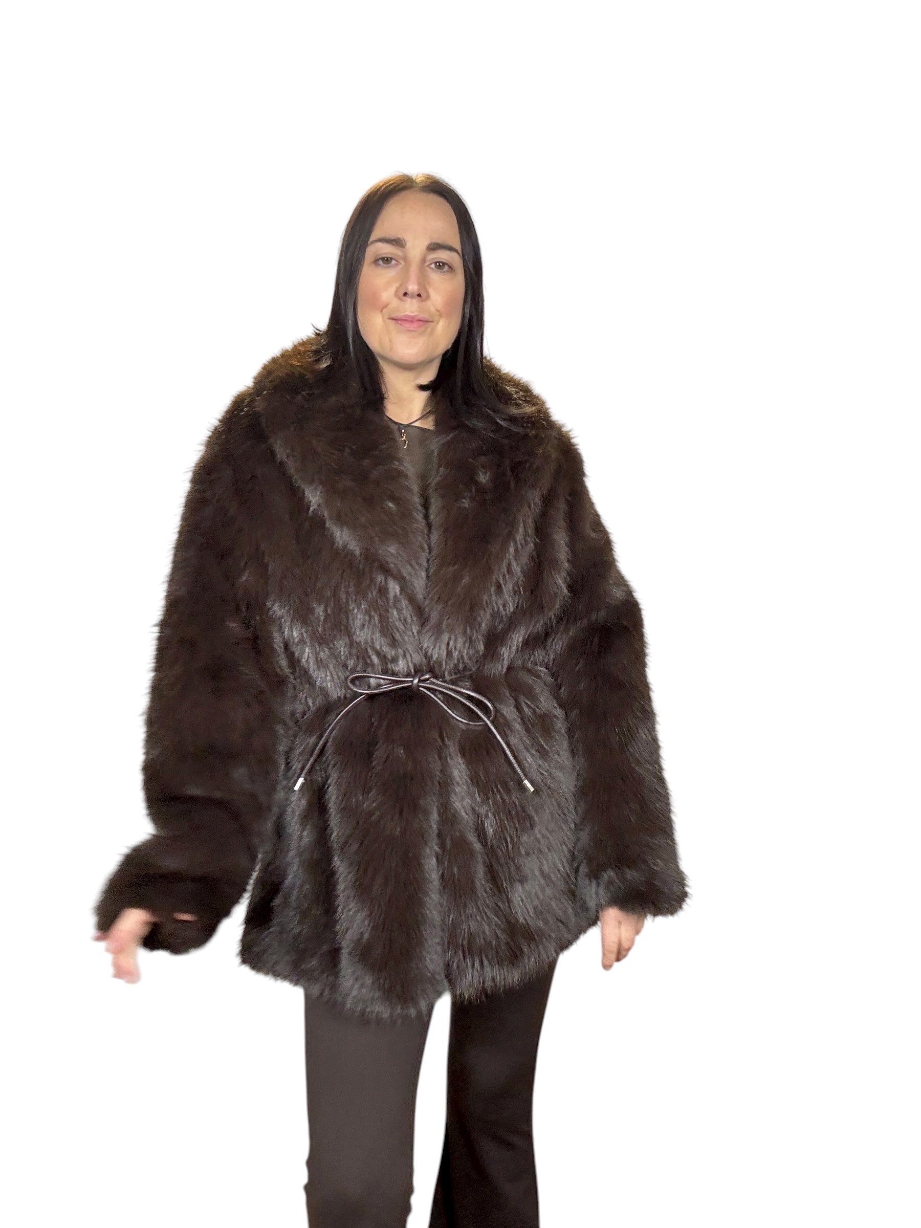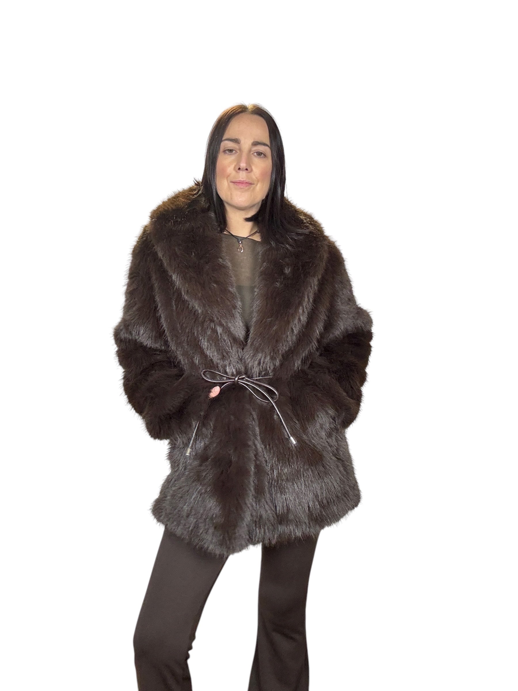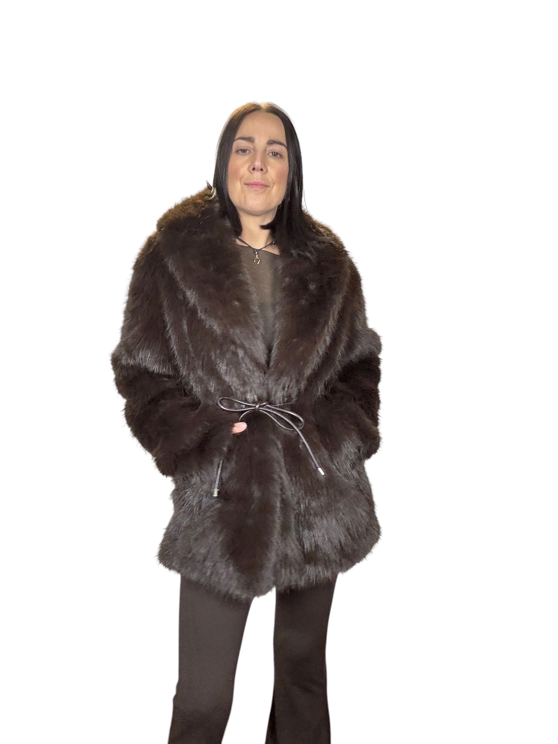 pelliccia foderata con tasche laterali e cintura in vita (rimuovibile)