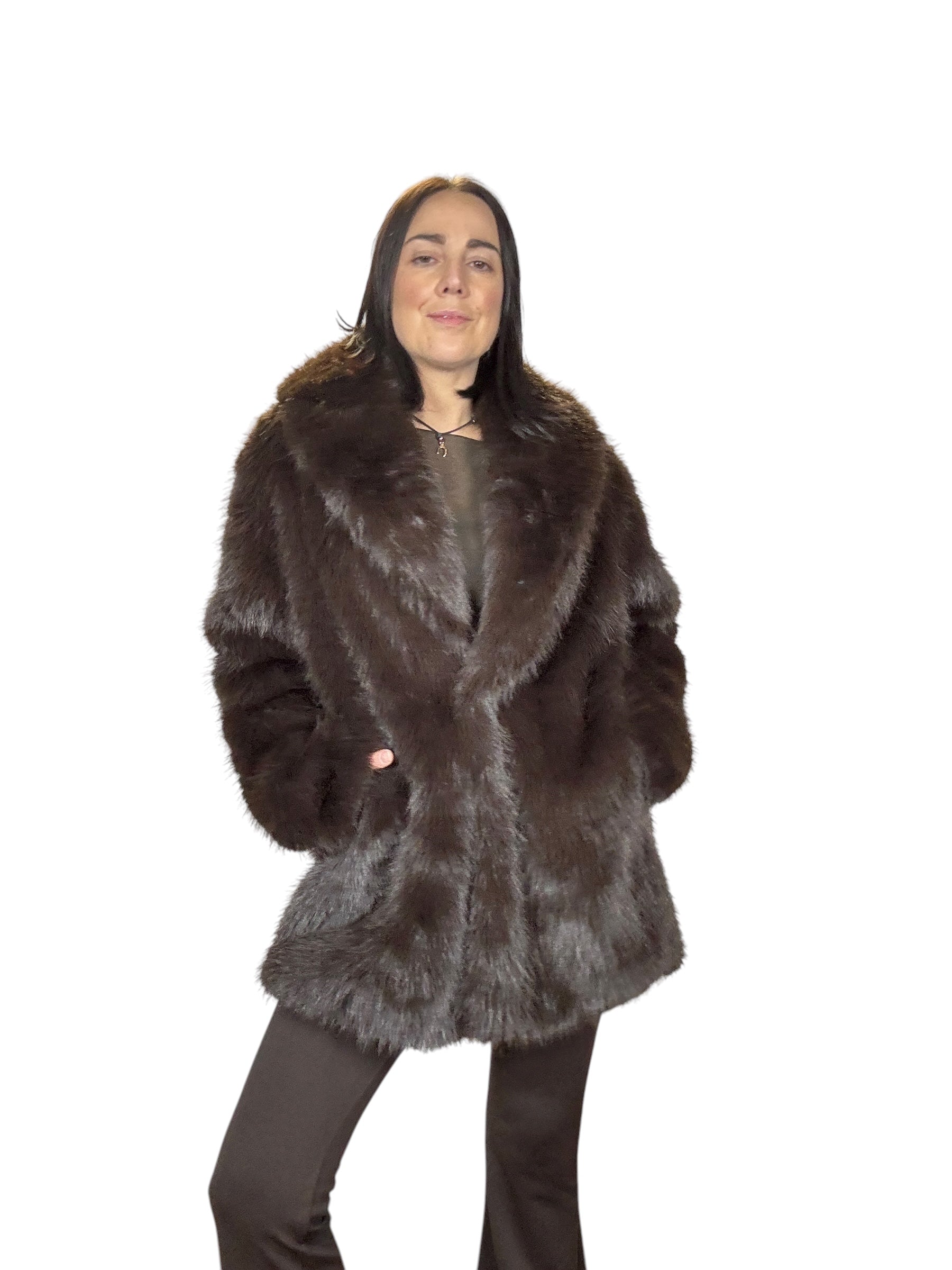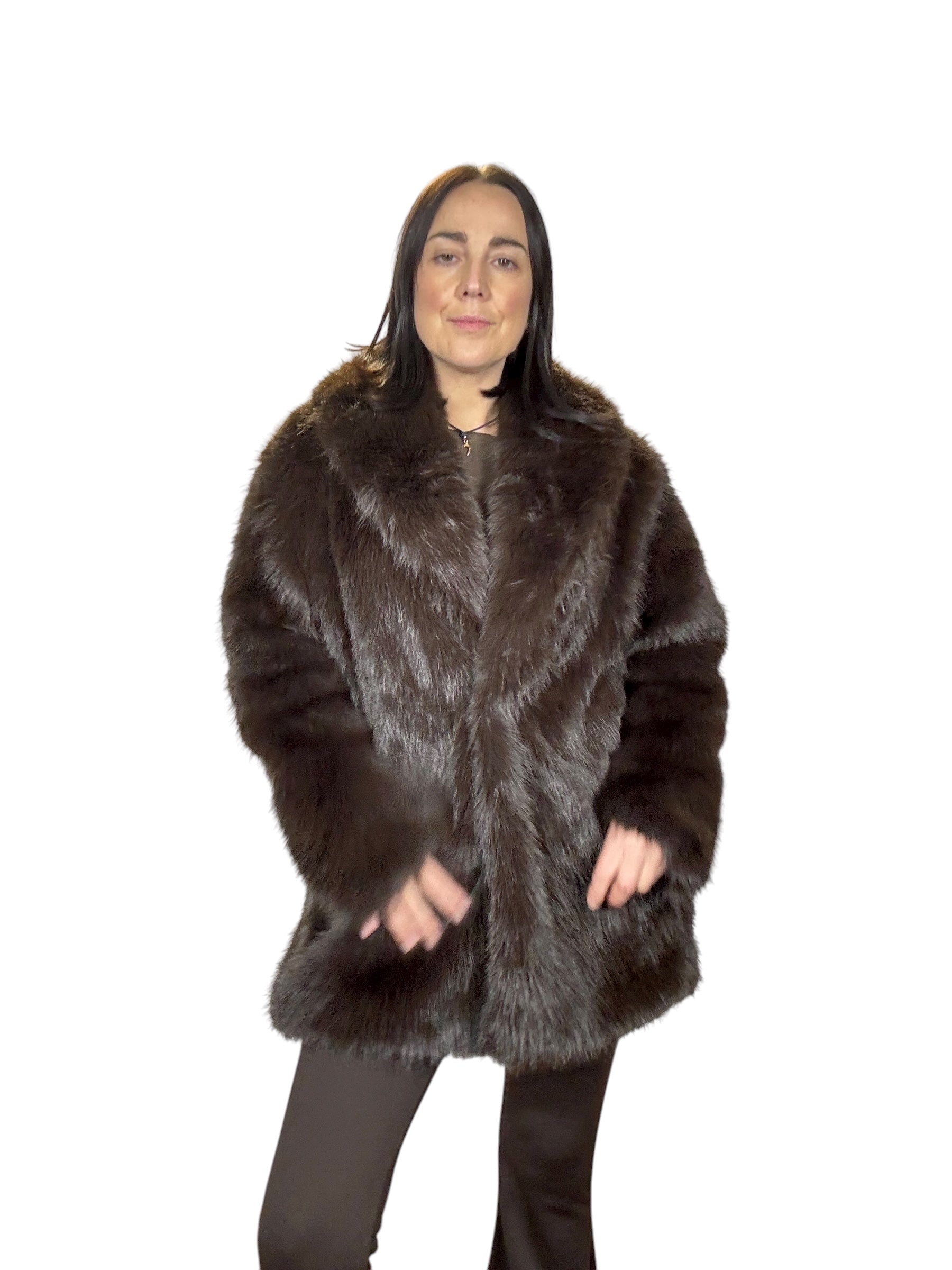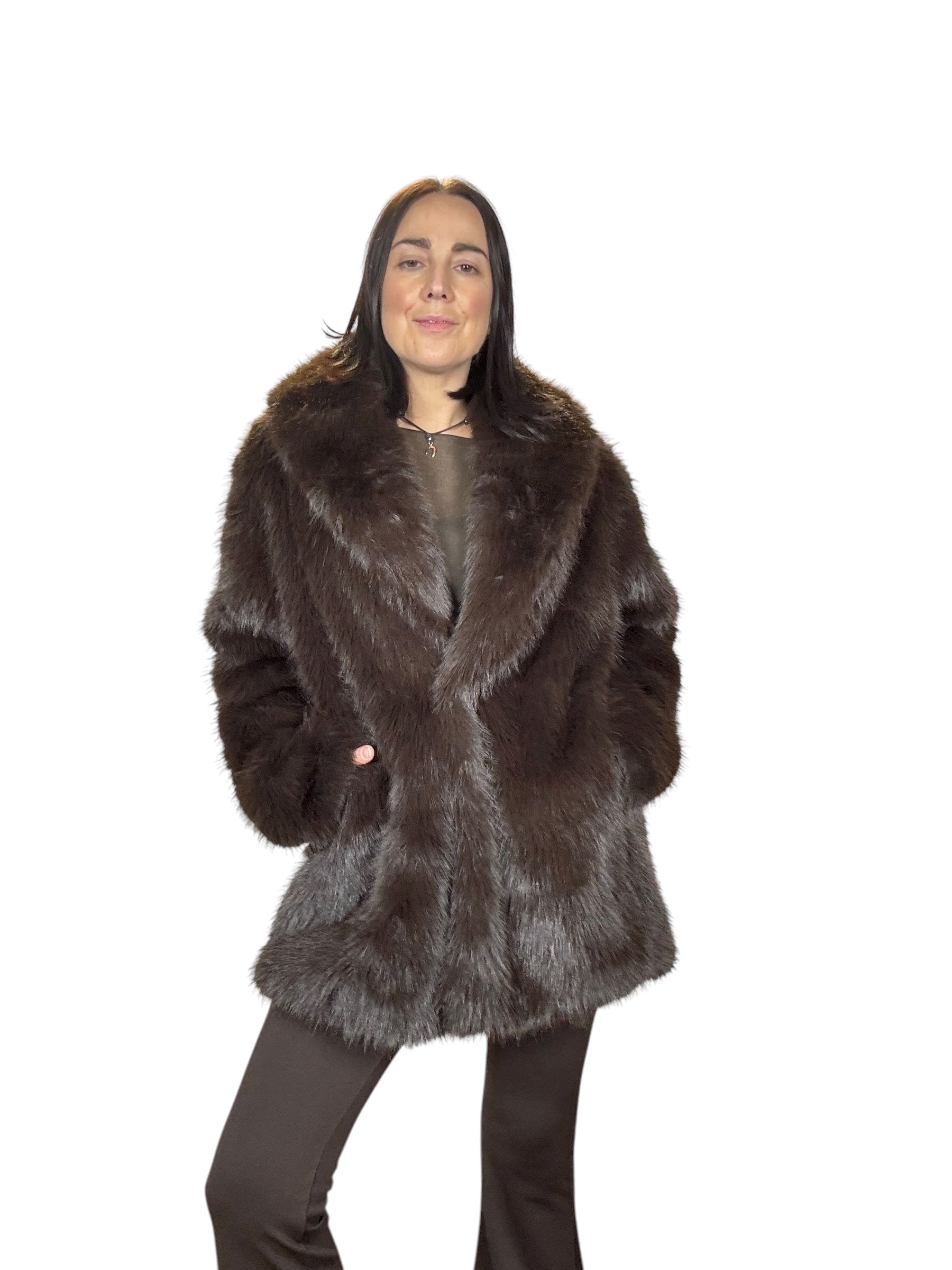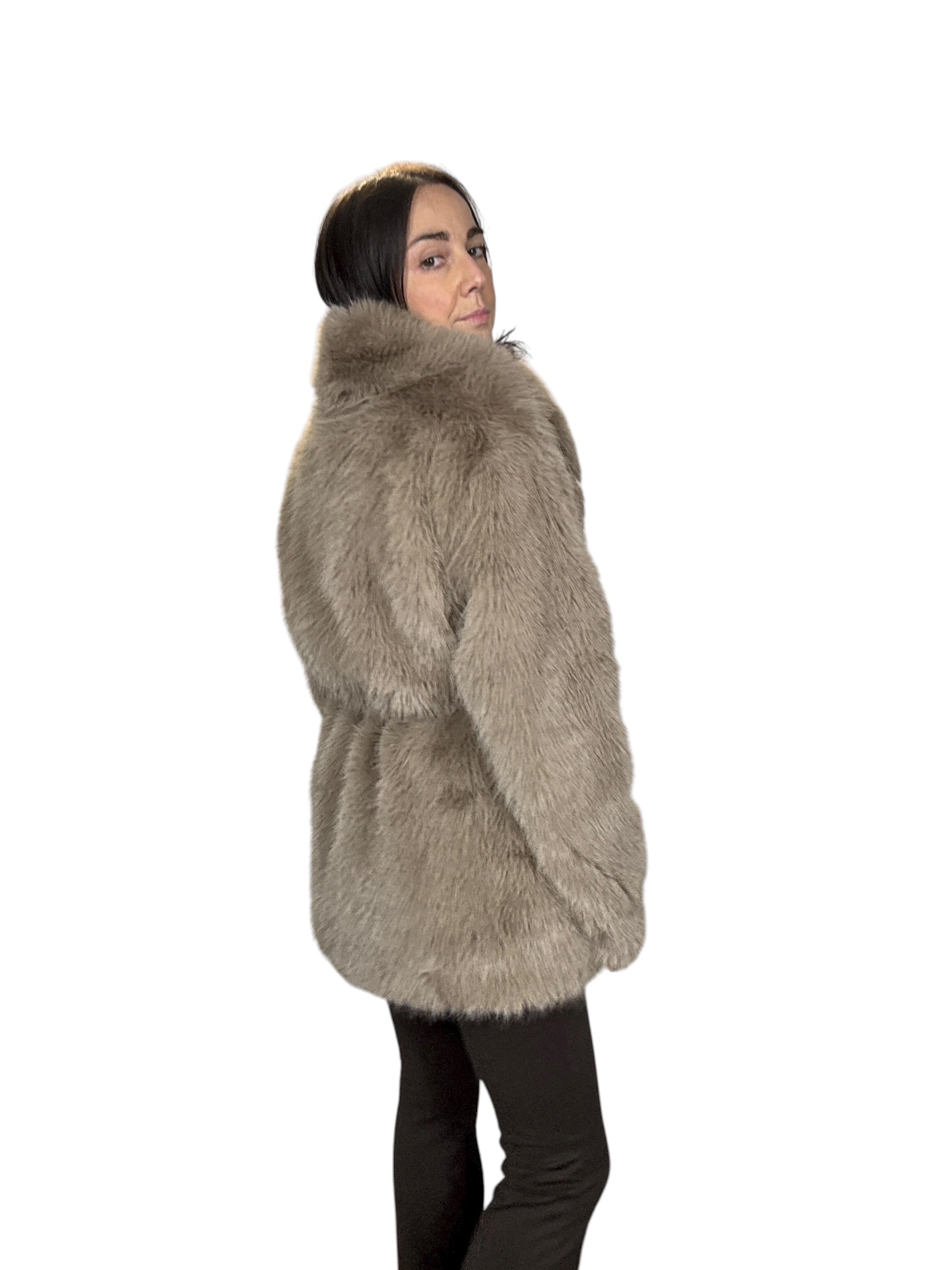 pelliccia foderata con tasche laterali e cintura in vita (rimuovibile)