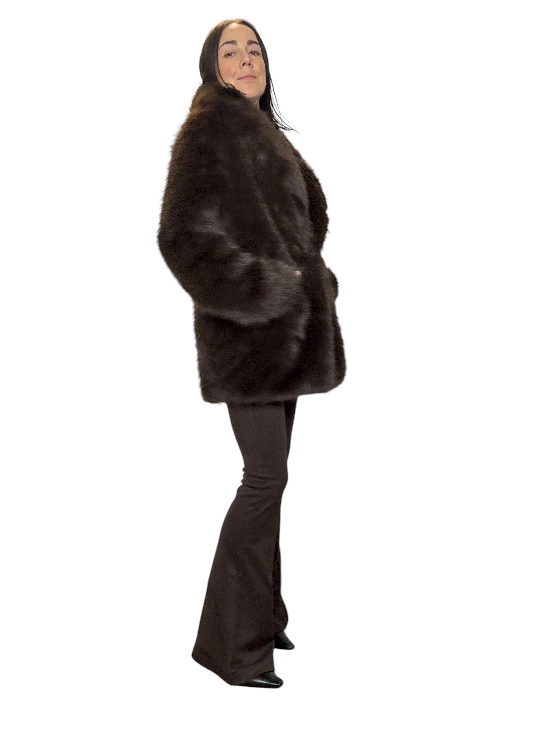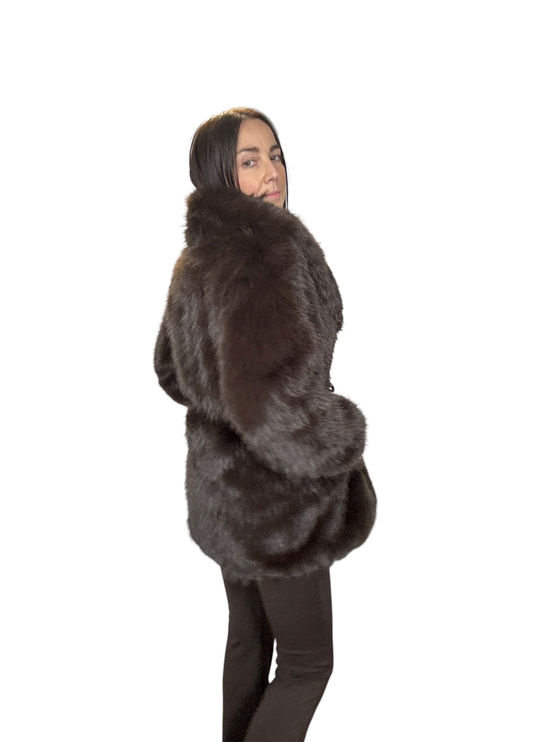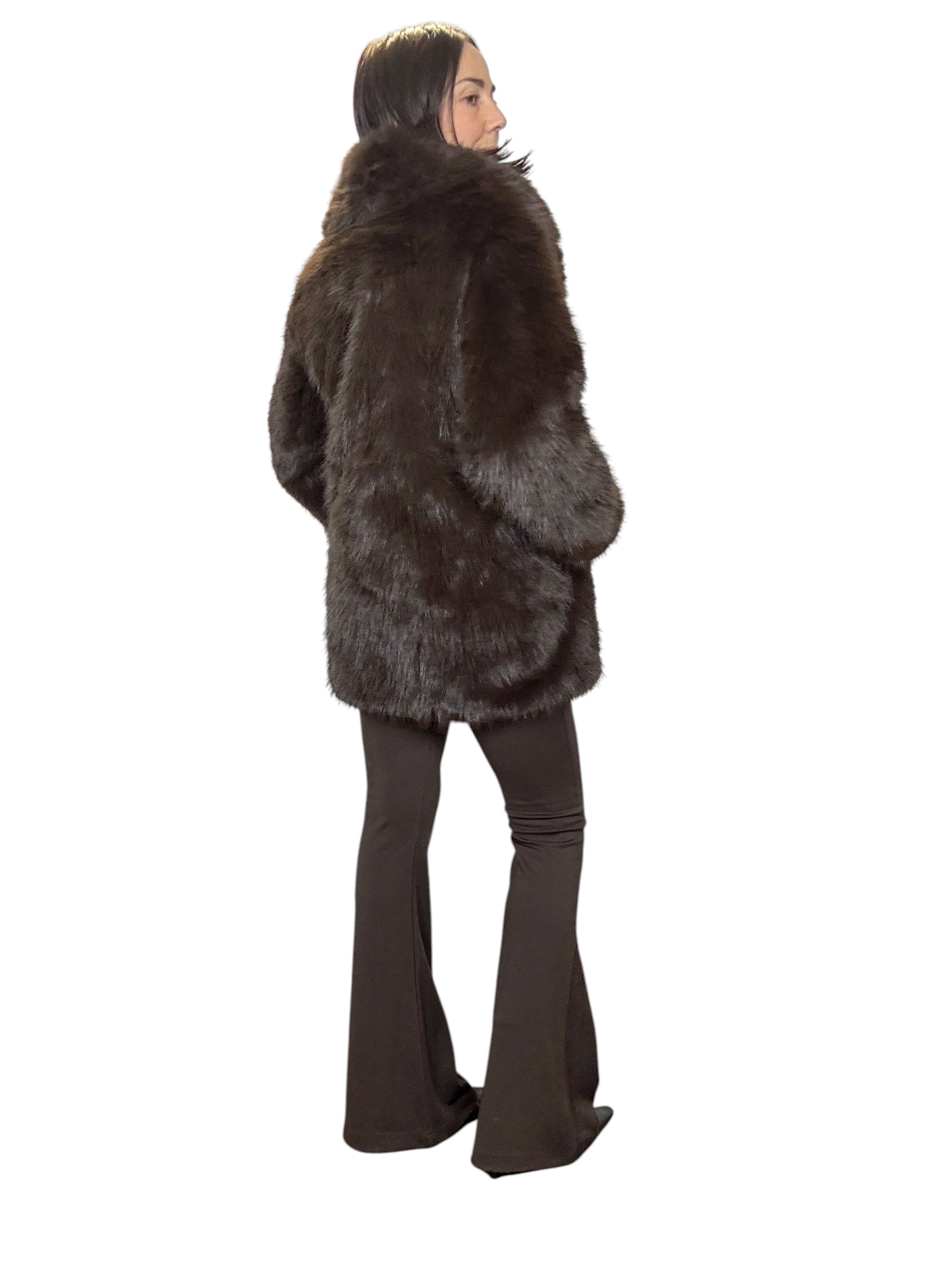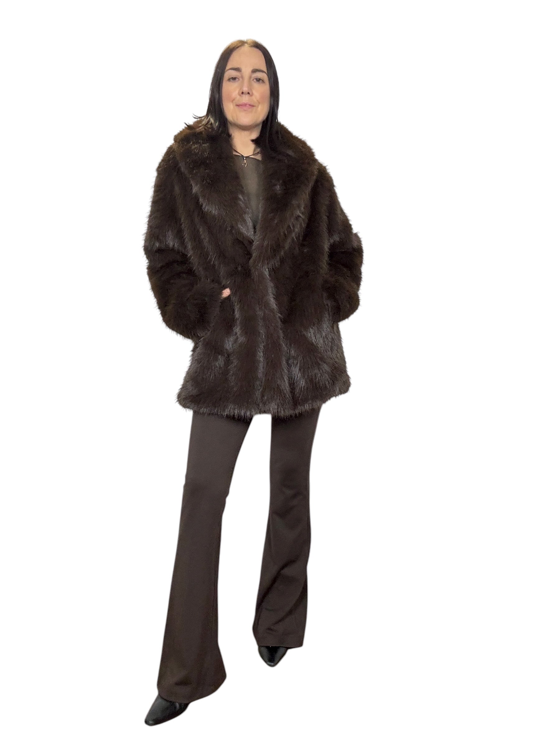 pelliccia foderata con tasche laterali e cintura in vita (rimuovibile)
