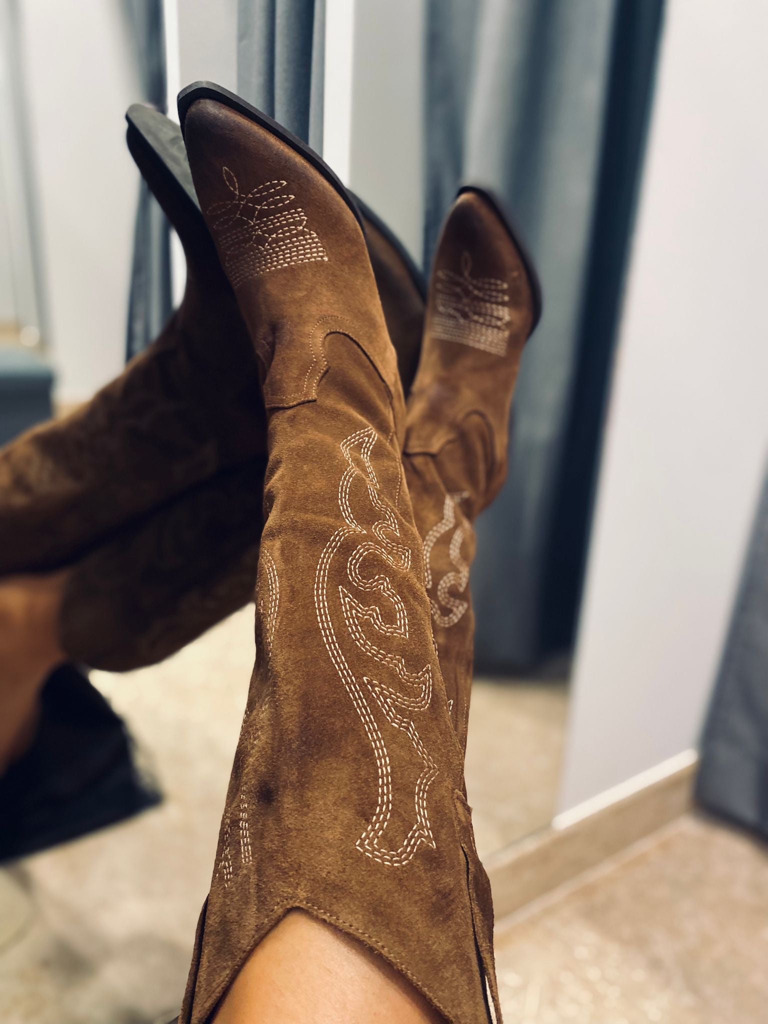 texano a punta in vera pelle con tacco 5cm