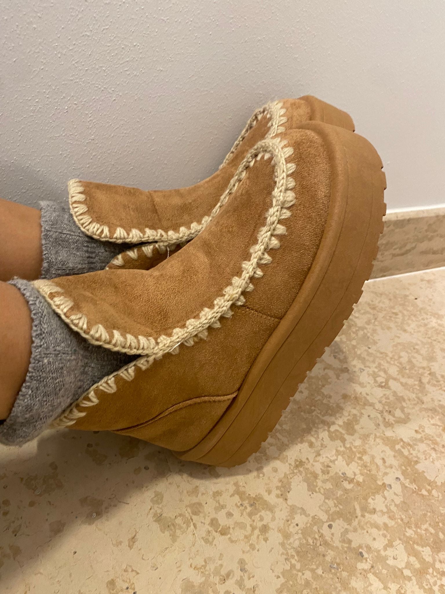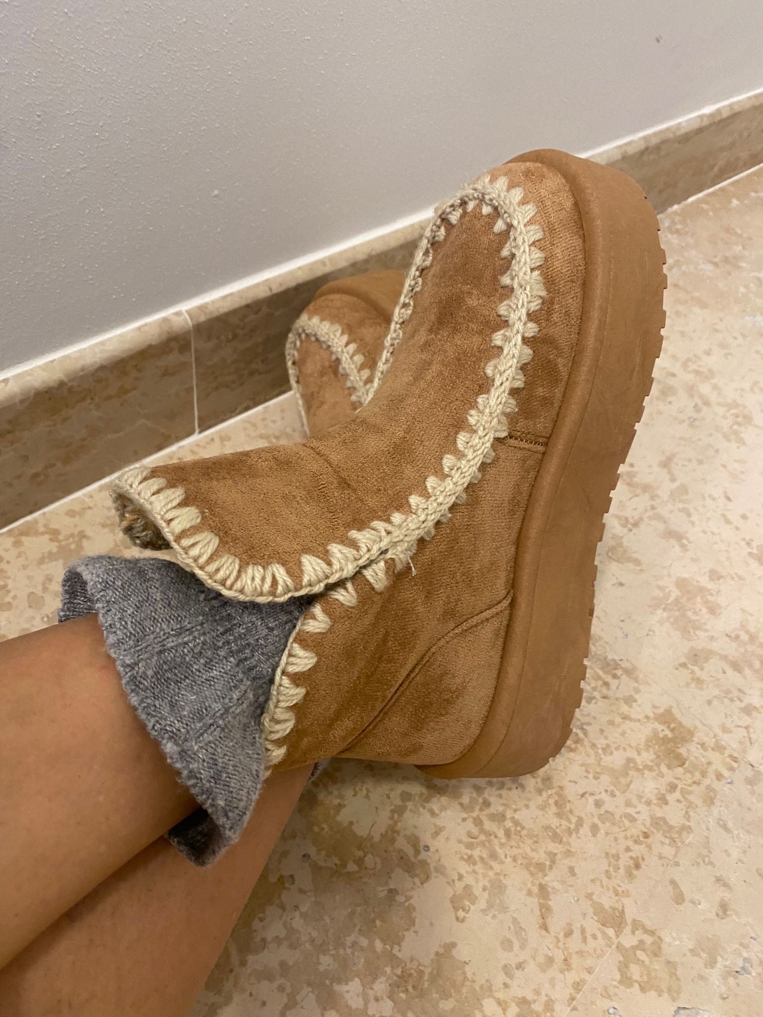 tronchetto scamosciato imbottito con eco pelliccia ed impunture in rilievo (vestibilità tendente al piccolo)